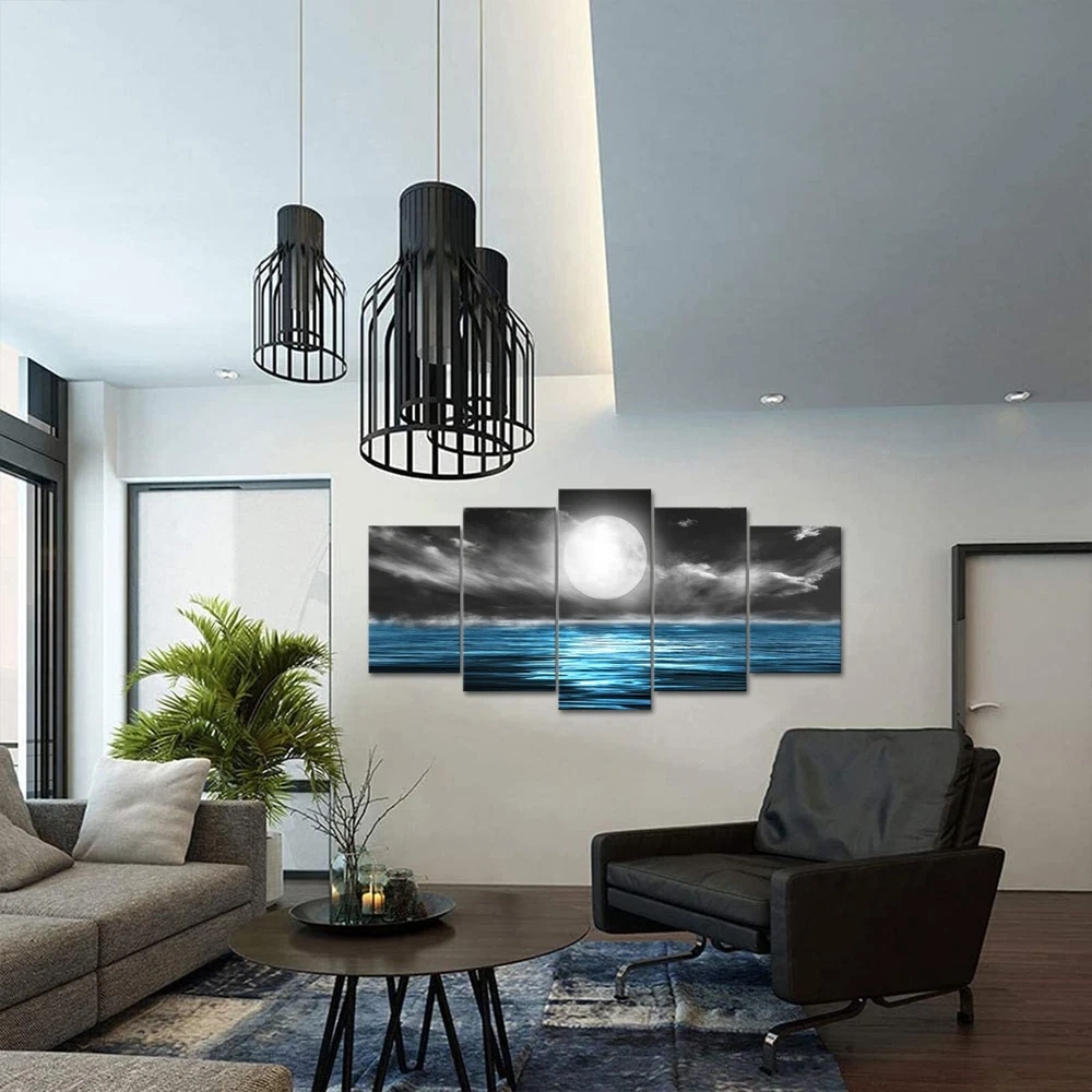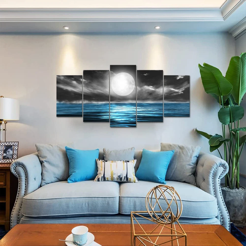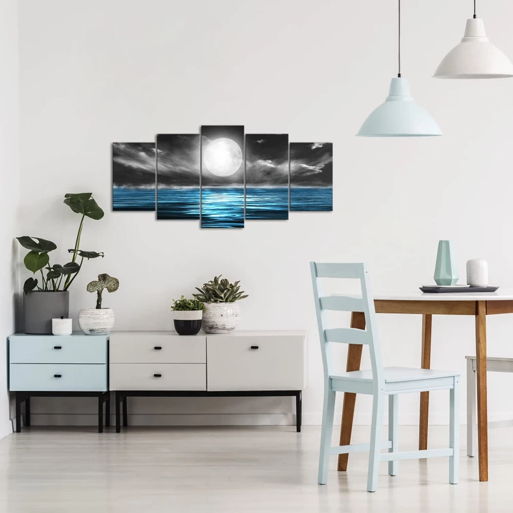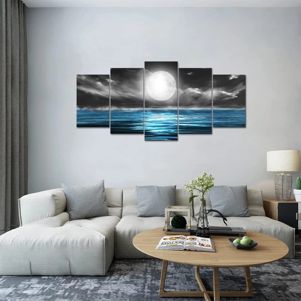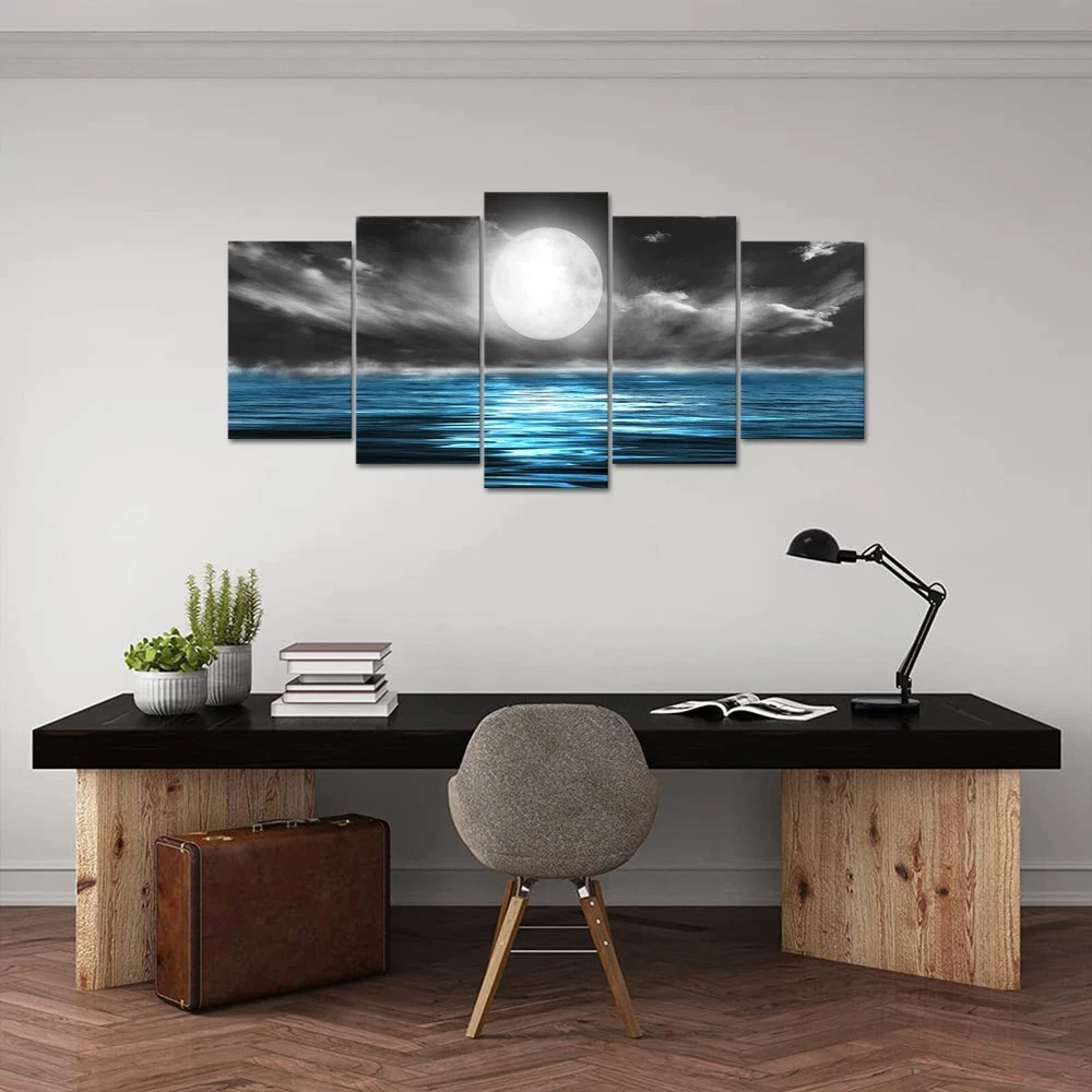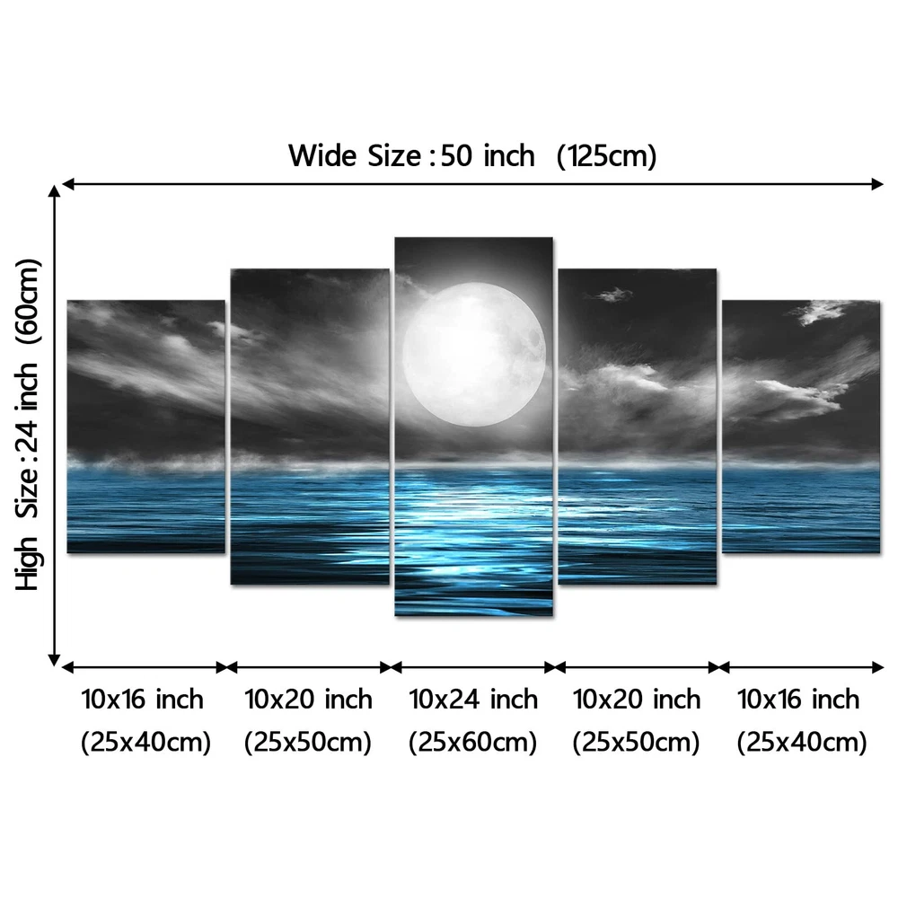 ❤Size:10x16inchx2pcs+10x20inchx2pcs+10x24inchx1pcs,total 5 Panels ❤Moon Wall Art create a real and wonderful look and feel ❤100%Waterproof Cavas,already stretched on solid wooden frames ❤Each panel canvas has a hook already mounted on the wooden bar;Hanging Hardware Kit Attached,ready to hang ❤Welcome to us anytime