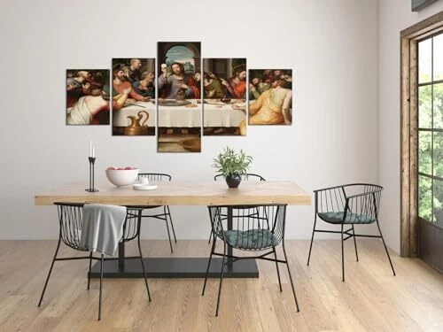Return Policy Fast Delivery Trusted seller 5 Piece Jesus Canvas Prints Wall Art Modern Classic The Last Supper Famous Oil Painting by Da Vinci Reproduction Posters and Prints Ready to Hang for Home Office Decor (70''W x 40''H) Product Description SIZE Of JESUS PAINTING: 14x20inchx2pcs+14x28inchx2pcs+14x40inch x1pc. MATERIAL OF CHRISTIAN WALL ART DECOR: 1. high-quality canvas: moisture-proof, UV-resistant, thick and friendly-environment coating; 2. sturdy wooden frame: thick, not easy to deform, light. PACKING WAY OF JESUS PICTURE: Your products will be packed with FILM PLASTIC and CARTON. Each panel of canvas has been already stretched to solid wooden frame of hook ready to hang. THE LAST SUPPER WALL DECOR: A perfect wall decorations paintings for living room, bedroom, office, hotel, etc. A great gift idea for your relatives, friends, classmates, workmates, etc. 100% WORRY-FREE SERVICE: Supply with 24 hours pre-sale and after-sale online service to ensure you buy it without any worry! If you have any questions of christian poster, we will make you satisfied. Shipping Returns Payment Shipping Shipping is FREE to all addresses other than APO/PO boxes in the lower 48 states. All our stock ships from US-based warehouses. Shipped via USPS or UPS (depending on location and package weight) Unless stated otherwise, all orders will ship within 24-72 hours of your payment being processed. Check our feedback to see the great reviews of FAST shipping we offer. Returns Seller does not accept returns Payment We currently accept payment via eBay managed payments only. Once payment is cleared, we will dispatch your shipment within 1-3 business days. Please refer to the "Shipping" tab for more information regarding shipping speed to your destination.