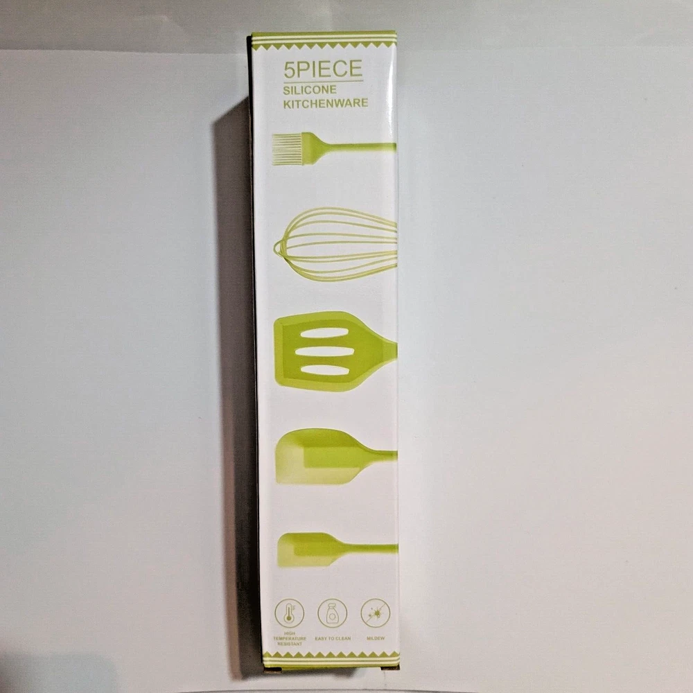 This 5 piece silicone kitchen set in green color includes a whisk and spatula, perfect for cooking and baking. The set is made of high-quality silicone material that is heat resistant and dishwasher safe. With its durable and versatile features, this set is a great addition to any kitchen. Made in China, this set is perfect for those who love to cook and bake. Only a few in stock.