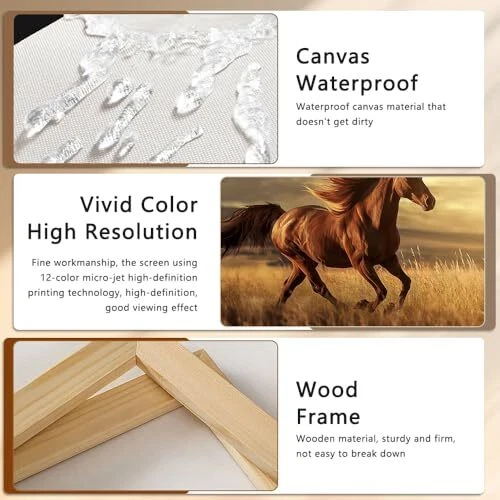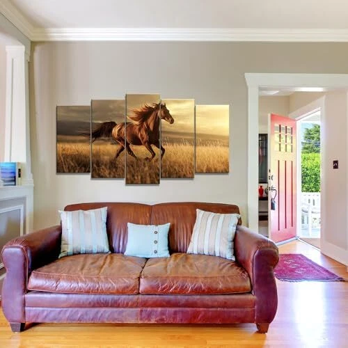 Menu 1. We require immediate payment. 2. We currently accept payment via eBay managed payments only. 3. Once payment is cleared, we will dispatch your shipment within 1-3 business days. Please refer to the "Shipping" tab for more information regarding shipping speed to your destination. 5 Pieces Modern Large Canvas Animal Wall Art Majestic Horse in Golden Field at Sunset Picture Paintings on Canvas for Living Room Bathroom Bedroom Home Office Wall Decor Product description Size : Multi piece set comes with 5 sizes of canvas prints. 12 x 24 inch x 2 pcs, 12 x 28 inch x 2 pcs, 12 x 32 inch x 1 pcs. Total size of 5 pieces if placed together without spaces is 60 x 32 inch High Definition Canvas Prints : Quality glossy canvas with long lasting durability Printed at high resolution using the latest state of the art color technology ensures sharp & vibrant images every time Ready to Hang : Your framed wall art is carefully packaged in bubble wrap and cardboard to ensure it arrives in perfect condition. Each panel has been stretched on wooden frame with hooks mounted on the back, and we also equipped with seamless nails in the package Widely Used : It is a beautiful decoration for living room, bedroom, dining room, kitchen, bathroom, hallway, guest room, yoga room, office, children's room, cafe, restaurant and hotel. This contemporary painting will brighten up your room Perfect Decorations : This framed canvas art wall decor is a wonderful idea for many occasions such as Christmas, New Year, moving to a new house or housewarming party for your relatives and friends PLEASE MESSAGE US IF YOU HAVE ANY OTHER QUESTIONS, AND MANY THANKS FOR READING ALL OF THIS. Copyright ©#. All Rights Reserved.