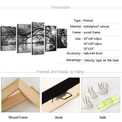 Menu 1. We require immediate payment. 2. We currently accept payment via eBay managed payments only. 3. Once payment is cleared, we will dispatch your shipment within 1-3 business days. Please refer to the "Shipping" tab for more information regarding shipping speed to your destination. - 5 Pieces Wall Art,Old Tree by Lake Picture Canvas Prints Sunrise Painting Black and White Landscape Canvas Art,Modern Wall Decoration,Framed and Ready to Hang Product description Size:10"X16"x2pcs+10"x20"x2pcs+10"x24" Waterproof canvas,professionally printed with fade resistant,premium inks Hook mounted on the wooden frame,come with nails and level,Ready to hang Black flannel on the back of the frame covered the staples or tacks 4 protection corners,shrink wrap,packed in carton box The unique wall art designs will effortlessly become the focal point of any room. PLEASE MESSAGE US IF YOU HAVE ANY OTHER QUESTIONS, AND MANY THANKS FOR READING ALL OF THIS. Copyright ©#. All Rights Reserved.