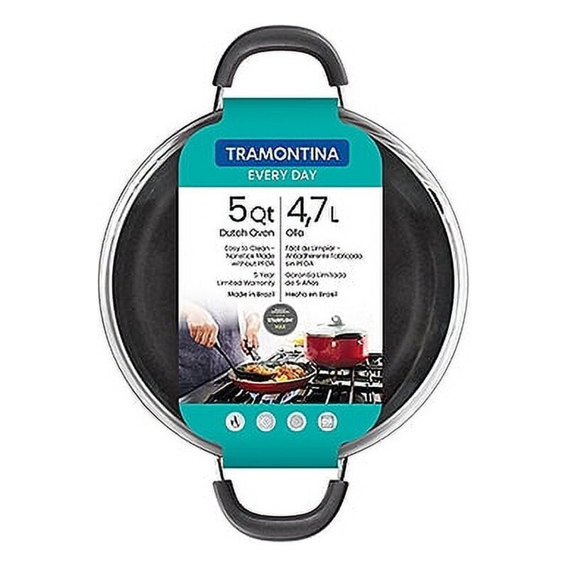 If there ever was one pot to do it all, it’s ’s Everyday 5 Qt Aluminum Nonstick Covered Dutch Oven in Metallic Red. This kitchen essential is great for multi-day meal prepping of dishes such as soups, casseroles, and roasts. It’s also a great piece for mess-free frying. The Dutch oven is made with an aluminum construction for reliable heat distribution. Its metallic red finish adds a pop of color and pairs perfectly with the cookware’s charcoal gray interior finish. The cookware's nonstick interior protects the cooking surface from sticking to the surfaces for mess-free meal prep. You’ll get safe and easy maneuverability thanks to the cookware’s ergonomic Bakelite handle. A heat- and shatter-resistant tempered glass lid with stainless steel rim locks in moisture and flavor and allows you to keep an eye on the progression of your dishes. The dishwasher-safe Dutch oven is compatible with gas, electric and ceramic glass cooktops. Made in Brazil. Perfect pot for stocks, soups, casseroles, roasts, and more. Aluminum construction for quick heat distribution Vibrant metallic red exterior Nonstick charcoal gray interior Ergonomically designed black Bakelite handles Compatible with gas, electric and ceramic glass cooktops Dishwasher safe Everyday Collection