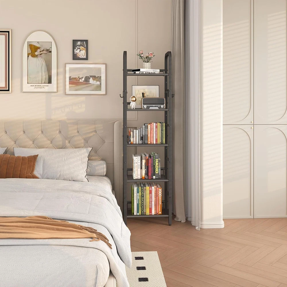 Store New Arrivals Add to Favorite View Feedback Contact 5 Tier Bookshelf, Freestanding Bookcase for Living Room, Bedroom, Home Office, Multi-Functional Storage Rack Organizer, Display Rack with Metal Frame, Rust Resistance, Black, UHBC055B Description Item model number HBC055B Style Modern Number of Items 1 Material Metal Mounting Type Free Standing Country of Origin China Room Type Living Room Assembly Required Yes Product Dimensions 14.17"D x 10.43"W x 57.48"H Installation Type Freestanding Age Range (Description) Adult Finish Type Metal Specific Uses For Product Living Room, Office, Bedroom Back Style Backless Item Weight 9.46 pounds Number of Shelves 5 Special Feature Sturdy Shelf Type Metal Shape Square Furniture Finish Metal Recommended Uses For Product Office, Living Room, Bedroom Product Care Instructions Wipe with Dry Cloth Size 5-Tier (10.43"x14.17"x57.48") Versatile Display Rack: This storage rack can be used not only as a bookshelf, but also as a dispaly rack in the living room, a plant stand in the balcony, a storage rack in the bathroom, and even a kitchen storage shelf Large capacity: There are two sizes available, four and five, which can be selected according to actual needs. They are fully suitable for daily household use, whether it is placed in the office, bedroom, or living room, they are all ideal decorations Sturdy: The bookshelf is made entirely of sturdy metal frames, which are welded very firmly. Anti tipping device provides sturdy support for your beloved item.The pads on the bottom of the display rack can prevent the ground from being scratched Easy to Assemble: Clear and detailed instructions, and numbered parts for assembly are included in the package to ensure you can easy assembly.Prduct Size:4 tiers: 45.67H*14.17L*10.43W",5 tiers: 57.48H*14.17L*10.43W".There are multiple style to choose from, and there is always one you will like Customer service: We provide professional customer service before and after purchase. No matter what problem you encounter, we will solve it for you as soon as possible. Don't hesitate any longer and take it home now Product Description 1 Studio 2 Bedroom 5 Tier Bookshelf White Shelf adds storage space effortlessly The 5-layer black minimalist style storage rack is made of high-quality metal and iron mesh, making it easy to move. The X-shaped structure behind the base greatly improves the stability of the shelf. Four padded feet can prevent scratches on the ground. Hook Design Hang some small pendants. Compact railing Compact railing to prevent objects from falling. Iron Mesh Frame Strong load-bearing capacity. Padded four feet Padded four feet can prevent scratches on the ground. Living Room Bookshelf Storage Rack Plant Rack Bathroom storage Product Name: YMYNY 5 Tier Bookshelf Product Color: Black Material:Material: High quality metal Product Size: 14.2 x 10.6 x 57.5 inches Product Weight: 9.5 Pounds Package Details: 1 x Assembly Kit, 1 x Instructions, 1 x 5-Tier Bookshelf Add to Cart Add to Cart Add to Cart Add to Cart Add to Cart Add to Cart Customer Reviews 4.2 out of 5 stars 63 4.4 out of 5 stars 178 4.4 out of 5 stars 178 4.5 out of 5 stars 235 4.5 out of 5 stars 235 4.5 out of 5 stars 235 Price $35.99 $ 35 . 99 $25.99 $ 25 . 99 $42.99 $ 42 . 99 $37.99 $ 37 . 99 $42.99 $ 42 . 99 $45.99 $ 45 . 99 Product Name: YMYNY 5-Tier Bookshelf YMYNY4-Tier Ladder Bookcase YMYNY 5-Tier Ladder Bookcase YMYNY 4-Tier Storage Rack YMYNY 5-Tier Storage Rack YMYNY 6-Tier Storage Rack Product Color: Black Rustic Brown and black Rustic Brown and black Rustic Brown and black Rustic Brown and black Rustic Brown and black Material: High quality metal Metal and particle board Metal and particle board Metal and particle board Metal and particle board Metal and particle board Product Size: 10.6"D x 14.2"W x 57.5 "H 11.8"D x 13.4"W x 49.2"H 11.8"D x 13.4"W x 62.99"H 11.4"D x 16.9"W x 44.1"H 11.4"D x 16.9"W x 57.7"H 9.8"D x 16.9"W x 71.7"H Adjustable Feet: ✔ ✔ ✔ ✔ ✔ ✔ Add to Cart Add to Cart Add to Cart Customer Reviews 4.5 out of 5 stars 235 4.5 out of 5 stars 151 4.5 out of 5 stars 195 4.5 out of 5 stars 195 4.2 out of 5 stars 55 5.0 out of 5 stars 11 Price $35.99 $ 35 . 99 — — — $29.99 $ 29 . 99 $42.99 $ 42 . 99 Product Name: YMYNY 3-Tier Bookcase YMYNY Tall End Table YMYNY 2-Tier End Table YMYNY 3-Tier End Table YMYNY C-Shaped End Table YMYNY Round End Table Product Color: Rustic Brown and black Rustic Brown and black Rustic Brown and black Rustic Brown and black Gold Color Gold Color Material: Metal and particle board Metal and particle board Metal and particle board Metal and particle board Metal and tempered glass Metal and tempered glass Product Size: 11.4"D x 15.8"W x 29.5"H 11.0"D x 15.0"W x 28.7"H 11.4"D x 15.7"W x 20.5"H 11.4"D x 15.7"W x 24.4"H 11.8"D x 15.8"W x 24.8"H 19.7"D x 19.7"W x 25.6"H Adjustable Feet: ✔ ✔ ✔ ✔ ✔ ✔ ABOUT US We offer the best prices around on high quality products. Our E-store includes media such as books, movies, music and games while offering electronics, toys, sporting apparel, clothing, tools, general home, garden items and more. SHIPPING We are always working hard to ensure your package arrives as soon as possible. Please understand that some factors like weather, high postal traffic, and the performance of shipping companies are outside of our control. We offer free shipping to the lower 48 states and ship within 2 business days of payment, usually sooner. We do not accept P.O. Boxes. Please provide a physical address. For shipping outside of the continental USA, we only use eBay's Global Shipping Program.The item is shipped to KY and then sent to the rest of the world. International customers are responsible for all duties and taxes. Continue to check out in order to calculate costs for shipping the item to your country. Messages regarding eBay's Global Shipping Program MUST be directed at eBay EXCLUSIVELY. RETURNS We offer a 30-Day Return Policy on items which you are not comple