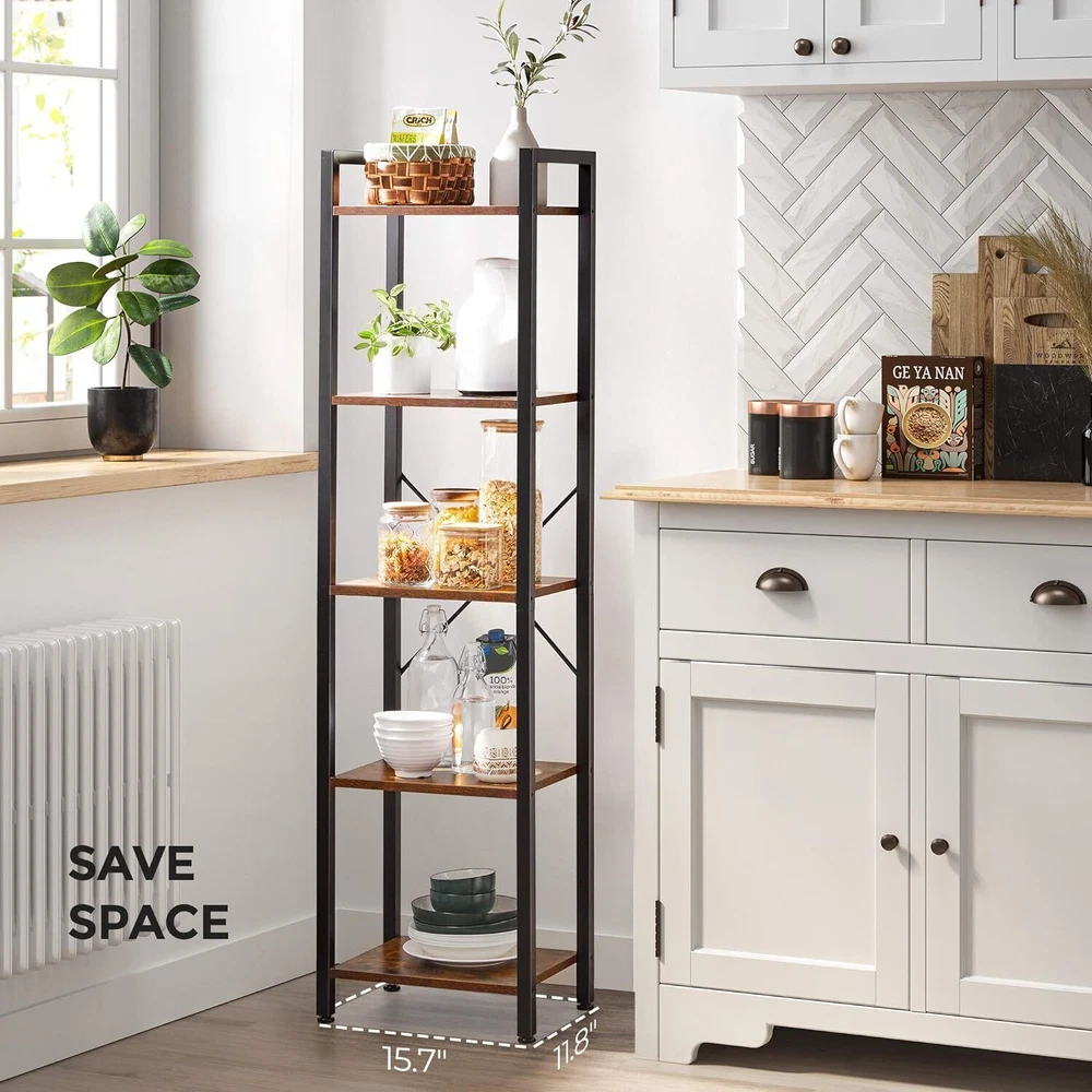 You may also like The College Cube Computer Desk Bookshelf Beech Color Durable Home Study Decor US 90.24 USD 94.99 USD Free shipping 5% off 4-Shelf Bookcase W/ 4 Doors Storage in Cherry Finish Versatile & Stylish Home US 58.15 USD 61.21 USD Free shipping 5% off Room Type Hallway Number of Shelves 5 Special Feature Durable Product Dimensions 11.8"D x 15.7"W x 60"H Style Industrial Age Range (Description) Adult Finish Type black Product Care Instructions Wipe with Dry Cloth Size 5 Tier(11.8 x 15.6 x 60.6 inches) About this item Particleboard, Steel [Fits Everywhere] With 5 open shelves, this bookshelf can display your favorite books, decorations, and plants in the living room, bedroom, bathroom, or hallway; you just need to decide which room to place it in [Long-Lasting Materials] Crafted with a robust steel frame and quality particleboard, this bookcase will hold your valuable collectibles (max. load 22 lb each tier) and last as long as they do [Stability Matters] Decorations shattered because your cat jumps on top and the rack tilts over? Relax. It won’t happen to this 5-tier shelf, as the included anti-tip kit will help you fix it to the wall for greater stability [Easy-Peasy Assembly] Why make things more complicated than they should be? With a simple structure and detailed instructions, you'll have this slim bookshelf assembled before you know it [What You’ll Receive] A 5-tier industrial storage rack from VASAGLE, a stage to display your treasured collectibles, and a great way to spruce up your room