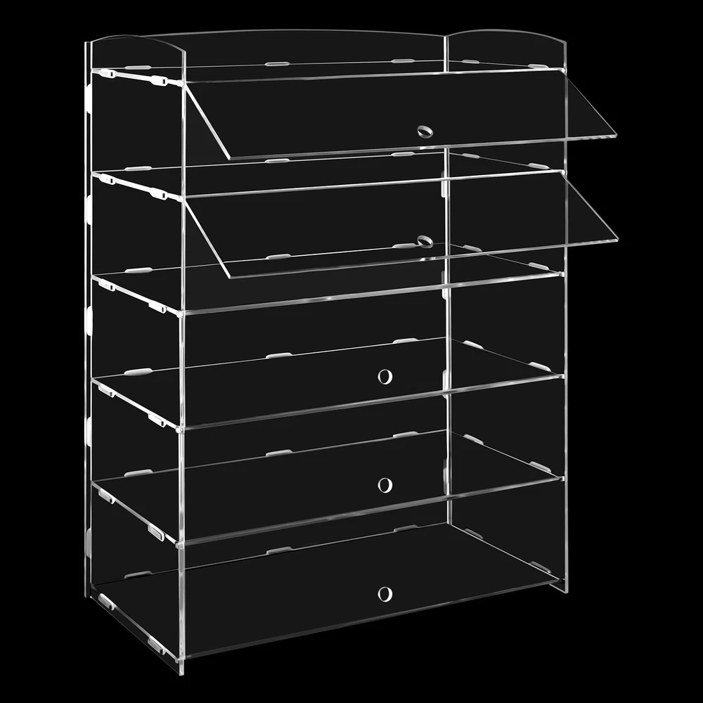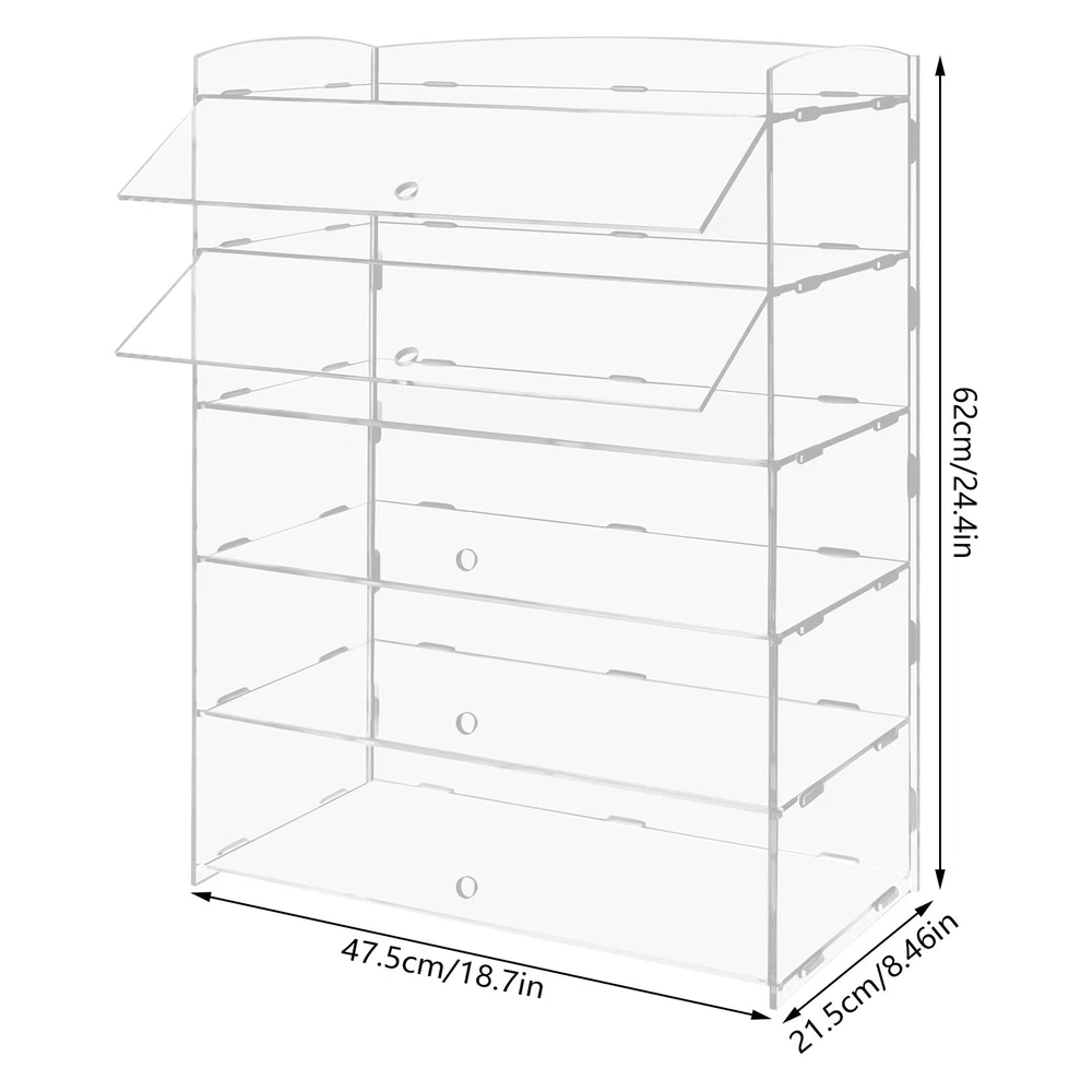 5 Tiers Acrylic Display Case Shelf Dustproof Showcase Holder for Retail Display Description Are you still looking for a storage case with a good display effect? Then you can't miss this 5-tier acrylic display case, which can be used not only for displaying your saleable goods in the mall but also for displaying your collectibles. The sturdy clear acrylic material will make it a practical and stylish solution to your storage needs. Key Features High-quality Material: The premium acrylic with high hardness and rust resistance is less prone to breakage and deformation, ensuring a long service life. 360° Visible : The high-transparency acrylic offers a clear and comprehensive view of the items on display, attracting hungry and potential customers, increasing their interest and engagement, and providing a captivating and informative experience. Neat Storage: This large-size acrylic display case(18.7*8.46*24.4 inches) with 5 tiers and a wide top space helps store cakes, cookies, figurines, coins, candies, cupcakes, etc. in a classified way, making your home or store tidier and bringing you a neat lifestyle. Keep Fresh: This display case with door design and sealed structure is conducive to blocking dust and balancing moisture, thus maintaining the freshness and taste of food to the maximum extent. Easy to Assemble&Disasssemble: Complete accessories, a simple structure, and a detailed installation diagram allow you to quickly complete the installation without drilling. You can easily disassemble and store it without taking up much space when not in use. Effortless Cleaning: The acrylic material, smooth surface, and simple structure allow you simply clean it with a wet cloth or water. Ideal Gift: This product combines practicability and aesthetics in one, making it an ideal gift for your lover, friends, and family on, Christmas, Thanksgiving, and birthdays. Good Customer Service: Communication is the best way to solve problems. If you encounter any problem after purchase, please contact us in time before opening or unpacking the box. We will do our best to solve the problem for you. Details Round Holes: They allow for quick and convenient opening/closing of the doors, providing you or your employees, customers, or guests with a relaxed self-service experience. Smooth Edges: The smooth and burr-free edges won't scratch your hands while improving its beauty. Heightened Guardrail: The heightened guardrails on the top tier can prevent your items from falling off and allow you to hold them for moving this item from one countertop to another. Application It is suitable for storing or displaying cakes, cookies, donuts, candies, cupcakes, pastries, bread doughnuts, hot dogs, fruits, bakeries, buffets, croissants, bagels, muffins, bread, coarse grains, jam cans, etc. in restaurants, delicatessen, convenience stores, gas stations, coffee shops, sandwich shops, grocery stores, homes, bakeries, buffets, parties, offices, and so on. It can be used for home collectors to display figurines, coins, sports memorabilia, weapons, model planes, makeup, and more. Specification Color: Clear Material: Acrylic Process: Cutting Style: Modern Shape: Rectangular Number of Tiers: 5 Number of Items: 1 Assembly Required: Yes Mounting Type: Tabletop, Freestanding Product Size: 47.5*21.5*62cm/18.7*8.46*24.4in Package Size: 66*52*10cm/25.98*20.47*3.94in Gross Weight: 11kg/24.25kg Net Weight: 10kg/22.05 1bs Package Included 1* 5-Tier Acrylic Display Case 1* English Installation Diagram All Accessories for Installation Notes This item is not dishwasher safe. Please tear off the protective film on the product before use. Please allow the slight color difference caused by the shooting light and the 1-3 cm error due to manual measurement, and make sure you do not mind before ordering. Payment Delivery details Terms of sales About us Contact us Payment We accept ebay payment 。 Fees such as import duties, taxes are not included in the item price or shipping costs. These charges are the buyer's responsibility. Delivery details Shipping: 2-9 working days to: USA Terms of sales We maintain high standards of excellence and strive for hundred percent customer satisfaction. Feedback is very important to us. We hope that you contact us immediately before you give neutral or negative feedback, so that we can address your concerns. It is impossible to address issues if we do not know about them! About us Your satis faction is our ultimate goal. We work hard to earn your trust and future business. Our certified technicians have tested each item before shipping. The unit comes with 1 year limited warranty on all manufacturing defects. a) If you receive a defective item, you may return it or ask for a discount. Please contact us within 14 days after you receive the package. b) What you returned must be intact and in its original packaging as re? u. Customer is responsible for shipping costs of the returned item. c) We will cover the cost of shipping back t with the shipping rate indicated in the registration page. We will send you a new unit or refund the full payment you paid. Thank you. Contact us Business Hour Business Hour: Monday To Friday: 8:30 AM to 5:00 PM (Beijing China time) Due to time zones, our reply to your questions may not be immediately. But within above working time, we will reply your email within 24 hours. If it's non-workdays, please kindly be patient and wait till Monday. Please contact us with ebay message. Please feel free to contact us if you have any questions. Monday To Friday: 8:30 AM to 5:00 PM (Beijing China time) Due to time zones, our reply to your questions may not be immediately. But within above working time, we will reply your email within 24 hours. If it's non-workdays, please kindly be patient and wait till Monday. Please contact us with ebay message. Please feel free to contact us if you have any questions. Brand N/A Type 5-Tier Acrylic Display Case Material Acrylic Scale N/A Color Clear Features 360° Vi