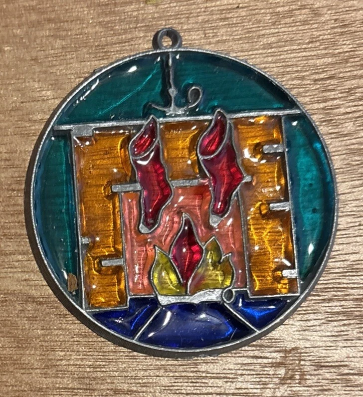 5 Vintage Stained Glass Style Suncatcher Christmas Ornaments