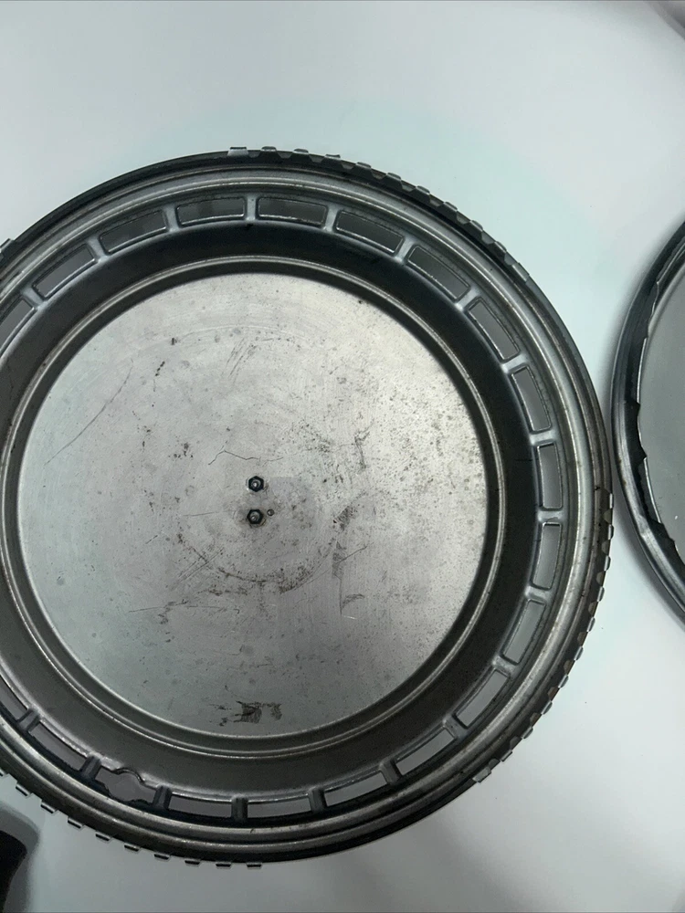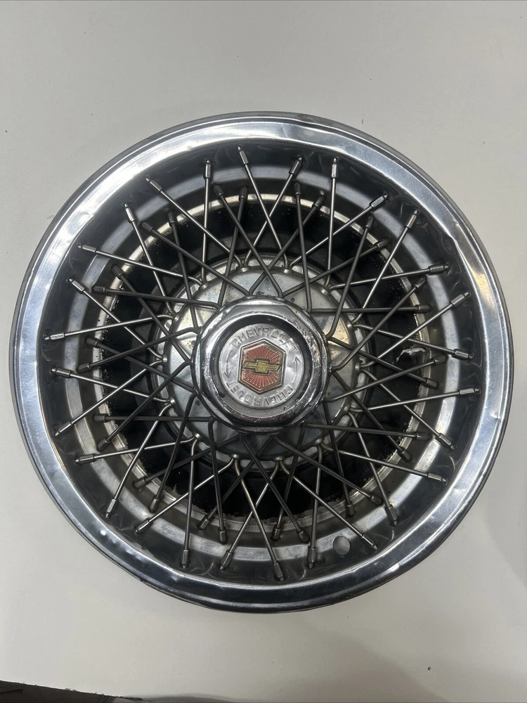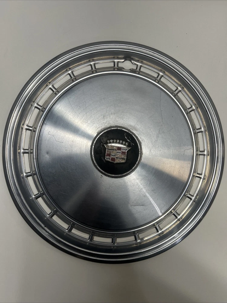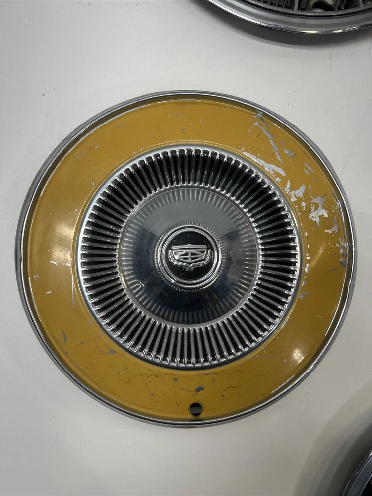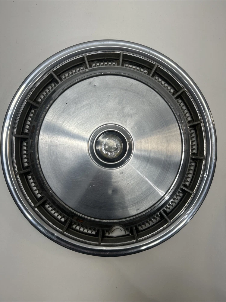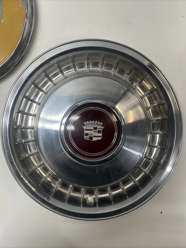 For sale we have a lot of 5 Vintage US Made Chrome Steel Hubcaps Wheel Covers Ford Cadillac Firebird all in okay condition more for wall hangers or man cave items