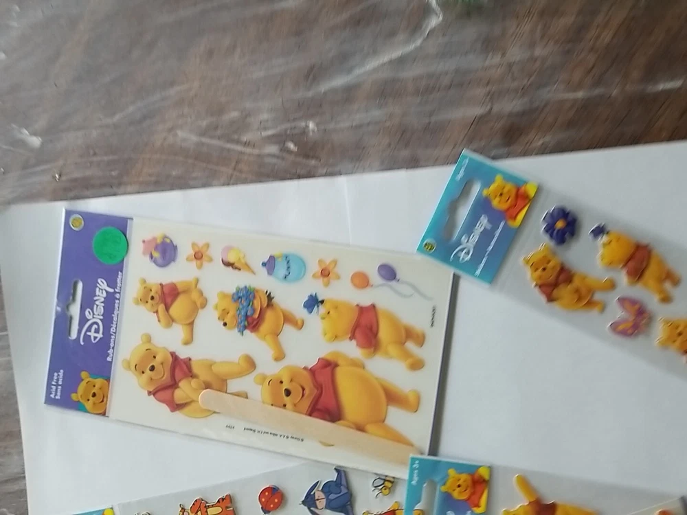 Previously owned and Gently stored Unused 5 Unopened Sealed sheets Vintage Sandylion stickers and rub ins 3 dimensional sets made in China 1 rubon stickers made in Holland 1 body safe rub on sticker made USA Smoke free and pet free Acid free I ship with tracking within one business day of receiving payment No returns thank you Please message me anytime weekdays with any questions Happy to combine shipping on similar items Thank you for checking out my auctions