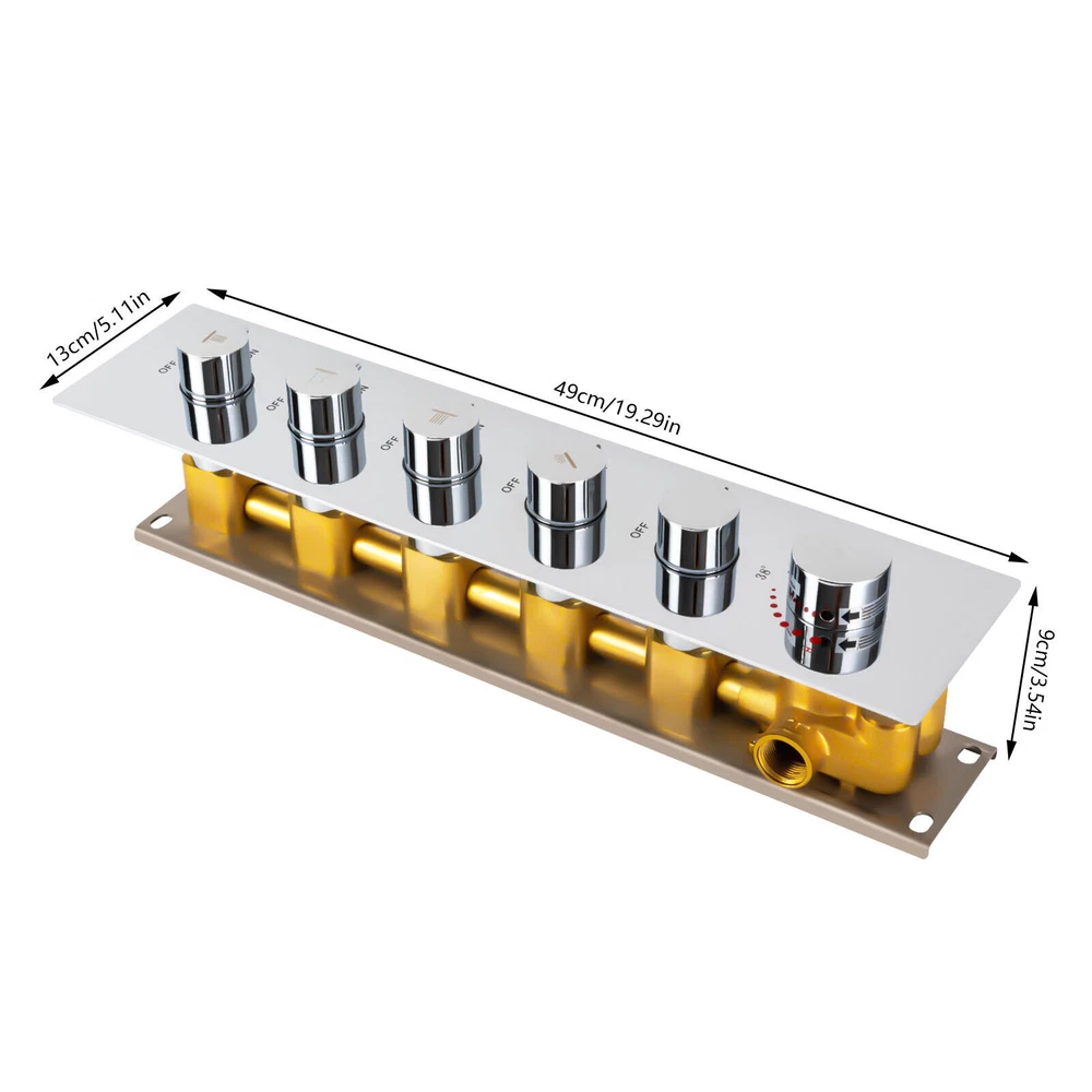 Application It can be applied to the bathroom shower at home, in hotels, etc. Specification Model: HI14008A-1 Material: Brass Color: Silver Finish Type: Chrome Plated 5 Functions: Rain Shower, Waterfall, Side Spray, Handheld and Blank Installation: Concealed, Vertical Cold Water Temperature: 5°C-29°C (41℉-84℉) Hot Water Temperature: 50°C-80°C(122℉-176℉) Working Pressure: 0.3-1.0Mpa Inlet Connection Size: G3/4 Inches Outlet Connection Size: NPT1/2 Inches Valve Type: Diverter, Thermostatic Package Size: 64.5*18*21cm/25.39*7.09*8.27inch Product Size: 49*13*9cm/19.29*5.11*3.54 inch Gross Weight: 8.2kg/18.08lbs Net Weight: 7.52kg/16.58lbs Package Included 1 * Shower Diverter Valve 1* Panel 2* Thread Interfaces 1 Set* English Installation Instructions All Accessories for Installation 5 Way Shower Diverter Valve Thermostatic Mixer Valve Outlet Shower Valve Kit Payment Delivery details Terms of sales About us Contact us Payment We accept ebay payment 。 Fees such as import duties, taxes are not included in the item price or shipping costs. These charges are the buyer's responsibility. Delivery details Shipping: 2-9 working days to: USA Terms of sales We maintain high standards of excellence and strive for hundred percent customer satisfaction. Feedback is very important to us. We hope that you contact us immediately before you give neutral or negative feedback, so that we can address your concerns. It is impossible to address issues if we do not know about them! About us Your satis faction is our ultimate goal. We work hard to earn your trust and future business. Our certified technicians have tested each item before shipping. The unit comes with 1 year limited warranty on all manufacturing defects. a) If you receive a defective item, you may return it or ask for a discount. Please contact us within 14 days after you receive the package. b) What you returned must be intact and in its original packaging as re? u. Customer is responsible for shipping costs of the returned item. c) We will cover the cost of shipping back t with the shipping rate indicated in the registration page. We will send you a new unit or refund the full payment you paid. Thank you. Contact us Business Hour Business Hour: Monday To Friday: 8:30 AM to 5:00 PM (Beijing China time) Due to time zones, our reply to your questions may not be immediately. But within above working time, we will reply your email within 24 hours. If it's non-workdays, please kindly be patient and wait till Monday. Please contact us with ebay message. Please feel free to contact us if you have any questions. Monday To Friday: 8:30 AM to 5:00 PM (Beijing China time) Due to time zones, our reply to your questions may not be immediately. But within above working time, we will reply your email within 24 hours. If it's non-workdays, please kindly be patient and wait till Monday. Please contact us with ebay message. Please feel free to contact us if you have any questions. Features3: Stable characteristics, high reliability Features2: Made of high quality material, Durable Features 1: stable performance,Durable Features 1 stable performance,Durable Features3 Stable characteristics, high reliability Features2 Made of high quality material, Durable * Feature *: 🔥high performance🔥reliable quality🔥good stability Brand Unbranded Suitable For Shower Type Shower Valve Material Brass Finish Chrome Plated Color Silver Item Length 19.29in Model HI14008A-1 Item Height 3.54in Item Weight 16.58lbs Minimum Pressure 0.3Mpa MPN Does not apply Installation Concealed, Vertical Item Width 5.11in