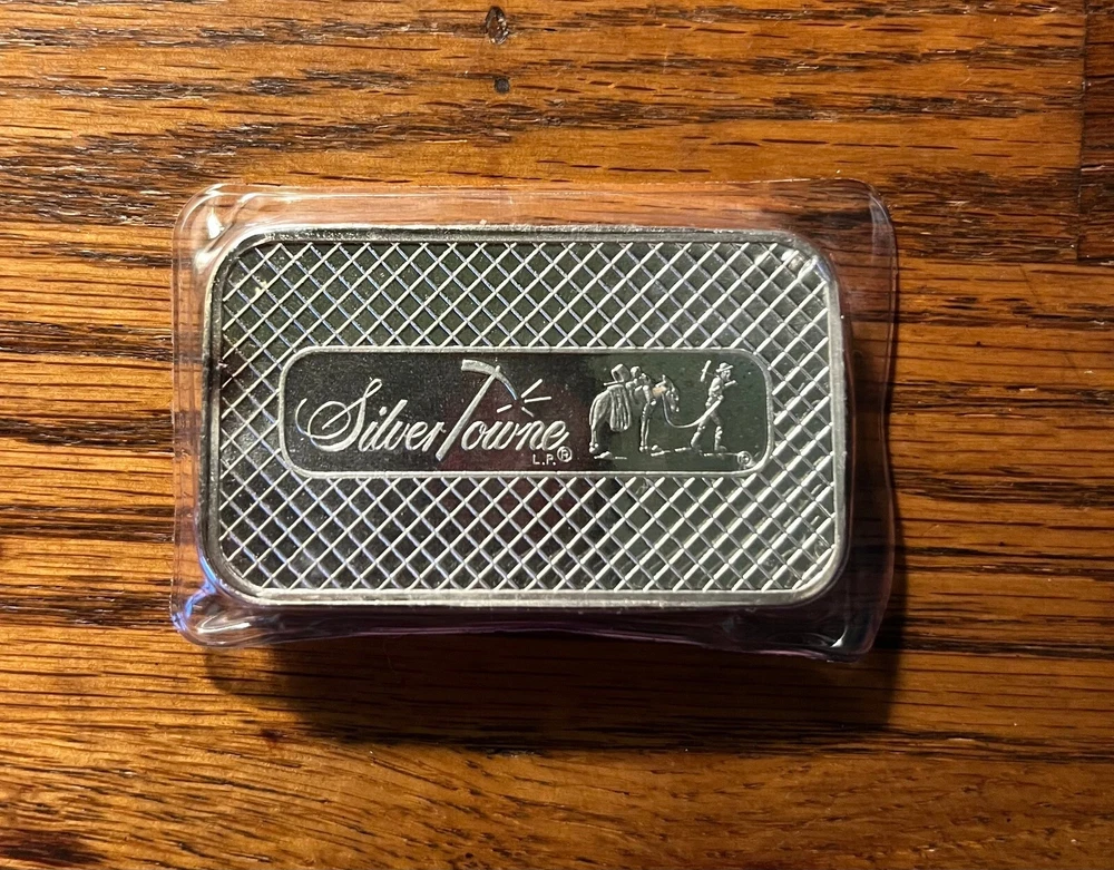 Fineness:0.999Precious Metal Content per Unit:5 ozShape:BarBrand/Mint:SilverTowneTotal Precious Metal Content:5 oz.Composition:SilverCountry/Region of Manufacture:United States