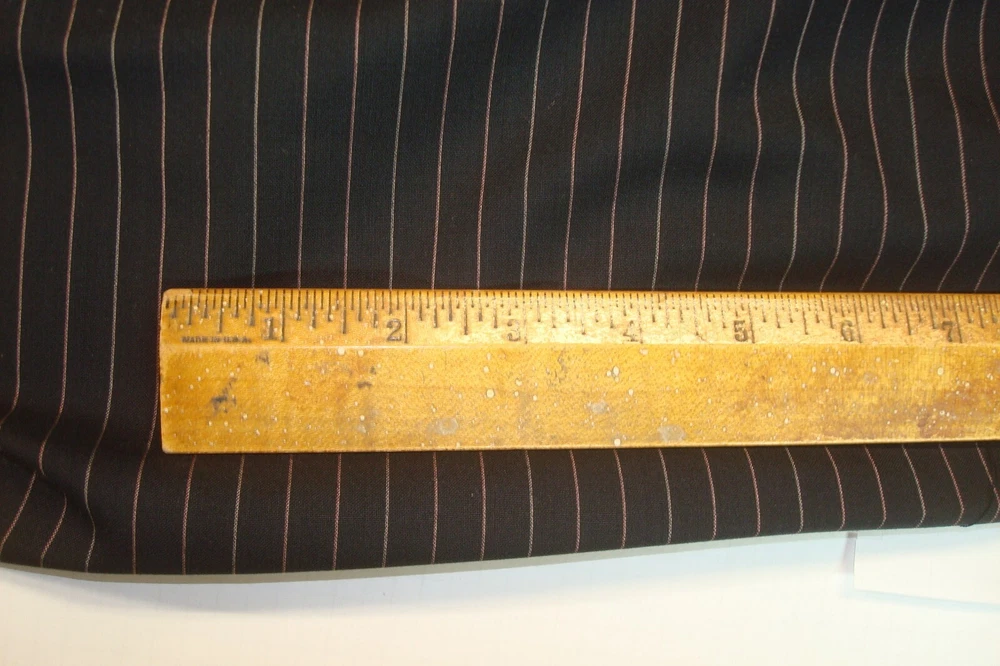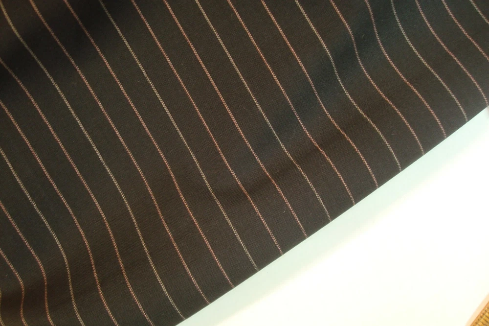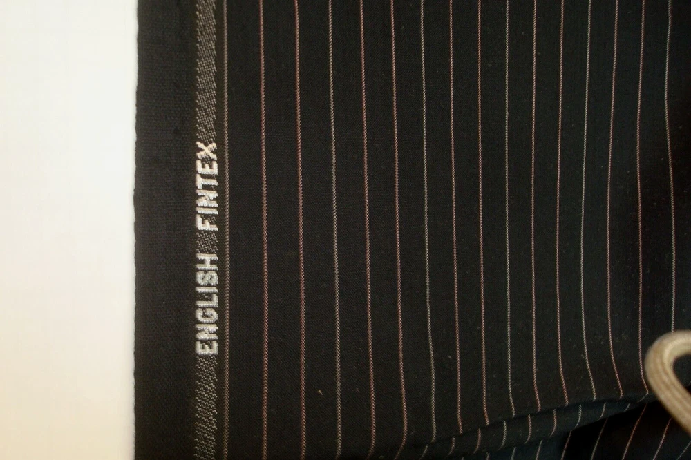 Offered for sale: 5 yds of English Fintex fabric. (60" wide x 180") Fintex of London This one is Gorgeous! So smooth. Nice sheen too Super 120s Suiting with water repellant True Black with thin gray & reddish colored stripes Light weight 7 oz per yard, New unused SUITING Clothing fabric, 4 (180") pieces available But ALL sold in one piece FREE Sample available upon request. ***Buy Any 3 items & get ALL the shipping refunded!!!! (Continental USA only) I can ship as fast as you can pay.... he hee No Smoking here! I have tried to be accurate with my photos and descriptions. Items are sold "as is". When dealing with vintage or used items, there may be marks that I don't notice or may not believe are relevant. Be sure to look closely at photos and ebay message me with any questions prior to bidding. BUYER PAYS SHIPPING. Shipping rates are quoted for continental USA only. I'm happy to ship anywhere else but please message me for rates prior to bidding. Check out my other auctions. THANK YOU