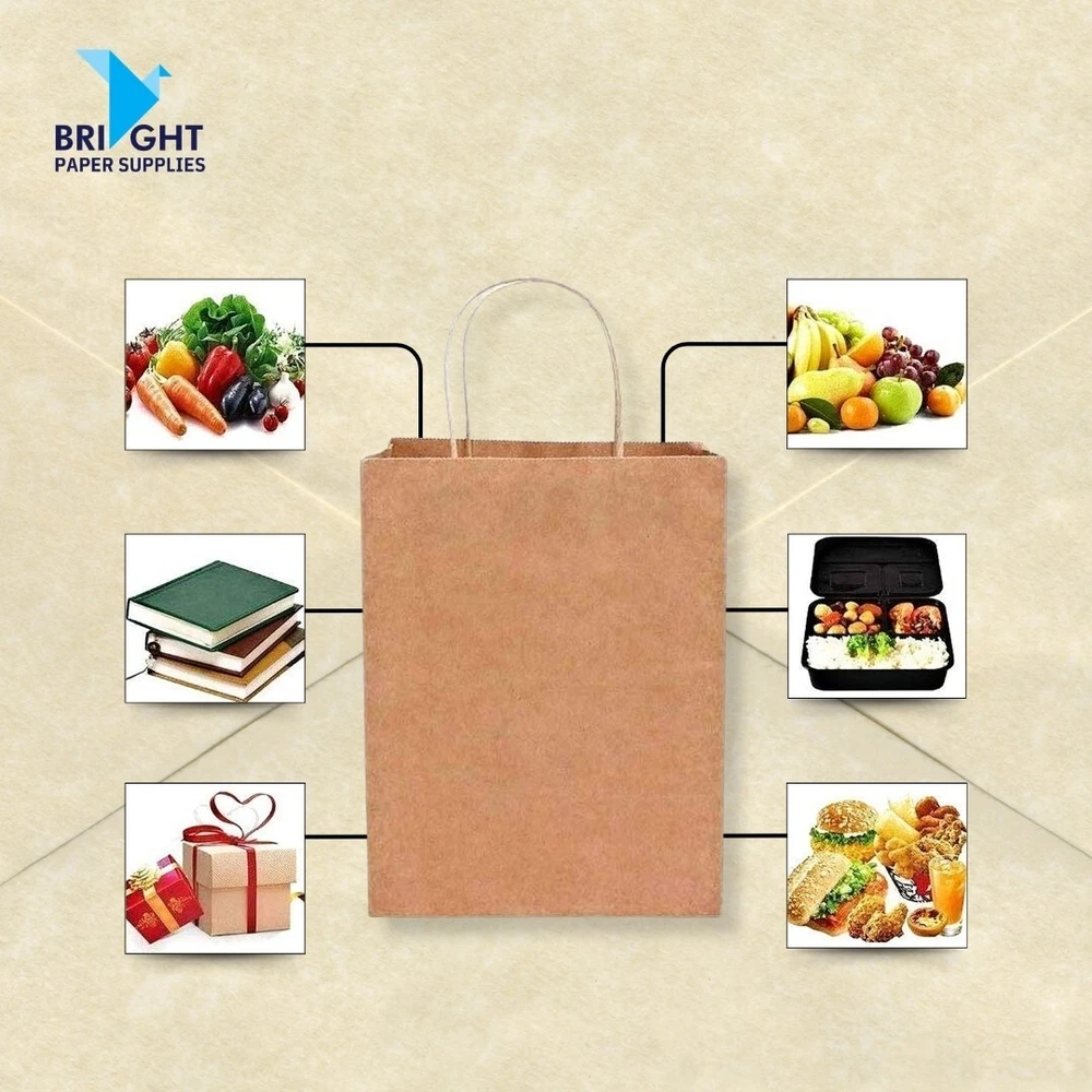 ✅ Eco-Friendly & Biodegradable – Made from 100% recyclable Kraft paper, these bags are an excellent alternative to plastic, reducing environmental impact. ✅ Durable & Strong – Crafted from high-quality, thick paper with reinforced handles, ensuring reliability for carrying groceries, gifts, or retail items. ✅ Versatile Usage – Ideal for restaurants, liquor stores, convenience stores, retail shops, bakeries, and more. Perfect for shopping, takeout, and gifting. ✅ Flat Bottom Design – The sturdy, flat-bottom design allows bags to stand upright, making packing and carrying more convenient. ✅ Multiple Sizes Available – Offered in a variety of sizes to fit different needs, from small boutique bags to large grocery bags. ✅ Sustainable Packaging Choice – A responsible choice for businesses and individuals looking to reduce plastic waste and embrace greener alternatives.