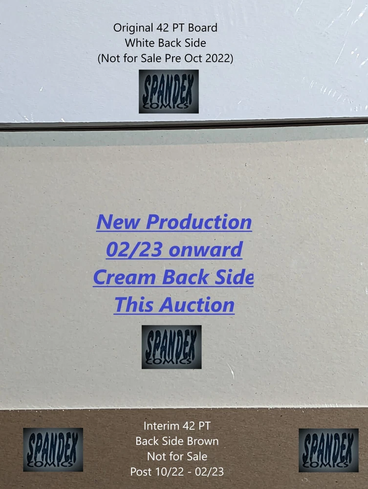 This Auction contains: 1 sealed pack of 50 E Gerber Silver Gold Full Backs (50) One Side White/One Side Cream The Boards are: White on One Side/Brown on Flip Side Made from 100% Acid-Free Virgin Pulp, 35 PT thick cardboard Ensuring extra rigidity and protection Produced with a 3% alkaline buffer Maintains ph of 8.0+ Meets U.S. Government Standards for Archival Storage Fits perfect with 725M+, 725M2 and 725M4 E Gerber Mylar Boards (none included in this auction) Dimensions: Boards are 7 1/2" x 10 1/2 on these Full Back Boards. Shipping is free to the Continental United States. Check out our other E Gerber supplies listing as well as out comic and card listings.