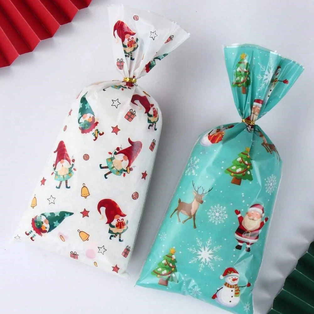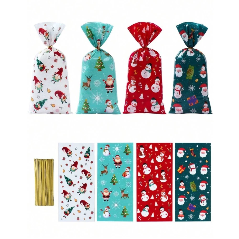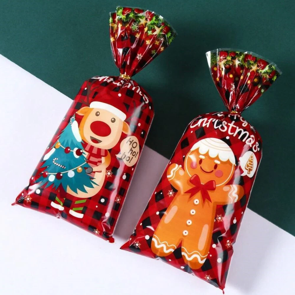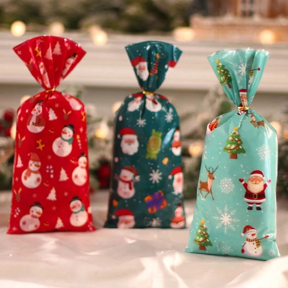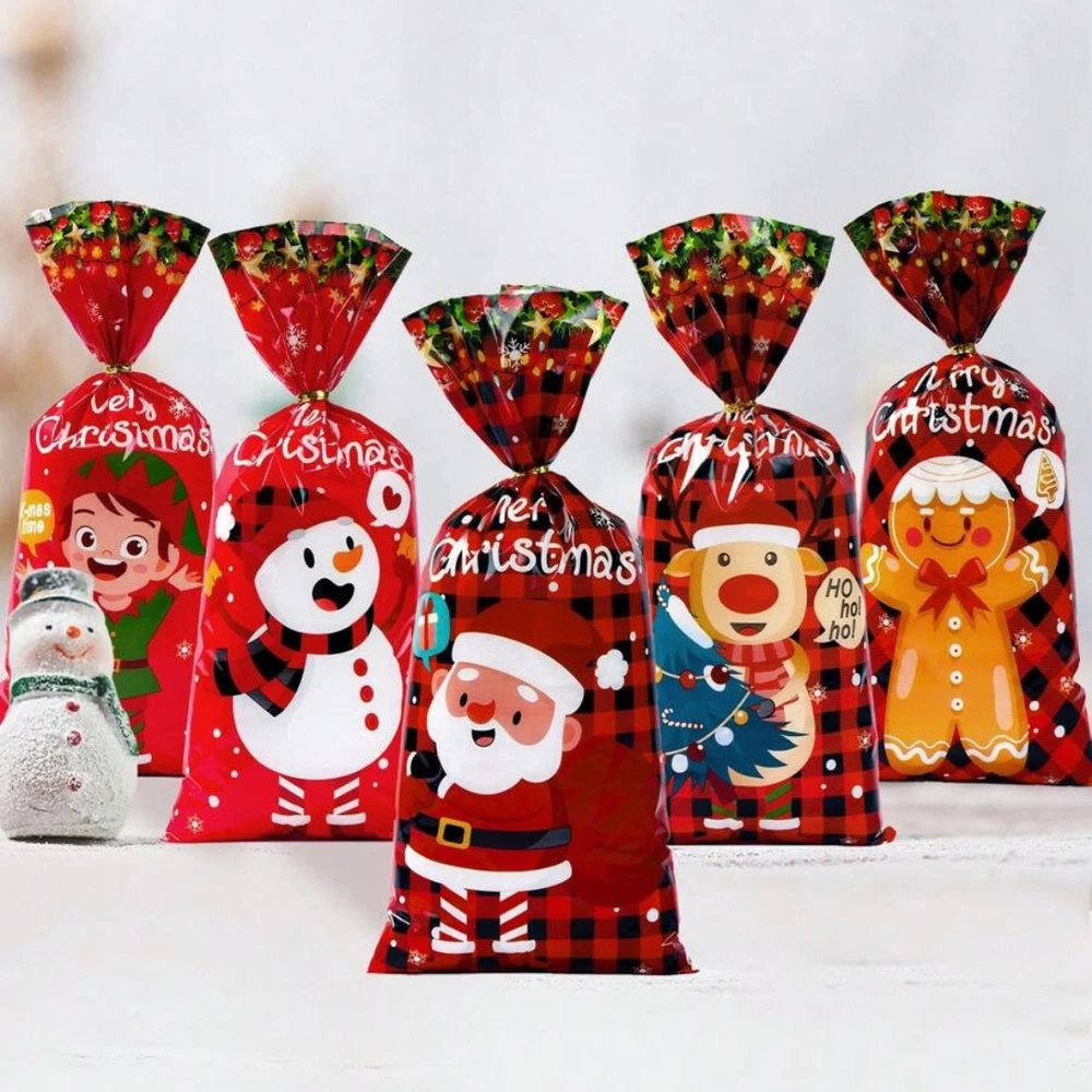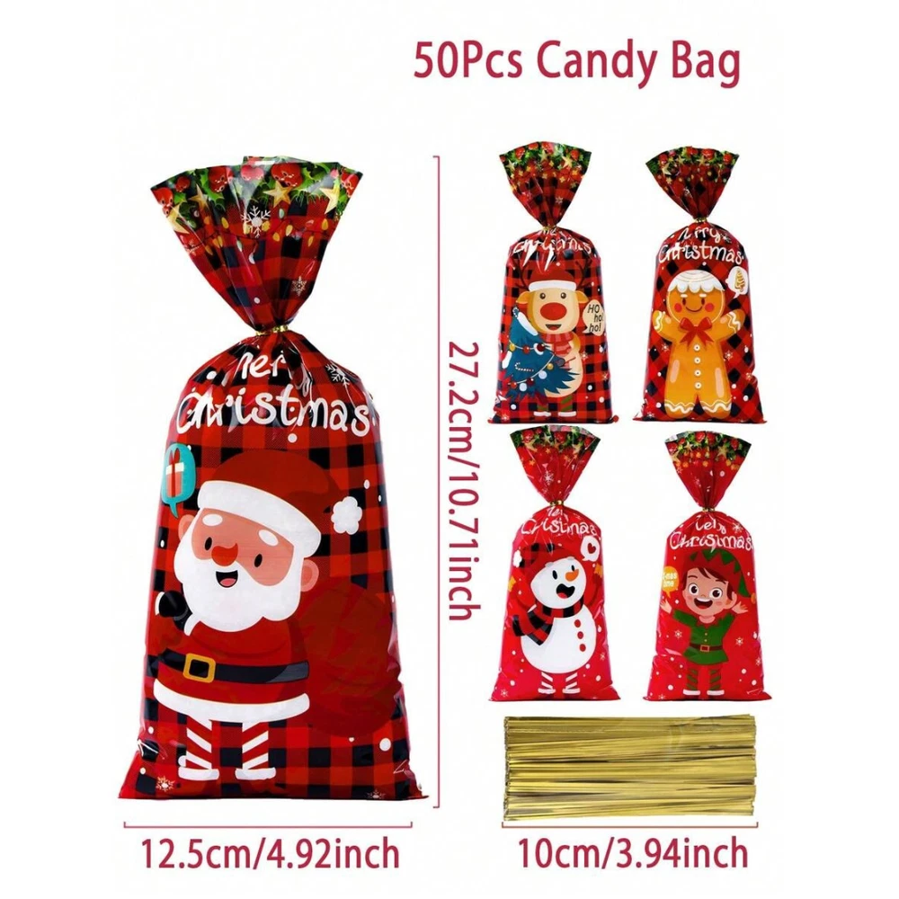 50 PCS Christmas Candy Bag Christmas Treat Bags Candy Goodies Plastic Drawstring