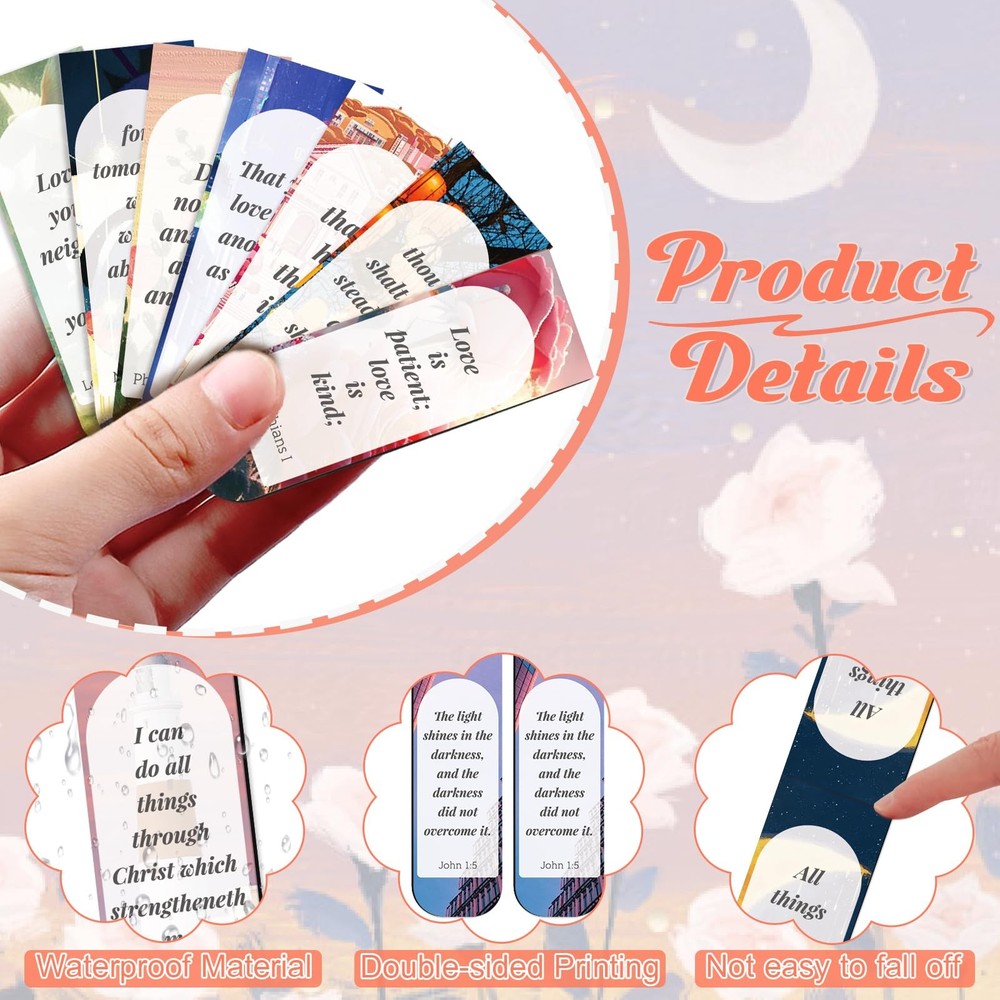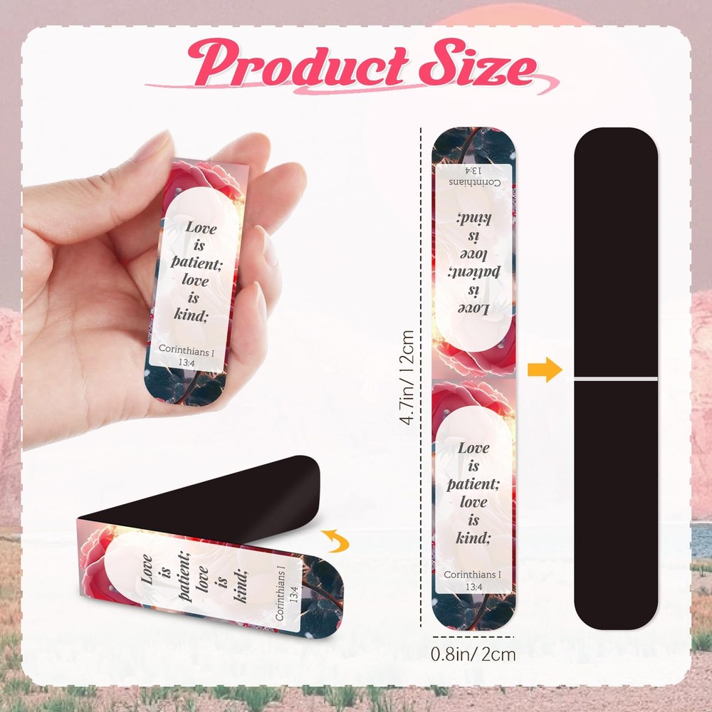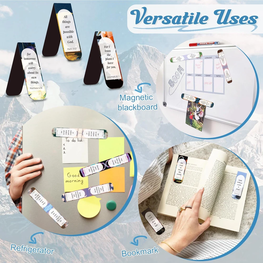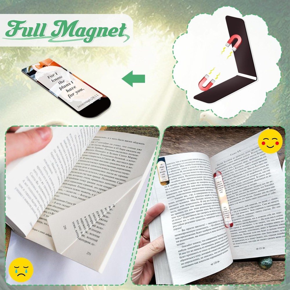50 PCS Magnetic Bible Bookmarks for Men & Women - Inspirational Scripture Verse Page Markers with Tabs, Bulk Christian Gifts,Religious Reading Accessories Diverse Designs - Enjoy a collection of 50 pcs of Bible magnetic bookmarks, featuring 50 different quotations from bible verse and pictures. The quantity of Double-sided magnetic page markers fully meet your reading needs Perfect Size - Each magnetic book mark measures approximately 6 x 2 cm (2.4 x 0.8 inches) and unfolds to about 12 x 2 cm (4.7 x 0.8 inches), making christian bookmarks lightweight and easy to carry Versatile Use - Magnet book markers made of quality magnetic paper film, which can cling to your book firmly. Personalized bible bookmark is suitable for Mass, worship, prayer meetings, book clubs, Bible study groups, or reading lovers Thoughtful Gift - Bible verse inspirational bookmarks serve as meaningful gifts for Christian women, men and kids. Magnetic bookmarks are also a practical gift for any book lover Assured after-sales service - if for any reason you are not satisfied with our bible verse magnetic bookmarks, we offer a satisfactory solution to ensure your happiness Elevate your reading experience with our collection of 50 inspirational Bible verse magnetic bookmarks. Each bookmark features a unique quotation and image, offering a diverse range of designs to suit every taste. Measuring approximately 2.4 x 0.8 inches when folded and unfolding to 4.7 x 0.8 inches, these lightweight bookmarks are easy to carry and perfect for marking your place in any book. Crafted from quality magnetic paper film, they cling firmly to your book, making them ideal for use in Mass, worship, prayer meetings, book clubs, or personal reading. Whether you're a Christian looking for meaningful gifts or a book lover seeking practical presents, these magnetic bookmarks make a thoughtful choice. If you're not satisfied with our product, we're committed to ensuring your happiness with our after-sales service. Shipping We offer FREE shipping on all orders! We ship within Three business days of payment, usually sooner. We use a selection of shipping services such as UPS, FedEx, USPS etc. We only ship to the lower 48 states, no APO/FPO addresses or PO Boxes allowed. Local pickups and combined shipping options are not provided at this time. Return You can return a product for up to 30 days from the date you purchased it. Any product you return must be in the same condition you received it and in the original packaging. Please keep the receipt. Payment We accept payment by any of the following methods: PayPal Please pay as soon as possible after winning an auction, as that will allow us to post your item to you sooner! Feedback Customer satisfaction is very important to us. If you have any problem with your order, please contact us and we will do our best to make you satisfied. Contact Us If you have any queries, please contact us via ebay. We usually respond within 24 hours on weekdays. Please visit our eBay store to check out other items for sale! Thank you for shopping at our store.