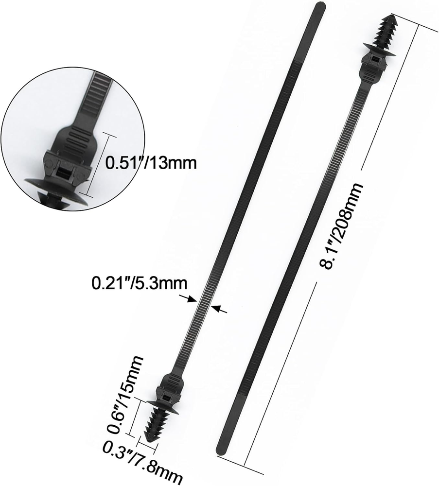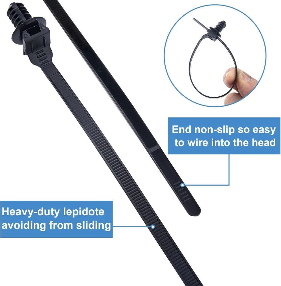 MATERIAL: Made of industrial strength 6/6 nylon material, which yields higher break points, even at colder temperatures. WORKING TEMPRATURE: -40 ~ 266°F (-40 ~ +130°C). MAXIUM LOAD: 50 lbs tensile strength. APPLICATION: Widely used in household, construction industry, electronic industry, auto industry, cable and wire assembly, packaging and shipping, outdoor activities PACKAGE INCLUDE: 50 Pack Cable Zip Ties. 50 Pack Cable Zip Ties, 8inch Nylon Push Mount Self Locking Cable Ties for Indoor Wire Tying-Black Specification MATERIAL: Made of industrial strength 6/6 nylon material, which yields higher break points, even at colder temperatures. WORKING TEMPRATURE: -40 ~ 266°F (-40 ~ +130°C). MAXIUM LOAD: 50 lbs tensile strength. Application Widely used in household, construction industry, electronic industry, auto industry, cable and wire assembly, packaging and shipping, outdoor activities. Package Include 50 Pack Cable Zip Ties. AFTER SALES SERVICE If you have anything concerned with the Cable Zip Ties after use, please first to choose contact us and we will take care of it for you. here is how Find your order in your amazon account, click the " contact seller" button beside the order ID.