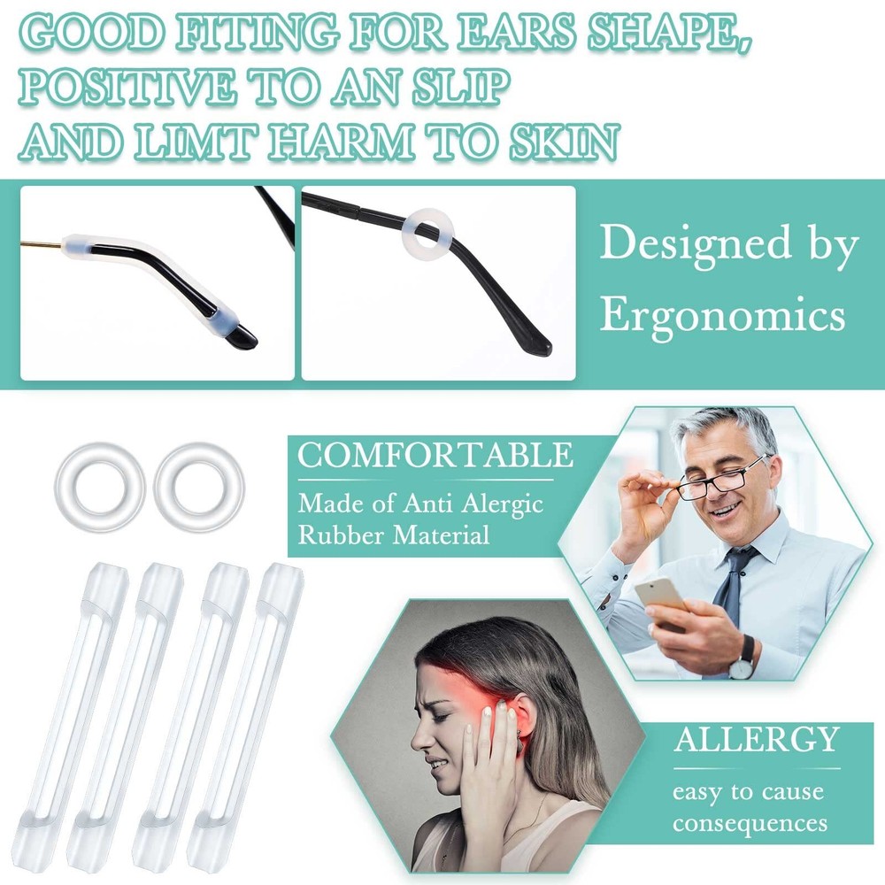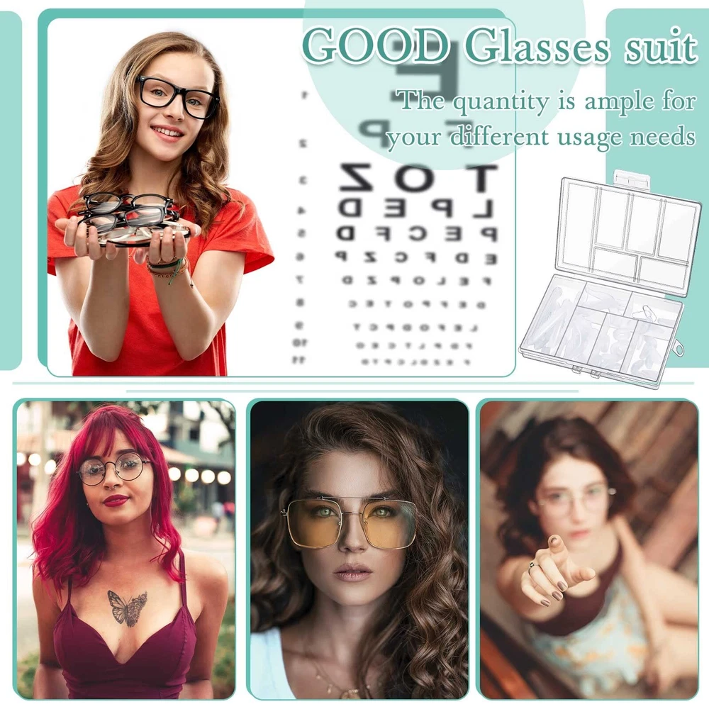 Features: Easy to : The package comes with 1 piece of box, you can put the nose pads for eye glasses in the box, will not take up too much space, easy and convenient. An ideal gift choice: You can apply the anti slip pads for glasses as gifts to send to your friends, neighbors who are wearing glasses, these gifts are practical and thoughtful for them. Specifications: Material: silicone and sponge Color: as shown in the picture Size: as shown in the picture Package includes: 48 Pieces glasses accessories 1 x Box 1 x Screwdriver Notes: Manual measurement, please allow slight errors on size. The color may exist a slight difference due to different screen displays. Rich in Quantity: you will receive 12 pairs of anti slip glasses nose pads in 3 different shapes, 4 pairs for each shape; 4 pairs of glasses fixers, 4 pairs of round ear gripper holders and 4 pairs of glasses non slip sleeves, 1 piece of box and 1 piece screwdriver, the quantity is ample for your different usage needs Easy to Use: these adhesive nose pads for glasses are easy to use, you just need to tear the film on the back of the nose pad and paste it on the glasses, which can provide a comfortable wearing experience Wide Range of Applications: these eyeglass nose pads are suitable for most glasses, such as frame glasses, sunglasses and more, can keep your glasses from falling Reliable Material: the nose pads for glasses are made of silicone and sponge materials, soft and comfortable, breathable and lightweight, can effectively reduce the burden of the bridge of the nose Transparent Design: the nose pads for eyeglasses are designed with transparent color, looks classic and elegant, can match well with your eye glasses; These nose pads are practical and helpful for those who are wearing glasses