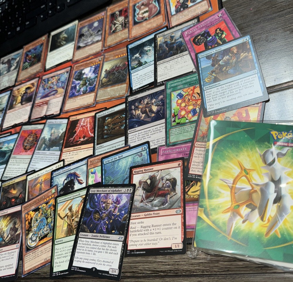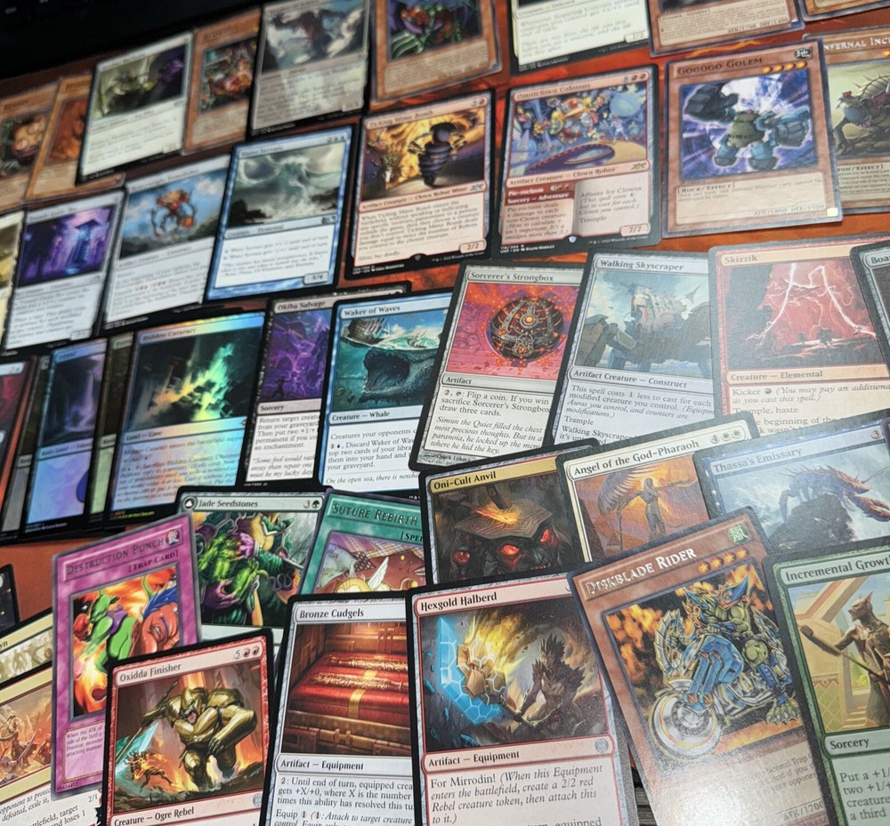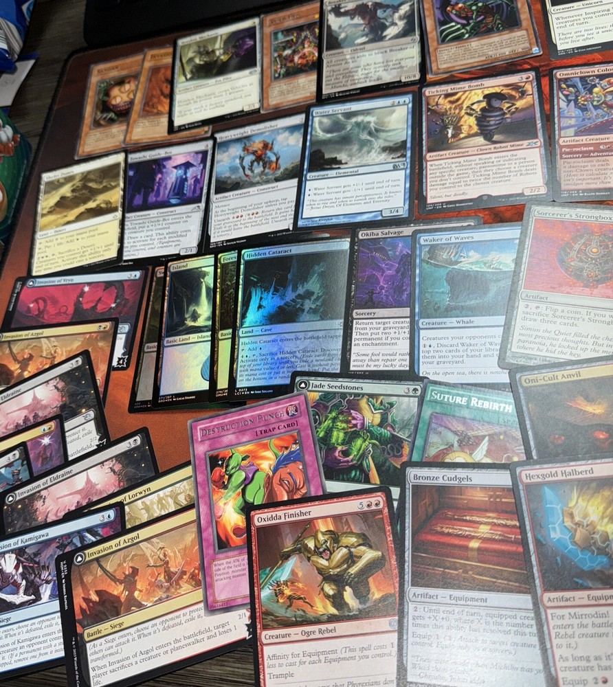 Lot of 50+ rare and uncommon Yu Gi oh and magic the gathering cards. Some holos included. A sealed mini Pokemon binder is also included