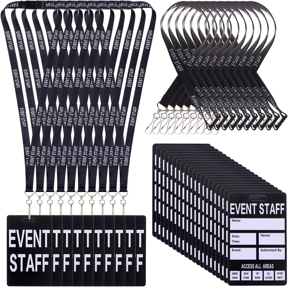 Package Includes: you will get 50 pcs of event staff passID cards and 50 pcs black lanyards.Sufficient quantities to meet your daily needs. High-quality material: The event staff badge with lanyard is made of PVC material, which is not easy to break and deform. And the lanyard with metal buckle is made of polyester, which is soft and wear-resistant, not easy to fade and can be used repeatedly for a long time. Appropriate size:The size of each event staff plastic badge is about 85.5x54mm/3.37x2.13 inches, the appropriate size is convenient for you to carry around without taking up too much space. The length of the lanyard is about 17.72 inches (the size after being folded in half) to fit most people. Reusable: Event staff cards are durable and suitable for long-term repeated use; you can write your name, event date, event name, visiting area, etc. on it. Erase information after use to continue reuse. Both the name badge and lanyard are in bold yellow to quickly help others identify the event staff. Wide Application: The event staff lanyard with badge is suitable for schools, fundraisers, parties, churches, summer camp staff, companies, event guides or other occasions. Keep your company and your party safe by identifying things like names. Product Description