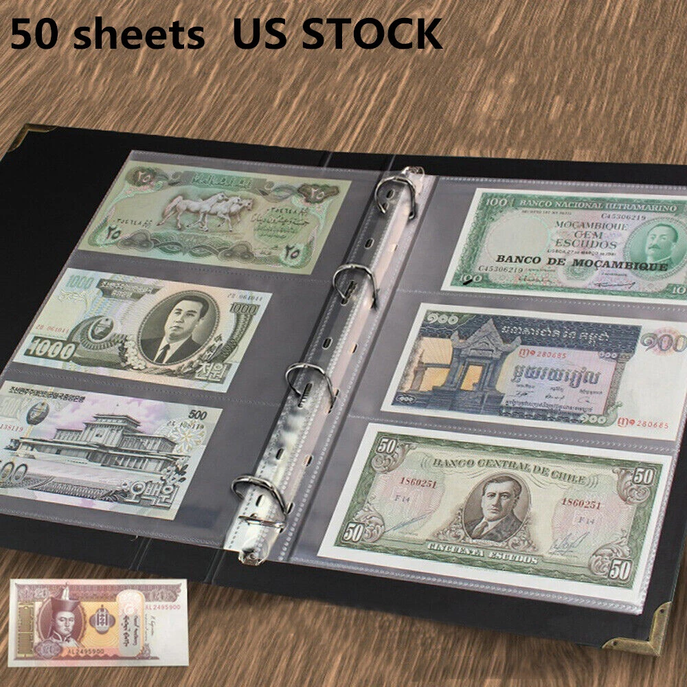 Condition: 100% Brand New Quantity: 1pc collection album(50 Sheets) Color : Color Random Material :Plastic + copper + stainless steel Size: outer size 31.6x25x4.8cm Conversion: 1 cm= 0.39 inch/ 1 inch=2.54cm Specifications: 50 pages banknotes collection, One page can hold 6 banknotes,300*banknotes in total Notice: 1. Due to the light and screen difference, the item's color may be slightly different from the pictures. 2. Please allow 0.5-2 cm differences due to manual measurement. 3. Thank you for your kindly understanding.