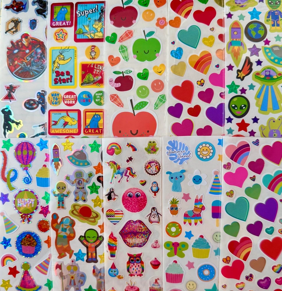 Special Mixed Sticker Lot | The Ultimate Kit | Qty. 500+ Stickers | High Quality Only! Fun Assortment of Puffy, Scrapbook, Cartoons, Bubble, Pop Up Stickers Packs For Everyone! This Bundle will include 500+ Stickers overall! I have included a large variety of pictures of the assortment available. The pictures give you an idea of what you will be receiving. Please Note: You will not receive everything pictured. Please contact me with any special requests. This HUGE Variety of fun designs stickers can be used in parties, classroom, school and home, good for reward for students, potty training, adding inside a birthday card, game activities, entertaining toddlers, etc. Perfect Gifts for Kids & all Occasions: Can be given as a gift for kids, girls, boys, toddlers, teens, students, friends, and classmates, they will love it!
