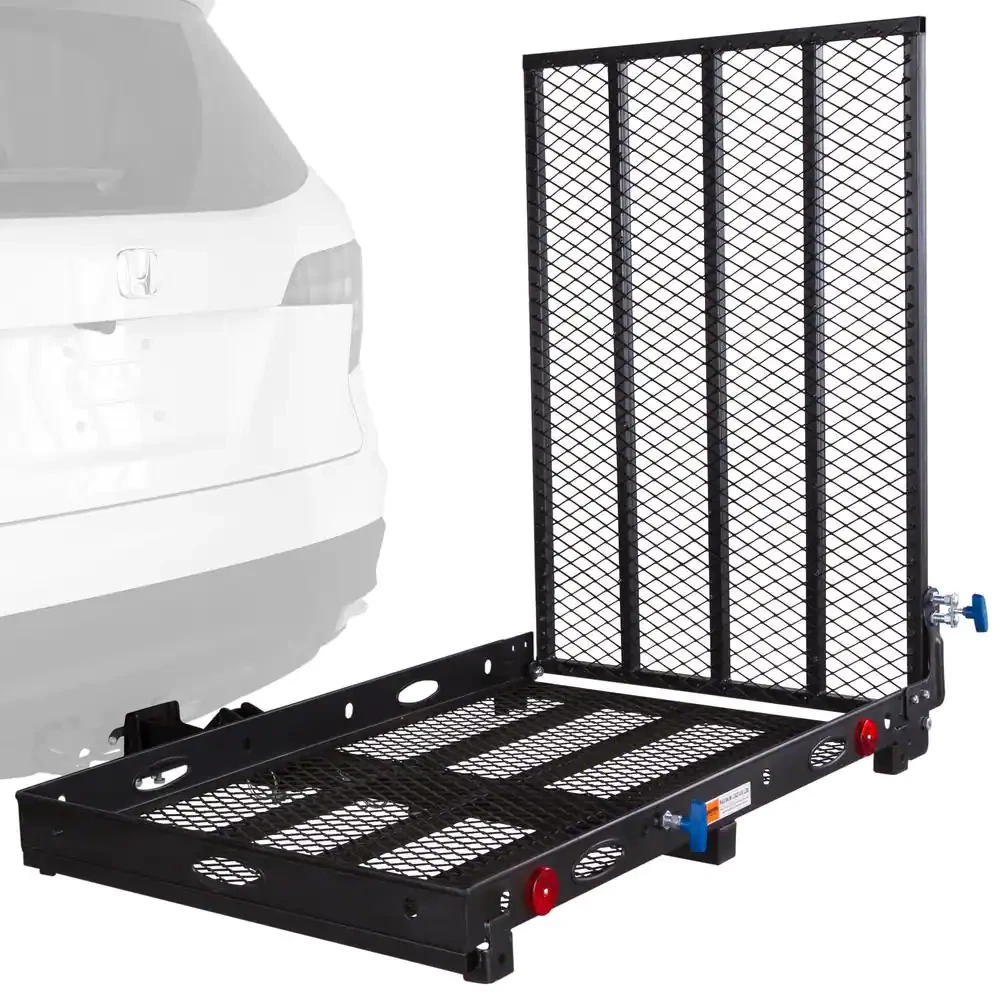 Store New Arrivals Add to Favorite View Feedback Contact 500 Lbs. Capacity Hitch-Mounted Folding Steel Wheelchair or Scooter Carrier with 42 In. L Ramp Description Automotive Part Type Cargo Carrier Color Black Features Folding General Part Type Cargo Carrier Included Parts Installation Hardware Material Steel Mount Location Hitch Product Weight (lb) 71 lb Returnable 90-Day Weight Capacity (lb) 500 lb Manufacturer Warranty 1 Year Hitch Receiver Size (in) 2 in Product Height (in) 3 in Product Length (in) 27.75 in Product Width (in) 48 in Transport mobility scooters or wheelchairs Carrier folds up for smaller footprint when not in use Ergonomically-designed T-handles for easy use Easily transport your power scooter or wheelchair anywhere with the Silver Spring Folding Scooter and Wheelchair Carrier. The innovative 42 in. L 3-position ramp allows you to easily load and unload your scooter and, when not in use, the ramp folds flat to the carrier for tailgate or hatch access. Best of all, with our specially designed hitch attachment, this carrier folds up against the back of your vehicle when not in use to make driving and parking easier. For most vehicles with this folding attachment you will be able to park your car in your garage without removing the carrier. The specialty ergonomically designed spring pin handles included on this mobility carrier make operation incredibly user friendly. These exclusive carrier handles eliminate the difficult standard style pin-rings, allowing users to simply grab and pull when you need to position the loading ramp. Also included with the carrier is an anti-rattle device which slides onto the hitch tube to prevent the rack from wobbling during transportation. Durable and lightweight, this is one of the most user-friendly wheelchair carriers on the market. Scooter or wheelchair cargo carrier rack designed for designed for Class III or IV 2 in. hitch receivers Maximum 500 lb. weight capacity can support most 4-wheeled scooters Includes anti-rattle device, 5/8 in. hitch pin, T-handle spring pull pin Built-in 42 in. folding loading ramp 10 Tie-down points to secure your mobility device Folds upright against vehicle when not in use for a tighter footprint while parked Durable powder-coated steel construction ABOUT US We offer the best prices around on high quality products. Our E-store includes tools, general home, garden items and more. SHIPPING We are always working hard to ensure your package arrives as soon as possible. Please understand that some factors like weather, high postal traffic, and the performance of shipping companies are outside of our control. We offer free shipping to the lower 48 states and ship within 4 business days of payment, usually sooner. We do not accept P.O. Boxes. Please provide a physical address. RETURNS We offer a 30-Day Return Policy on items which you are not completely satisfied with. You have the option for a full-refund or an exchange of the item. No returns are available on items shipped outside of the USA. PAYMENT We accept PayPal. CONTACT US This page content is yet to come Please ad us to your favorite seller and visit again later Thank You CUSTOMER SATISFACTION We try our very best to make sure every customer is completely satisfied. If there's a problem, message us! We're happy to help. WE ACCEPT Copyright © 2017 AutoDs. | All Rights Reserved