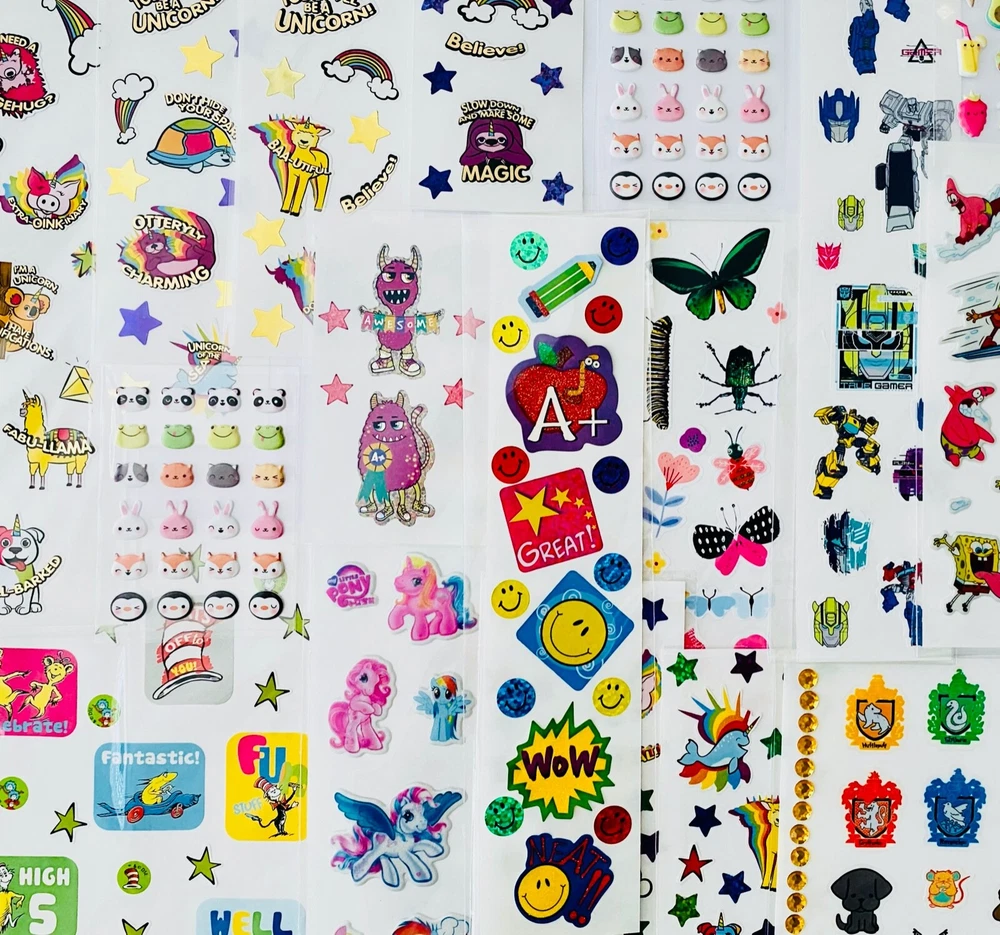 All stickers are BRAND NEW | Still in their original packaging! Mixed Sticker Lot | The Ultimate Kit | Qty. 500+ Stickers | High Quality Only! Fun Assortment of Puffy, Scrapbook, Cartoons, Bubble, Pop Up Stickers Packs For Everyone! You will receive 27+ Sticker Sheets of beautiful colorful assortment. I have included a large variety of pictures of the assortment available. The pictures give you an idea of what you will be receiving. Please Note: You will not receive everything pictured. Please contact me with any special requests. This HUGE Variety of fun designs stickers can be used in parties, classroom, school and home, good for reward for students, potty training, adding inside a birthday card, game activities, entertaining toddlers, etc. Perfect Gifts for Kids & all Occasions: Can be given as a gift for kids, girls, boys, toddlers, teens, students, friends, and classmates, they will love it! Each package of stickers is a different style & theme with some lovely embellishments like rhinestones, ribbons, buttons and other 3D details that make these quality stickers look so unique!