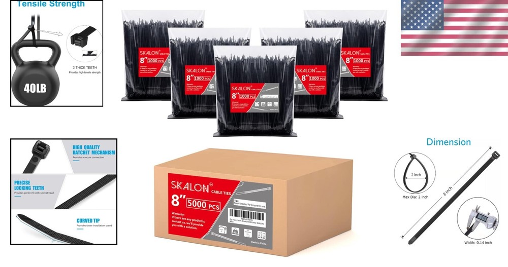 5000 Pack of 8-Inch Black Nylon Zip Ties for Indoor/Outdoor Use - 40 lb Strength ‹ › ‹ › ‹ › ‹ › ‹ › ‹ › ‹ › ‹ › 5000 Pack of 8-Inch Black Nylon Zip Ties Elevate your organization and crafting projects with our premium pack of 5000 zip ties, meticulously designed for both indoor and outdoor applications. Each tie combines functionality with durability, capable of handling demanding tasks with ease. Product Features: Dimensions: Length: 8" | Width: 0.14" | Max Diameter: 2" | Tensile Strength: 40 lbs | Color: Black Generous Quantity: 5000 ties in each package, perfect for all your projects without the worry of running short. Versatile Usage: Ideal for home, shed, garden, garage, and organizing electrical cables. High-Quality Material: Constructed from UV-resistant, halogen-free nylon66, suitable for temperatures ranging from -40℉ to 185℉. Reliable Warranty: 1-year warranty period with a 100% refund guarantee on quality issues under warranty. Unmatched Strength and Design: Our zip ties provide a higher tensile strength of 40 pounds, ensuring they withstand rigorous applications. The broader width of 0.14 inch surpasses industry standards, allowing for more secure grips and peace of mind. The self-locking design guarantees a tight, reliable securement every time with consistent performance. Why You Need These Zip Ties: These black nylon zip ties are not just tools; they are the ultimate solution for all your organizing needs. Whether you're managing electrical cords, repairing garden fences, or hanging decorative lights, count on our ties to deliver reliability and strength in every application. With an impressive pack of 5000 ties, the possibilities are endless. Invest in the best—choose our 8-Inch Black Nylon Zip Ties today and experience functionality, quality, and exceptional service. Shipping Free & Fast Shipping - We offer free shipping to most of the USA with a normal delivery time of 3-10 businessdays. However, due to various situations, additional delivery time (up to 3 weeks) may be required for some items. Alternative Carriers - We may use alternative carriers (e.g. USPS, FedEx, UPS, etc.) to ensure your package arrives safely and on time. Due to the use of multiple carriers, we are unable to provide a tracking number automatically. Handling Time - Orders are processed and shipped within 1-5 business days of receiving cleared payment. Shipping Restrictions - Shipping to Alaska, Hawaii, Puerto Rico, Guam, and other US territories may incur shipping charges or delivery restrictions. Please contact us before ordering, or your order can be refunded/cancelled. State Restrictions - There may be restrictions based on your state of purchase. For example, certain items may not be shipped to California due to state regulations. Contact for Tracking Updates - If you require tracking updates or have any concerns about the delivery of your order, please feel free to contact us, and we will be happy to assist you. Return Please see our ebay return policy. We do not accept return on most products. This is to avoid customers mis-using ebay returns. All sales are final. Please be sure to check the return policy listed at the top of the listing. In rare cases, we may accept returns, if the buyer pays both ways shipping and 20% restocking fee. If you are un-sure of return policy of a particular item, please ask before buying. Payment We accept all major credit cards, PayPal, and Apple Pay for your convenience. Your payment information is secure and encrypted to ensure a safe and seamless transaction. Please complete your payment within 3 days of purchase to avoid any delays in shipping. Feedback Your feedback is extremely important to us. We strive to provide the best products and customer service possible. If you are satisfied with your purchase, please take a moment to leave us a positive review. If you have any concerns or issues with your order, please contact us before leaving negative feedback. We are committed to resolving any problems and ensuring your satisfaction. Contact Us If you have any questions or concerns, please feel free to reach out to our customer support team. You can contact us through the eBay messaging system. We are available Monday to Friday, 9:00 am to 5:00 pm EST, and we will do our best to respond to your inquiry within 24 hours. Buy it now and enjoy a pleasant shopping experience! UPC: Not Set Unit Quantity: 5000 Material: Nylon,Nylon66,Plastic Features: Self-Locking,UV Resistant,Weather Resistant,Indoor Use,Outdoor Use,Multifunctional,High Quality,Durable Brand: Unbranded Type: Cable Ties Color: Black Tensile Strength: 40 lb Item Width: Not Set Finish: Natural Item Length: 8 in MPN: Not Set Unit Type: Unit Number in Pack: 5000 Manufacturer Warranty: Not Set Country/Region of Manufacture: Not Set