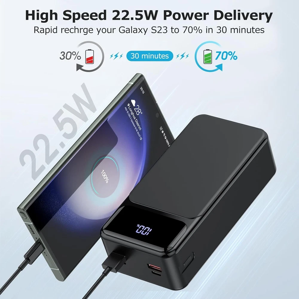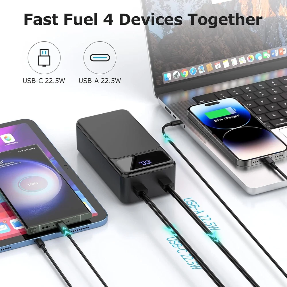 Product Description 【Colossal Cell Capacity】50000mah power bank provides 10 charges for iPhone11, 10 times for Samsung S10. Depending on battery size, most smartphones will get over 9 full charges. Suitable for camping, hiking, vacation, travel and more. 【High-Speed Charging】( USB C portable charger) Equiped with 22.5W USB-C port to charge iphone X up to 60% in half hours. In the meanwhile, built in quality batteries and comprehensive multiprotect safety system, include overcharge protection, short circuit protection, temperature control, and more, ensure complete protection for you and your devices. 【Simultaneous Charging】With 2 USB-C port(Support IN&OUT), 2 USB ports, you can now charge up to 4 devices at once without sacrificing power; Our battery pack compatible with your smart phone, tablet computers, mini speakers, bluetooth headsets, cameras, handheld game consoles and other USB electronic devices. 【Thoughtful Design】Smart LED digital display, accurately keep track of remaining juice, allowing you to easily operate your power. 【What You Get】50000mah Power Bank, USB to USB-C Cable, User Manual, Our worry-free 24-month warranty, and friendly customer service. About Us We are a reputable seller with many years of experience selling on eBay. Our goal is to provide high-quality products and excellent customer service. Payment 1.We accept PayPal only. 2.All major credit cards are accepted through secure payment processor PayPal. 3.Payment must be received within 7 business days of auction closing. 4.We ship to your eBay or Paypal address. Please make sure your eBay and Paypal address is correct before you pay. Feedback will be left automatically after we receive your feedback. Please contact us before leaving a Negative feedback or Neutral feedback. We would try our best to help you solving any problem. Shipping Items will be shipped within 1-3 business days when we received payment. (Orders are not processed on weekends & holidays) Tracking information will be sent once item is shipped. Delivery time depends on destination and other factors Item is shipped to ebay address. Leaving correct address can minimize delay. For international shipping and shipping to Guam, Hawaii and Alaska, Please contact us before placing the order. International buyers please note: Import duties, taxes and charges are not included in the item price or shipping charges. These charges are buyer’s responsibility. We will try our best to reduce the risk of the custom duties. Local pick-up is unavailable at the moment. Returns For any issues with Defects, Return, Item Exchange request, please contact us first and send us a message first before opening any type of case or request. We devote ourselves making EVERY CUSTOMER in 100% Satisfactory and resolve any problem. We highly value and appreciate your business. Thank you. No returns will be accepted without an RMA number. Please contact us for the RMA number. Return is acceptable within 30 days of delivery. Return for replacement or money back is optional. Returned items must be in the brand new, unaltered and resalable condition. Seller is not responsible for any labor cost, expense in a dealer store, or damage due to wrong installation. Contact Us We reply any email messages within 1 business / working days(off-duty at weekend). If you do not get a response from us, then please check your junk or spam mailbox. Our Business hours: Mon-Fri 9:00-18:00, UTC/GMT +8 hours. Please contact us either by clicking "contact seller" in the "purchase history" section or simply click "ask a question" at the bottom of this page. If you are unsatisfied with our item or service, please contact us before leaving any feedback. We are committed to resolve all issues in a friendly and satisfactory manner. powered by