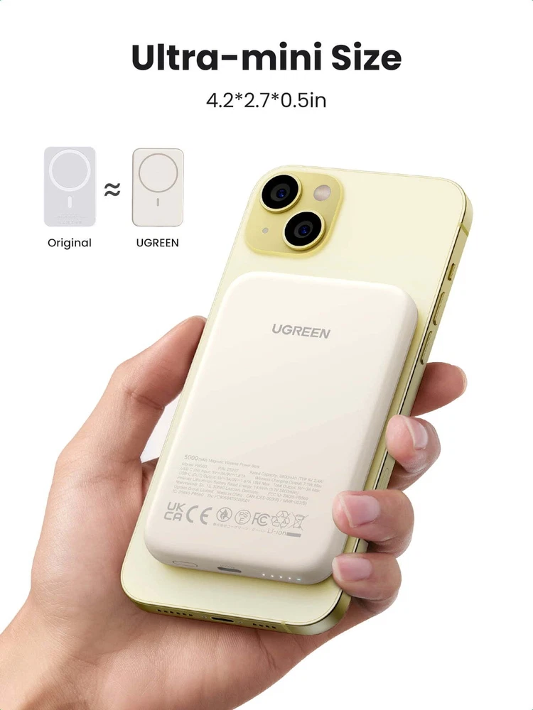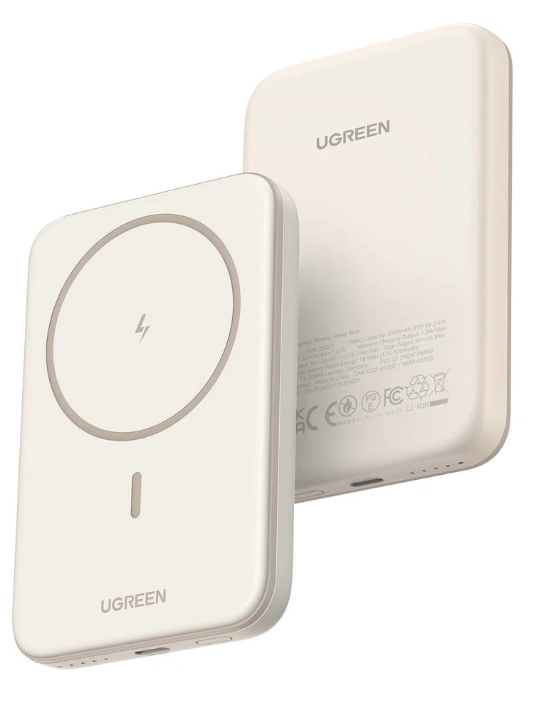 This compact and lightweight 5000mAh wireless power bank is the perfect portable charging companion. Its sleek silicone design provides a comfortable grip and scratch protection, while the powerful 15W wired and 7.5W wireless charging capabilities quickly refuel your iPhone 12-16 series device, compatible with MagSafe. With a trickle charging mode for smaller gadgets and a slim profile that fits easily in your pocket, this versatile power bank keeps you connected and powered up wherever your day takes you. Pocket-sized and lightweight design with a thickness of only 0.5 inches and a weight of just 0.26 pounds, making it easy to carry in your pocket, pack, or purse while on the go. Sleek silicone construction provides a comfortable grip and safeguards your devices against wireless charging scratches. Supports fast charging with a maximum power of PD 3.0 15W wired charging and Qi 7.5W wireless charging, allowing you to quickly power up your devices. Trickle charging mode is more suitable for charging devices like AirPods, easily completing a charge without any pause. Designed for compatibility with cases and capable of charging through magnetic phone cases, allowing you to leave your phone protected while it powers up. Equipped with a 5000mAh battery capacity to provide ample power for your devices. Includes a USB-C to USB-C cable for convenient charging.