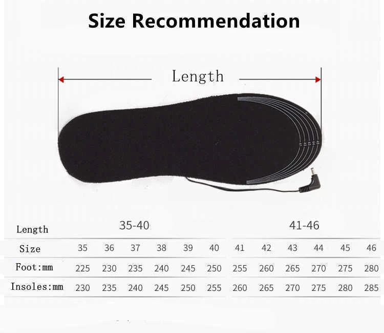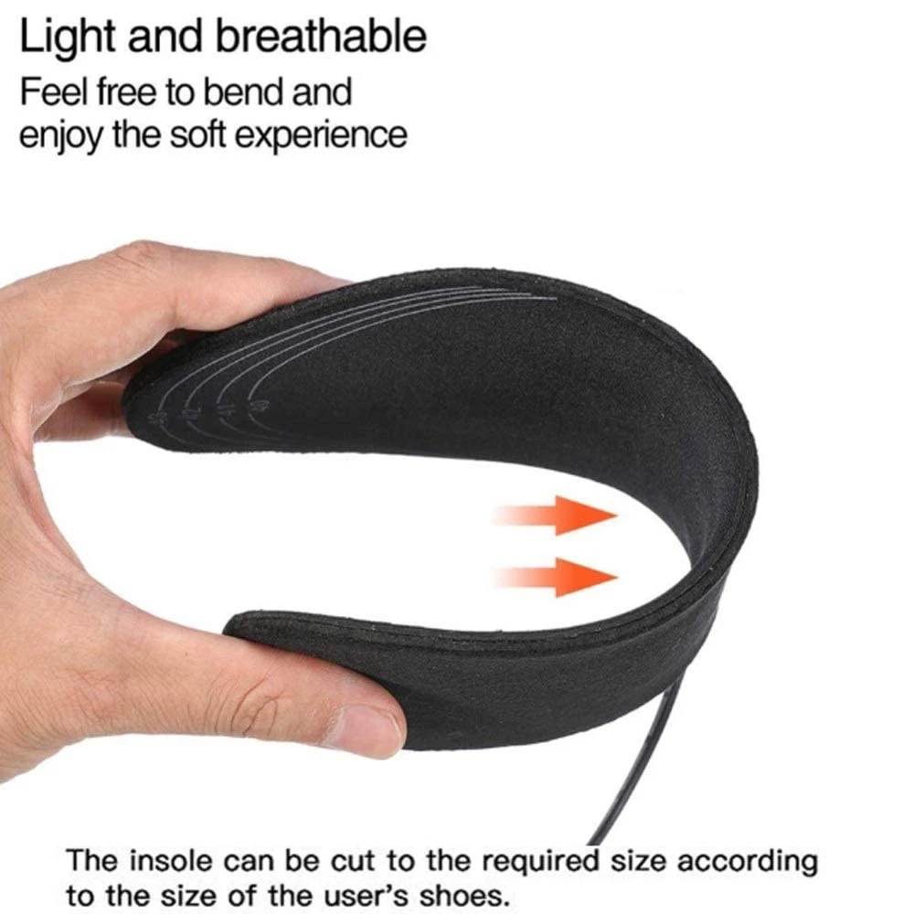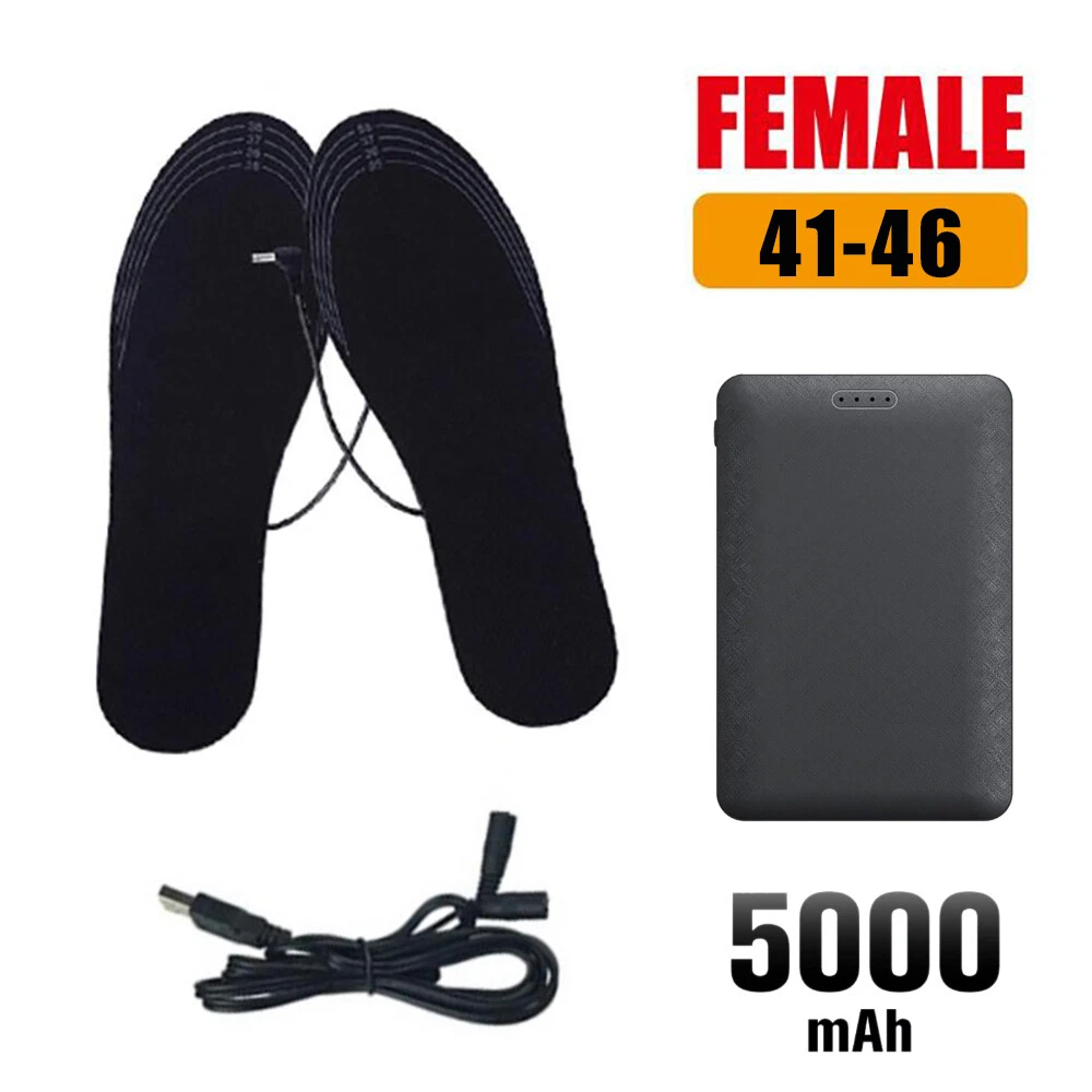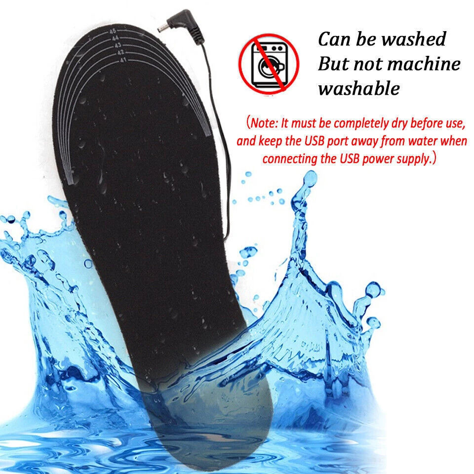 Specification: Insole material: EVA elastic fiber Heating material: far infrared carbon fiber Heating temperature: 40 50 -50°C Output: 5V/2A USB heated insoles-These heated insoles use new heating technology, made of comfortable EVA elastic fiber, have good cushioning properties, lightweight heating surface and even heat distribution The insoles made of elastic EVA fiber sole material + far infrared carbon fiber heating material keeps your feet comfortable and warm. Excellent slip resistance and high temperature resistance, very suitable for various outdoor activities The insole can be customized according to your shoe size. The shoe size range is marked on the insole, which is convenient for do-it-yourselfers. Can be washed directly without affecting the use effect (not machine washable). Reminder: Please dry thoroughly before use. When connecting to the USB power supply, the USB port should be kept away from water. Do not soak in water for a long time. Package: 1 Pair heating Insoles or: 1 Pair heating Insoles 1* 5000mAh Powerbank Payment Delivery details About Taxes About us Contact us Payment Payment is managed by eBay. We will ship to your eBay address. Please make sure your address setting is correct before checkout. Delivery details WORLDWIDE SHIPPING. (Except some countries and APO/FPO) Orders processed timely after the payment verification. The images shown are not the actual item and are for your reference only. SERVICE TRANSIT TIME is provided by the carrier and excludes weekends and holidays. Transit times may vary, particularly during the holiday season. About Taxes For all orders, please note that: Taxes and charges are not included in the item price or shipping charges. Please check with your country's customs office to determine what these additional costs will be prior to bidding/buying. About us We are committed to provide excellent service for all buyers. Welcome to our eBay store:) Contact us Our Working Time (Beijing): 9:00 am ~ 6:00 pm (Monday~Friday) If the item is defective or taking longer than usual to reach you, please do not leave us negative feedback. Send us a message through eBay and we will resolve the issue promptly. Thanks for your support and understanding! If you have any questions, please contact us via ebay mail, we will reply you on the working day in China. And there will be no reply as we are out of office during weekend, we will reply on Monday. Because the time zone between the seller and the buyer is different, please be patient and wait for your understanding. We will be happy to serve you.