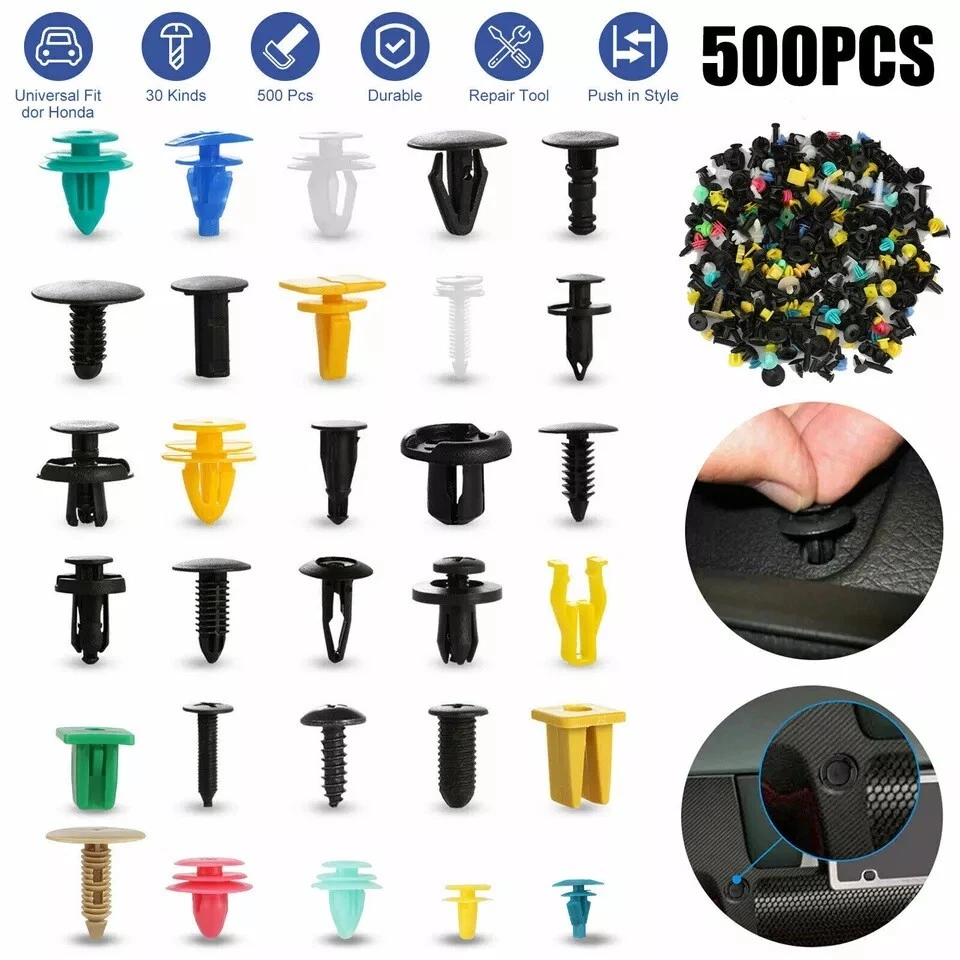 500PCS Car Retainer Clips Auto Fastener Car Body Push Trim Pin Rivet Bumper Kits Features: These rivet fasteners are made of nylon material, suitable for car use. Car's good accessory, commonly used for fitting side skirts, bumpers and other trim. These clips are suitable for firmly holding anything within a fit diameter hole. They can be used on buses, trains, planes, truck, caravans and cars. Type: Fastener Clip Color: Black Material: Plastic Quantity: 500 Pcs Notes: Due to the light and screen setting difference, the item's color may be slightly different from the pictures. Please allow slight dimension difference due to different manual measurement. Package Includes: 500 x Fastener Clips Welcome to our Store ! ! Converse: 1 inch = 2.54cm or 1cm = 0.393 inch Note: Due to the light and screen difference, the item's color may be slightly different from the pictures. Please understand. Make sure you don't mind before you bid. Please allow 2-3cm differences due to manual measurement.