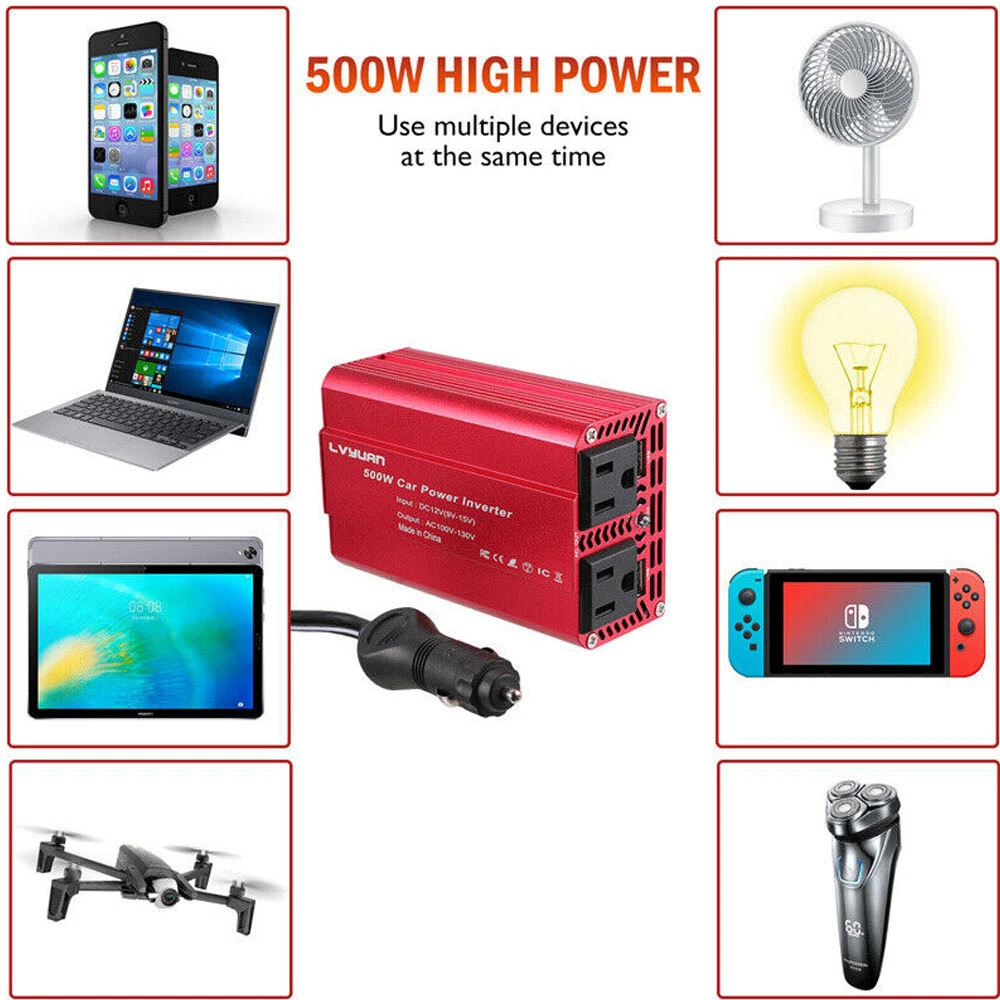 SAFE & SECURE SHOPPING 100% SATISFACTION GUARANTEED FAST SHIPPING Store Categories Store Categories Other You may also like Refrigerator Freezer Thermometer Fridge DIAL Type Stainless Steel Hang Stand 1-4 5.65 USD Free shipping 2.4" 4 PC Rainbow Tobacco Herb Spice Grinder W/ Handle Crank & Drawer Crusher 13.95 USD Free shipping 2Pack 20" Chainsaw Saw Chain Blade 0.325" .058 76DL for Blue Max 53543 8901 8902 14.99 USD Free shipping 2Pack Temperature Thermometer Gauge Barbecue BBQ Grill Smoker Pit Thermostat BBQ 8.99 USD Free shipping 100 14" Cable ZIP TIES Heavy Duty Strong Ultra Nylon Wrap Wire Cord UV Resistant 7.85 USD Free shipping Leather Repair Filler Cream Vinyl Kit Restore Car Seat Sofa Scratch Scuffs Holes 6.95 USD Free shipping 500W Car Power Inverter Converter Adapter 12V to 110V 2USB Charge Phone Laptop Product Description 500W Car Power Inverter Converter Adapter 12V to 110V 2USB Charge Phone Laptop Description More Outlets: Car Power Inverter for Car Cigarette Lighter. Provides 500w Rated Dc to Ac Power, Featuring 2 Ac Outlets and 2 Usb Quick Charging Ports(Max 3.1a Total Output). the Inverter Is Great for Cellphone, Christmas Gift, Charging String Lights, Laptop, Nebulizer, Game Console, Kindle, Tv, Dvd/Bd Players, Lights, Ipad and Other Electronic Devices. Ultra Compact and Lightweight: Credit Card-sized Design Ideal for Use on Vacations, Work Trips, and Camping. 24 Inch Cigarette Lighter Plug Makes the Power Inverter Can Be Plugged into Almost Any Vehicle. Multi-protection: Safe Charging Design Provides Protection Against: Overheating, Under and over Voltage Charging, Short Circuit, Overloads. Rock Solid: Durable Aluminum Alloy Housing Provides Advanced Protection from Drops and Bumps. Integrated Cooling Fan Helps Reduce Heat and Prevents Shortages. Sepcifications: Brand New Modified Sine Wave Inverter Dc to Ac Usb Output : 5v , 3.1a Input Dc Voltage: 12v Input Dc Voltage Range : 10.5v-15v Output Ac Voltage : 110v Output Ac Voltage Range : 100v-120v Low Voltage Alarm : 10dc±0.5v Low Voltage Shut down : 9.5dc±0.5v Over Load : Shut off Output Over Voltage Shut down : 15v Over Thermal : Shut off Output Automatically Start : Soft Start Protection : Overload, Short Circuit, Overtemp, Under/over Voltage Packing 1 X Power Inverter User Manual Payment Shipping Returns Feedbak Payment EBAY Managed Payment. But we only Accept your Ebay Address, please Make sure it's 100% right. Payment must be received in 5 business days of auction closing. Please leave note for your special request (e.g. Colors or Size) in when you pay the order. Any special request cannot be accepted after 24 hours of payment, because most of orders will be processed instantly and same day dispatched. Shipping 1. We only ship to the confirmed address provided by eBay. please make sure your ebay address is 100% matches the address you would like us to ship to. If not, please let us know before we sent you the package, or we will not be responsible for any loss. hope you could understand. 2.Except for holidays, orders are processed immediately and shipped within 1 business day, so we will no longer accept any changes to your order after it has shipped. Please understand! 3、Our package will be delivered to you within 1-5 days, please be patient! Returns 1.Note: For your best shopping experience in our store and saving your time. Please Do Not click "Return this item" except that you just don't need it any more. Because "return request" can't help you to solve the problem efficiently, it may takes a little longer time for u to get a reply due to we check with our "return request" every 2 days. that is the fastest way to solve any problem for you (We may respond a day later if you contact us at Saturday). You will receive helpful and practical solution through the communication between us. 2.Refunds given only if item DOA and cannot be replaced via PAYPAL . If so, Please reported within 5 days and return to us within 30 days from the delivery date for exchange or refund. 3.If you need return, please check twice to confirm the item not work and contact our customer service representative, let us know the detailed problem and send us some pictures for confirmation. Then get a unique address for return. Feedbak 1.We will leave POSITIVE FEEDBACK after receiving the payment. Please contact us if you are not satisfied with the item after receive it. 2.3.If you are dissatisfied for any reason, please donot be quick to leave negative/neutral feedback. We work hard to make sure EVERY CUSTOMER 100% SATISFIED and resolve any problem for you and always leave positive feedback to all our customers. 4.Serious Buyer Only! Please place bid only if you agree with all the terms. Copyright © 2022 Tongtool