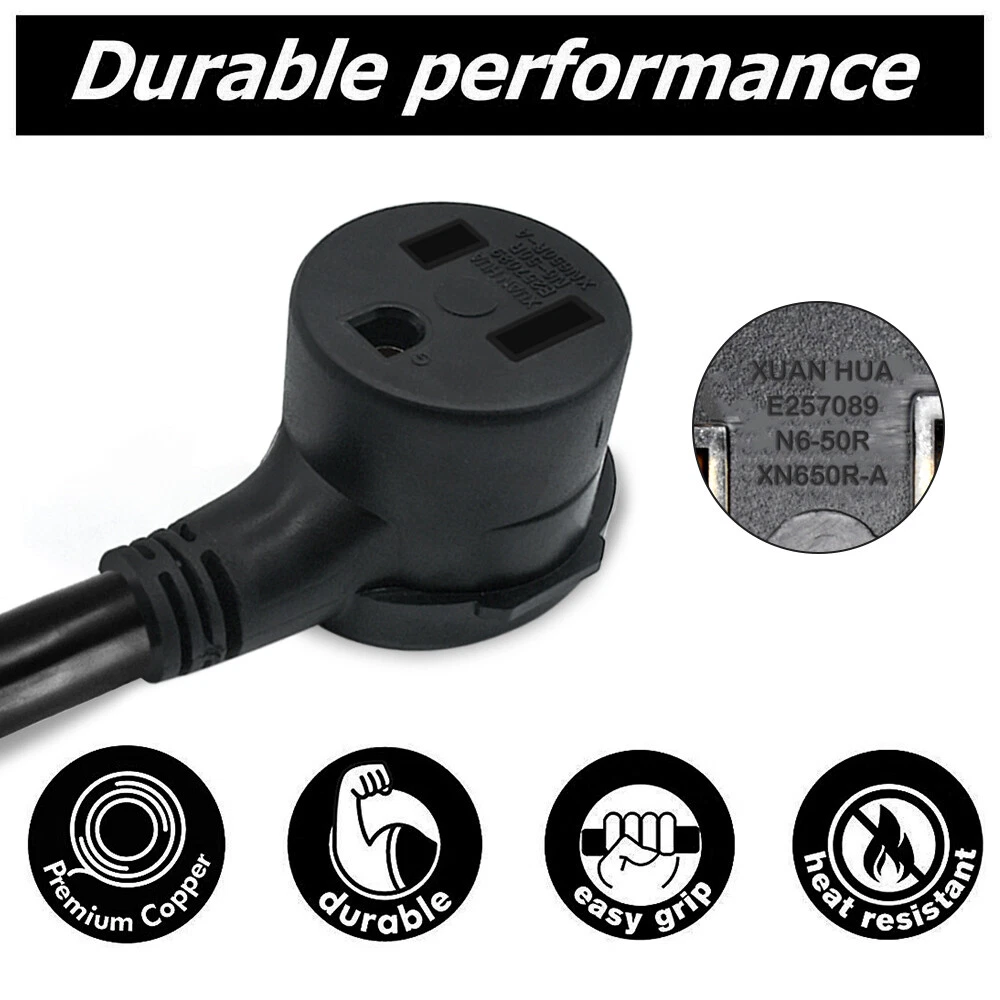 12AWG 50A UL 5-15R to N6-50R Converter Extension TIG Welding Power Cord Adapter HITBOX UL ST Cable Connectors 1.3ft Welder Adapter 12AWG 110V to 600V 50 Amp Adapter Features American standard 110V 50 AMP 3-prong E257089 male plug. N6-50R 50Amp 600Volt Welder Oultet L5-30P to N6-50R Wedler Adapter Heavy Duty Outdoor Anti-Cold Weahter Jacket with 50Amp Copper wire Model:Welder Adapter Length:1.3 feet Weight:0.45 lbs Current:1-50A Wire Materials:full copper wire Package Include: 1Pcs Cablde Adapter Payment Delivery details Terms of sales About us Contact us Payment 1.We can accept Payment:Apple Pay, Google Pay, PayPal, Credit Card 2.Payment must be received 7 days after auction ended.Unpaid dispute will be filed to eBay for non- payable buyers. 3.Import duties, taxes and charges are not included in the item price or shipping charges. These charges are the buyer responsibility. Delivery details 1. Shipping cost: Click “Shipping and payment” tab on the product detail page, and you will see the delivery details. You can calculate shipping cost by inputting the required information. 2. Time in transit: Transit time varies with different shipping methods. 3. Item Processing Time: The processing time for a specific order varies with the product type and stock status. Mostly, processing time can be 1 to 5 working days. Terms of sales 1. 60 days free store warranty: All our product offer 60 days free warranty time,during this period,if our item got quality problem.We will exchange or replace item for customers without any fee. 2. 2 year store warranty: All our product got 1 year store warranty,after 60 days free store warranty.During this time,if our item got quality problem,we can offer exchange or repair.But buyer need to pay the ship back fee when we pay the re-ship fee. 3. 30 week Return: All our item offer 7 days return peroid,defective or non-defective.Return must include all original package and accesorries,item must in good condition. Defective item: customers first pay the shipping fee and ship back the item,we check and confirm,then we will offer full refund and the ship back fee. Non-defective item: 30 days Unconditional return,buyer need to pay the ship back fee,and we will offer refund your payment,but not include shipping fee. 4. Please do contact us first by ebay message before any return. About us 1.We pursuit 100% transactions satisfaction,We attach importance to every customer from around the world,Please buy with confident!if you have any issue,you can just give us a message,and we give you full resolve. 2.We guarantee 100% customer satisfaction. 3. We will offer professional product support:Product Inquiry,Aftersale Service,Shipping solution and so on.If you got question or problem,please just contact us by ebay message. Contact us 1.Please be patient when contacting us, all messages will be replied within 24 hours. 2.Please let us know immediately if a package is damaged upon arrival. 3.Feel free to contact us if you’d like to combine shipping on your purchases. 4.We appreciate your feedback and we will send buyers positive feedback after a shipment has been processed. 5.Customer satisfaction is significant to us. If you are dissatisfied with a transaction for any reason. Before taking any action, please contact us through eBay and we will do everything we can to help you.
