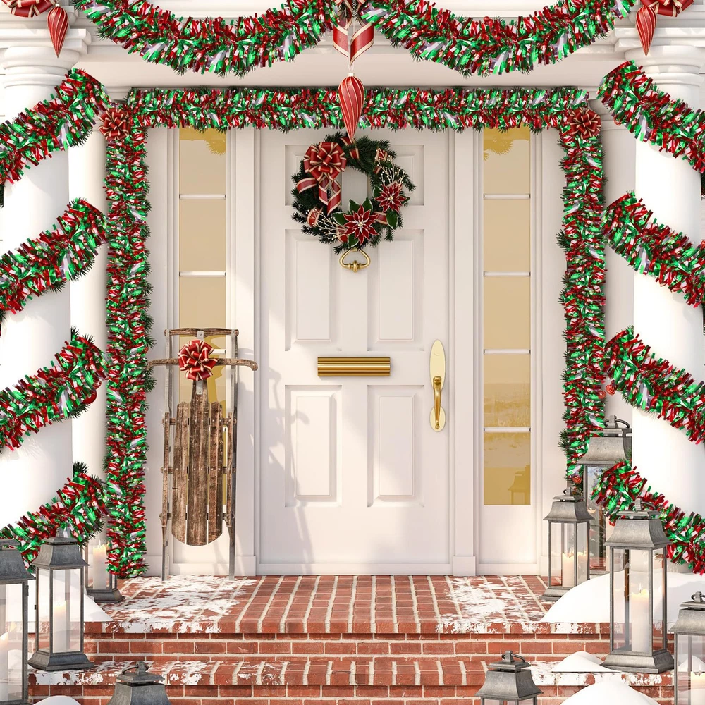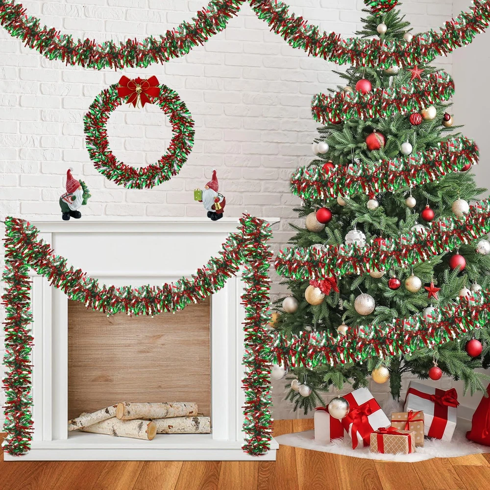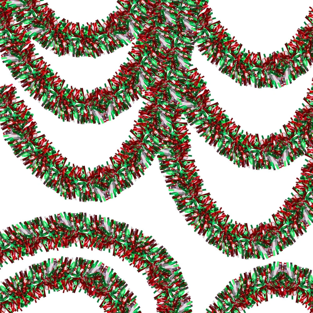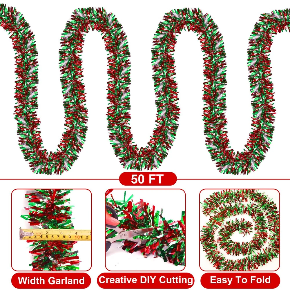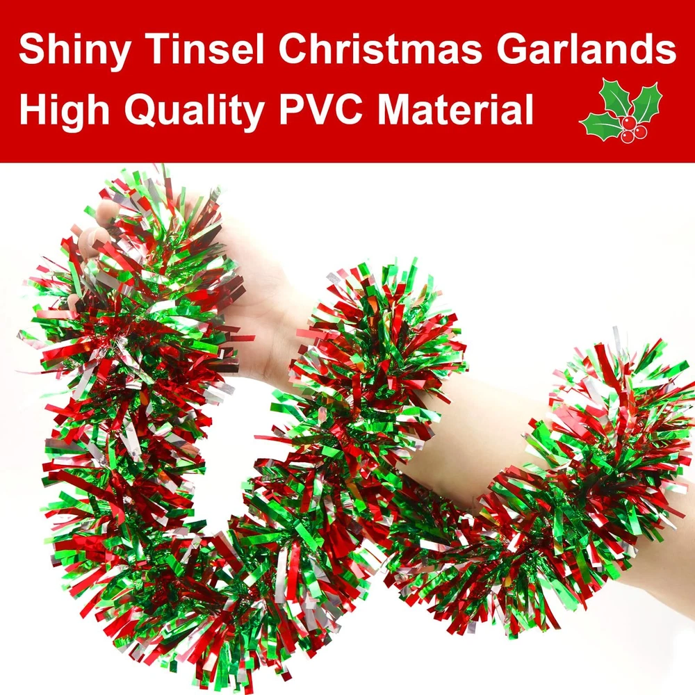 【Value Christmas Garland】Christmas Tinsel Garland package includes 1 long festive garland to bring holiday cheer into your home. The metallic tinsel twist measures 50 feet in length, giving you plenty of material to decorate your Christmas tree, mantel, or any space that needs a touch of sparkle. 【Sparkling Tinsel Color】 The Bright Metallic tinsel Garland reflects light beautifully, adding extra sparkle to your Christmas decor. creating a festive shimmer that instantly enhances your holiday décor. It’s the perfect way to add a bright, merry touch to any room or Christmas party setting. 【Easy to Use 】Made from high-quality PVC, Christmas garland is shiny, sparkling, and safe to handle. It's durable, lightweight, and reusable, making it perfect for both indoor and outdoor Christmas decorations. Easily hang it on Christmas trees, door frames, windows, or any surface to create a magical holiday atmosphere. 【Creative DIY for Christmas Fun】The Christmas garland is versatile and can be easily cut to any length or twisted into various shapes to fit your holiday décor needs. Whether you're creating wreaths, gift wrapping, or crafting holiday centerpieces, this garland adds a festive flair to all your DIY projects. 【Widely Holiday Décor】Wrap this Christmas garland around your tree, drape it over mantels, banisters, doors, windows, or even ceilings to spread Christmas joy throughout your home. Perfect for Christmas parties, holiday gatherings, or simply adding seasonal warmth to your living space, school, or office!