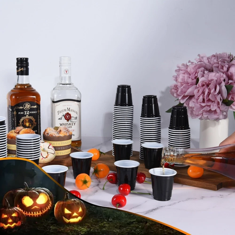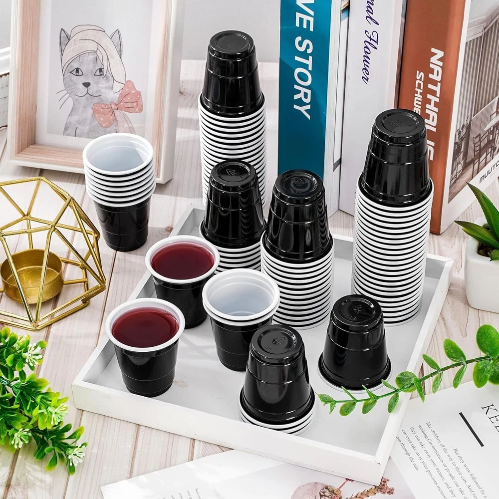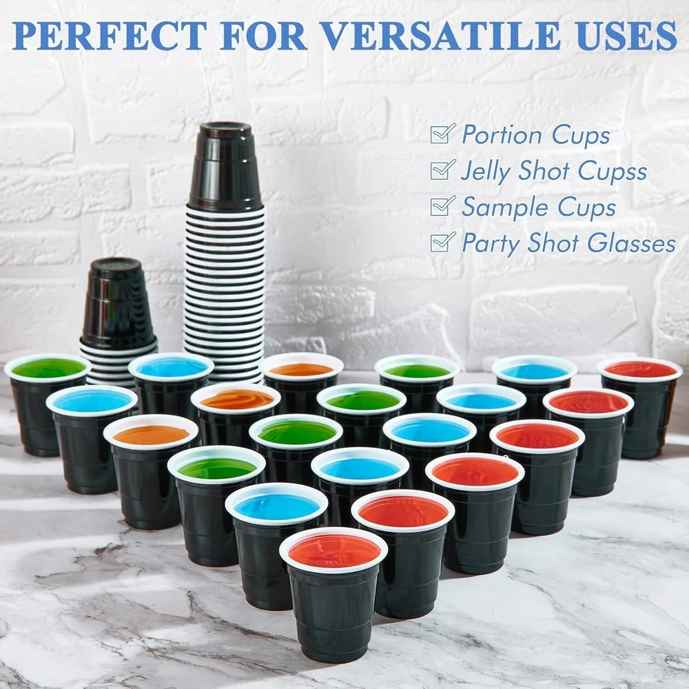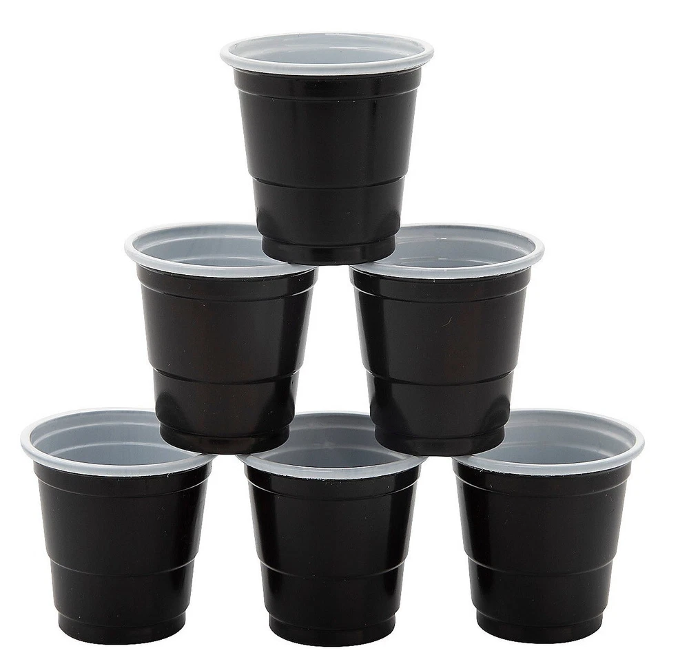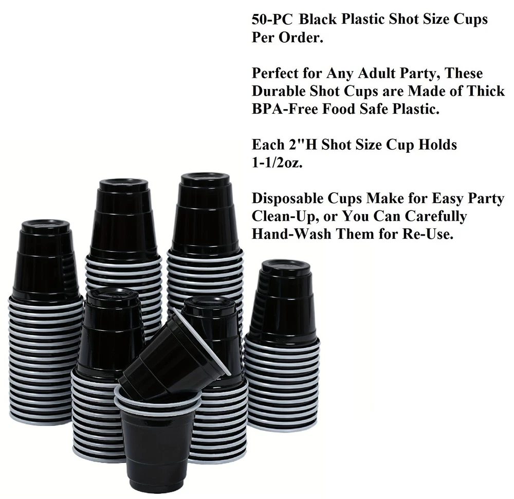50-PC BLACK Plastic Adult Cocktail Party Shooter Cups 1.5-oz Disposable 2"H #549