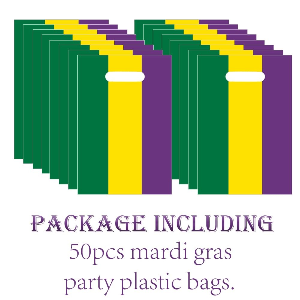 Package Including - 50pcs mardi gras party plastic bags. This party favor bags are made of plastic. Measurement - 6.3x9.8 Inch,enough space for various wrapping requirements. You can put some small things or party favors in the bags to decorate the party, and give a things to your families,frends and person you favorate.Or directly put in the table as table decor. Make lasting memories and dress things up carnival style with our themed Mardi Gras bags! Package Including - 50pcs mardi gras party plastic bags. This party favor bags are made of plastic. Measurement - 6.3x9.8 Inch,enough space for various wrapping requirements. You can put some small things or party favors in the bags to decorate the party, and give a things to your families,frends and person you favorate.Or directly put in the table as table decor. Make lasting memories and dress things up carnival style with our themed Mardi Gras bags!