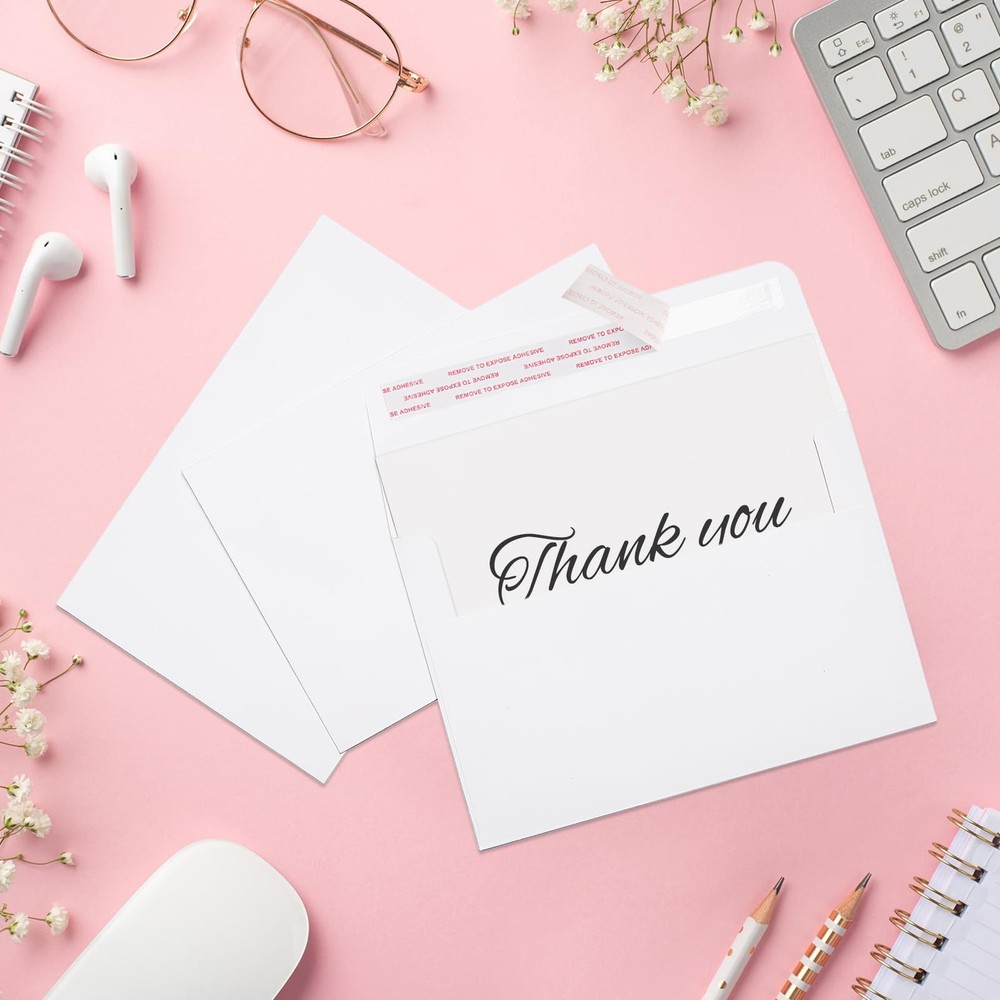 The ACSTEP 4x6 blank cards and Envelopes are the perfect way to send your homemade cards, wedding invitations, Christmas cards, and other important notes. Made of premium kraft paper, our envelopes ensure that cards arrive safe and sound. They are sturdy and durable, so you can trust them to protect your cards during shipping. Our self-stick adhesive makes sealing the envelopes quick and easy, without any mess or fuss. You'll love how easy it is to use our envelopes. And with their perfect 4x6 size, they're just right for all homemade cards. Our blank cards and envelopes 4 x 6 are perfect for wedding invitations, Christmas cards, homemade thank-you cards, mailing invitations or postcards, business use, and more. Trust ACSTEP for all your envelope needs. With our high-quality envelopes and great value, you can't go wrong! One stop shopping: our blank card with envelopes 4x6 meet your needs for both DIY cards and envelopes. Hassle-Free Self-Stick Adhesive: Easy to Use - Our self-stick adhesive makes sealing your envelopes quick and easy, without any mess or fuss. Perfect for All Occasions: Versatile Design - Our blank cards with envelopes are perfect for sending wedding invitations, Christmas cards, or homemade thank-you notes, making them an excellent choice for all occasions. Great Value for the Price: More for Less - packs of 50, our envelopes offer great value for the price. Trust Our Quality: We stand behind the quality of our envelopes. If any question, please contact us and we'll do our best to help you out.