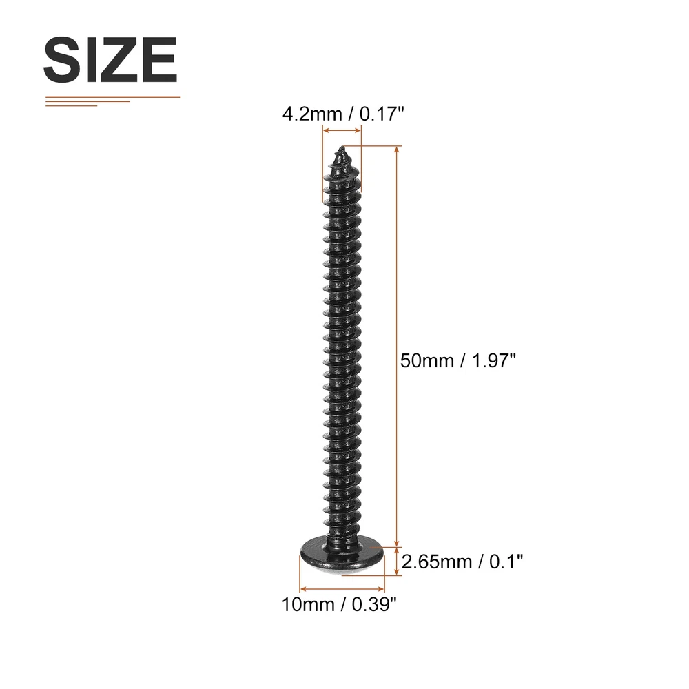 Document Product Details:Color: BlackMaterial: 304 Stainless SteelSpecification: #8x2Thread Diameter: 4.2mm / 0.17"Screw Length: 50mm / 1.97"Head Diameter: 10mm / 0.39"Head Thickness: 2.65mm / 0.1"Screw Type: Phillips HeadPackage Content: 50pcs x Phillips Truss Head Self Tapping Tip Wood ScrewsMaterial - Made from good 304 stainless steel, our self-tapping screws provides good strength and corrosion resistance in bad environments. The stainless steel material provides excellent resistance to rust and oxidation, making it suitable for both indoor and outdoor applications.Feature - Our cross-recessed large truss head self-tapping wood screws sharp-pointed tail allows for easy penetration into the material, reducing the need for pre-drilling. The self-tapping feature enables the screw to create its threaded hole while being driven into the material, providing a strong and secure hold.Application - These self-tapping screws are suitable for a wide range of applications, including woodworking, metalworking, construction, and DIY projects. They can be used to fasten materials such as wood, plastic, or metal, providing a versatile solution for various projects.Notice - The wood screws come with a box, easy to access and store. The box is clearly labeled so that you can quickly identify the size you need by the label. 50Pcs #8x2 Sheet Steel Phillips Truss Head Self Tapping Tip Wood Screws Black Product Details: Color: Black Material: 304 Stainless Steel Specification: #8x2 Thread Diameter: 4.2mm / 0.17" Screw Length: 50mm / 1.97" Head Diameter: 10mm / 0.39" Head Thickness: 2.65mm / 0.1" Screw Type: Phillips Head Package Content: 50pcs x Phillips Truss Head Self Tapping Tip Wood Screws Material - Made from good 304 stainless steel, our self-tapping screws provides good strength and corrosion resistance in bad environments. The stainless steel material provides excellent resistance to rust and oxidation, making it suitable for both indoor and outdoor applications. Feature - Our cross-recessed large truss head self-tapping wood screws sharp-pointed tail allows for easy penetration into the material, reducing the need for pre-drilling. The self-tapping feature enables the screw to create its threaded hole while being driven into the material, providing a strong and secure hold. Application - These self-tapping screws are suitable for a wide range of applications, including woodworking, metalworking, construction, and DIY projects. They can be used to fasten materials such as wood, plastic, or metal, providing a versatile solution for various projects. Notice - The wood screws come with a box, easy to access and store. The box is clearly labeled so that you can quickly identify the size you need by the label. Hot Item Payment 1.We accept eBay payment . 2.Payment must be received within 7 business days of auction closing. Shipping 1.We ship to your eBay or Paypal address. Please make sure your eBay and Paypal address is correct before you pay. 2.Items will be shipped within 1-3 business day when we received payment. 3.Delivery time depends on destination and other factors. Description Policy 50Pcs #8x2 Sheet Steel Phillips Truss Head Self Tapping Tip Wood Screws Black Product Details: Color: Black Material: 304 Stainless Steel Specification: #8x2 Thread Diameter: 4.2mm / 0.17" Screw Length: 50mm / 1.97" Head Diameter: 10mm / 0.39" Head Thickness: 2.65mm / 0.1" Screw Type: Phillips Head Package Content: 50pcs x Phillips Truss Head Self Tapping Tip Wood Screws Material - Made from good 304 stainless steel, our self-tapping screws provides good strength and corrosion resistance in bad environments. The stainless steel material provides excellent resistance to rust and oxidation, making it suitable for both indoor and outdoor applications. Feature - Our cross-recessed large truss head self-tapping wood screws sharp-pointed tail allows for easy penetration into the material, reducing the need for pre-drilling. The self-tapping feature enables the screw to create its threaded hole while being driven into the material, providing a strong and secure hold. Application - These self-tapping screws are suitable for a wide range of applications, including woodworking, metalworking, construction, and DIY projects. They can be used to fasten materials such as wood, plastic, or metal, providing a versatile solution for various projects. Notice - The wood screws come with a box, easy to access and store. The box is clearly labeled so that you can quickly identify the size you need by the label. Hot Item Payment 1.We accept eBay payment . 2.Payment must be received within 7 business days of auction closing. Shipping 1.We ship to your eBay or Paypal address. Please make sure your eBay and Paypal address is correct before you pay. 2.Items will be shipped within 1-3 business day when we received payment. 3.Delivery time depends on destination and other factors.