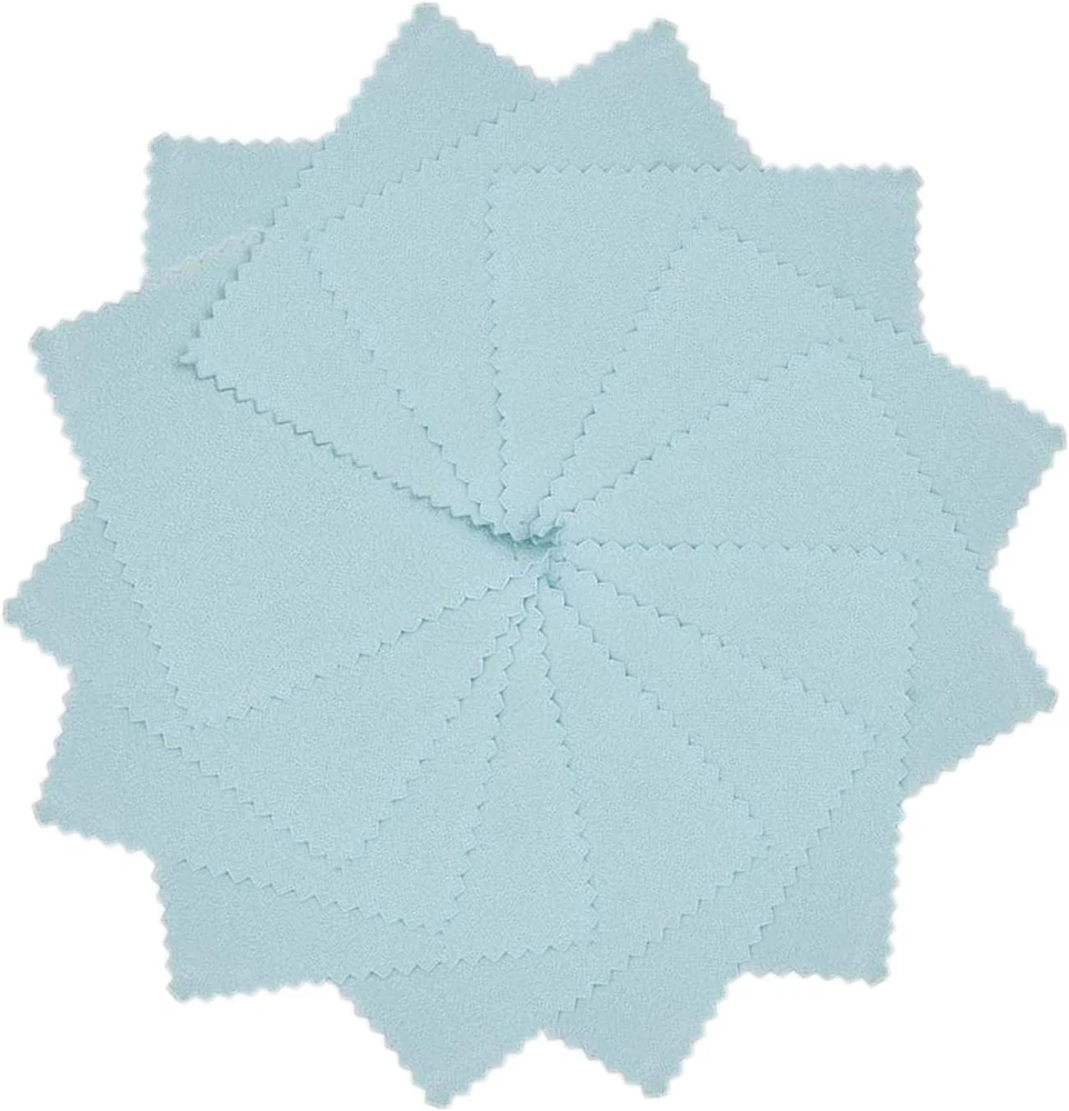 50Pcs Jewelry Cleaning Cloth Polishing Cleaning Cloths for Sterling Silver Gold Our Jewelry Cleaning Cloth are made of suede fabric with cleaning ingredients to polish, no color fading, non-toxic, can easy remove the scratches and tarnish on the silver, gold, platinum and these jewelry wipes 3.2 x 3.2 inches/8x8cm, you can take this jewelry cleaning clothes in your pocket,purse,coin bag,backpack,eyeglass box,etc. They are reusable so you can use these for a long time Our jewelry cloth are Chemical free, Safely and easily remove scratches and tarnish on the jewelry, watches, sunglasses, camera lenses, smartphones, silver earrings, rings, necklaces and so on If the silver was contaminated seriously,you should use some silver polishing liquid to clean it at first,and then use the silver polishing cloth to wipe the silver to restore luster Perfect little gift to go with jewelry for your customers. Also good Christmas gifts stocking stuffers for your family, your friends, etc 50pcs Jewelry Cleaning Cloth Polishing Cleaning Cloths for Sterling Silver Gold Platinum Platinum Jewelry, Watch Coins Non Toxic Tarnish Remover Keeps Jewelry Clean and Shiny, 3.2 x 3.2 inches Our Jewelry Cleaning Cloth are made of suede fabric with cleaning ingredients to polish, no color fading, non-toxic, can easy remove the scratches and tarnish on the silver, gold, platinum and these jewelry wipes 3.2 x 3.2 inches/8x8cm, you can take this jewelry cleaning clothes in your pocket,purse,coin bag,backpack,eyeglass box,etc. They are reusable so you can use these for a long time Our jewelry cloth are Chemical free, Safely and easily remove scratches and tarnish on the jewelry, watches, sunglasses, camera lenses, smartphones, silver earrings, rings, necklaces and so on If the silver was contaminated seriously,you should use some silver polishing liquid to clean it at first,and then use the silver polishing cloth to wipe the silver to restore luster Perfect little gift to go with jewelry for your customers. Also good Christmas gifts stocking stuffers for your family, your friends, etc 3.19 inches x 6.3 inches x 0.87 inches. Weight: 2.08 oz Color Blue Material Suede Country of Origin China Item Weight 2.08 ounces Package Dimensions 6.3 x 3.19 x 0.87 inches