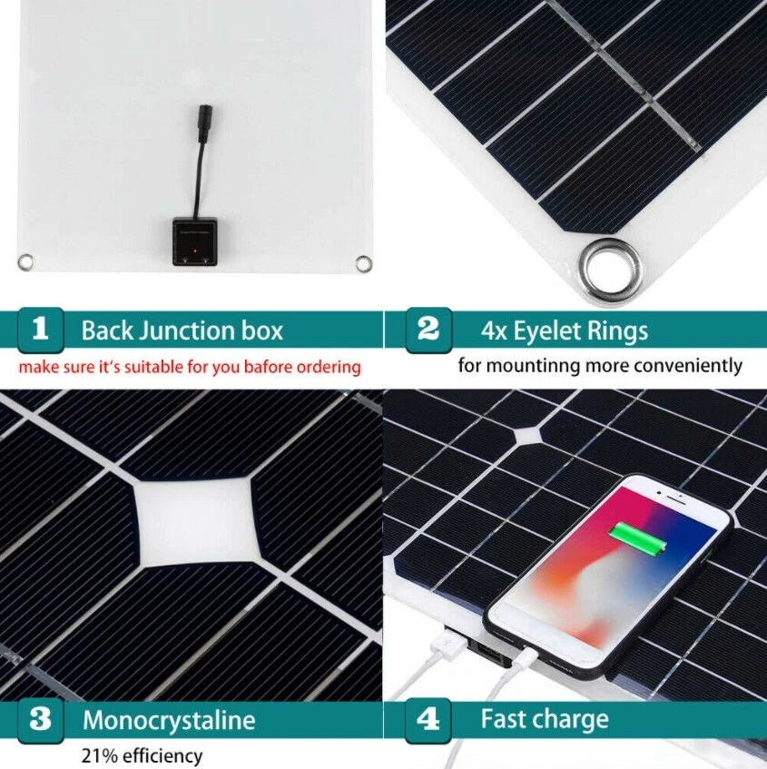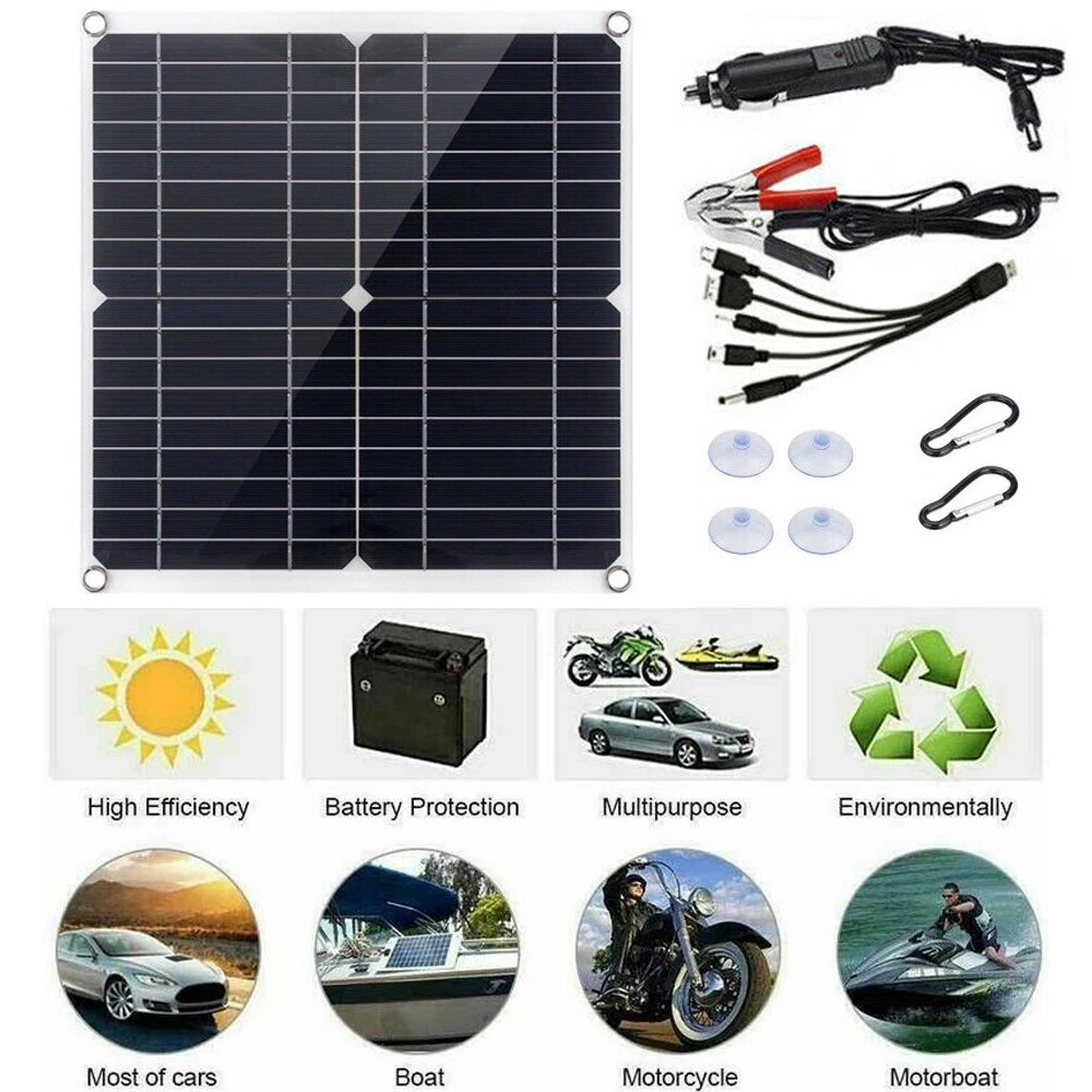 Product Description 50W 12V 20/40/60/100A Solar Panel Kit Battery Charger Controller Caravan Boat Features: Brand new and high quality With a semi-flexible design, you can bent the solar panel appropriately to suit a wider range of applications. The solar panels comes with high conversion rate, high stability and good durability. It has a single crystal R chip and can be used in any place and situation like automobiles, homes, boat, motorcycles, etc. With the strong sun in the summer, the solar panel can efficiently convert solar energy. Equipped with advanced polyethylene coating technology, the surface of the battery is plated with dark blue reflective film. The solar panels can withstand all kinds of environments with high waterproof performance. Anti-scratch, non-foaming, easy to clean. Specifications: Color: Black No-load voltage: 20.8V DC Load voltage: 12V Output voltage: 18V Charging time: 2 hours Battery panel specification: high-efficiency monocrystalline board Size: 28*28cm Application: Mobile Conversion rate: 23-24% Working temperature: -40℃+85℃ Application: Car batteries, cars, RVs, ships, airplanes. Package Included: 1x solar panel 4x suction cup 1x clip 1x car charger 1x DC male cable If you have any questions, please feel free to contact us via ebay. We usually respond within 24 hours. Payment Shipping Returns Contact Us We accept all verified payments from ebay. Orders will be shipped after receiving cleared payment. Payment due within 7 days after auction ends and for buy it now listings. We ship most of our orders within 24 hours, and may up to 48 hours for. If you want faster shipping way. Please contact us before making payment. Sometimes due to problems with our transportation company system, your shipping information may be delayed to update. We recommend that you try again after 3-4 days. If you still haven't checked the shipping information, you can contact us by ebay message. Always believe we can figure things out with communication, if it comes to return, the pacakge must be intact and the same as you receive. If you have any questions, please feel free to email our service specialists 24 Hours a Day, 7 Days a Week. We will reply you ASAP. Return/refund is accepted within 30 days after the buyer receives the item. NO exchange will be accepted after 30 days from the date when the item is received. Please contact us first before returning your product!!! If you have any questions, our Customer Service staffs welcome you to email us. We strive to answer all questions and resolve any problems as quickly as possible. You can contact us 7*24, we will reply at the first time, and we will surely solve your problems. Note: 1.We try our best to reply to your emails as soon as possible, however, due to high volume of daily incoming emails and time zone difference, we may not be able to reply your emails immediately. Please allow 1 business days for us to response. If you do not receive any reply from us, please check your email ensuring your mailbox has not reached full size. 2.Due to some ISP SPAM filter settings, you may not be able to receive our replies; if you have problems receiving our emails, you may need to use a different email account to contact us. 3.Please give us the opportunity to resolve any problem. We understand the concerns and frustrations you might have, and will try our best to resolve the issues. Please email us before leaving any negative feedback or open any dispute on PayPal. 4.We care about our valued customers, and will always try to help you. So if you have any problems, please e-mail us immediately. Payment We accept all verified payments from ebay. Orders will be shipped after receiving cleared payment. Payment due within 7 days after auction ends and for buy it now listings. Shipping We ship most of our orders within 24 hours, and may up to 48 hours for. If you want faster shipping way. Please contact us before making payment. Sometimes due to problems with our transportation company system, your shipping information may be delayed to update. We recommend that you try again after 3-4 days. If you still haven't checked the shipping information, you can contact us by ebay message. Returns Always believe we can figure things out with communication, if it comes to return, the pacakge must be intact and the same as you receive. If you have any questions, please feel free to email our service specialists 24 Hours a Day, 7 Days a Week. We will reply you ASAP. Return/refund is accepted within 30 days after the buyer receives the item. NO exchange will be accepted after 30 days from the date when the item is received. Please contact us first before returning your product!!! Contact Us If you have any questions, our Customer Service staffs welcome you to email us. We strive to answer all questions and resolve any problems as quickly as possible. You can contact us 7*24, we will reply at the first time, and we will surely solve your problems. Note: 1.We try our best to reply to your emails as soon as possible, however, due to high volume of daily incoming emails and time zone difference, we may not be able to reply your emails immediately. Please allow 1 business days for us to response. If you do not receive any reply from us, please check your email ensuring your mailbox has not reached full size. 2.Due to some ISP SPAM filter settings, you may not be able to receive our replies; if you have problems receiving our emails, you may need to use a different email account to contact us. 3.Please give us the opportunity to resolve any problem. We understand the concerns and frustrations you might have, and will try our best to resolve the issues. Please email us before leaving any negative feedback or open any dispute on PayPal. 4.We care about our valued customers, and will always try to help you. So if you have any problems, please e-mail us immediately. powered by