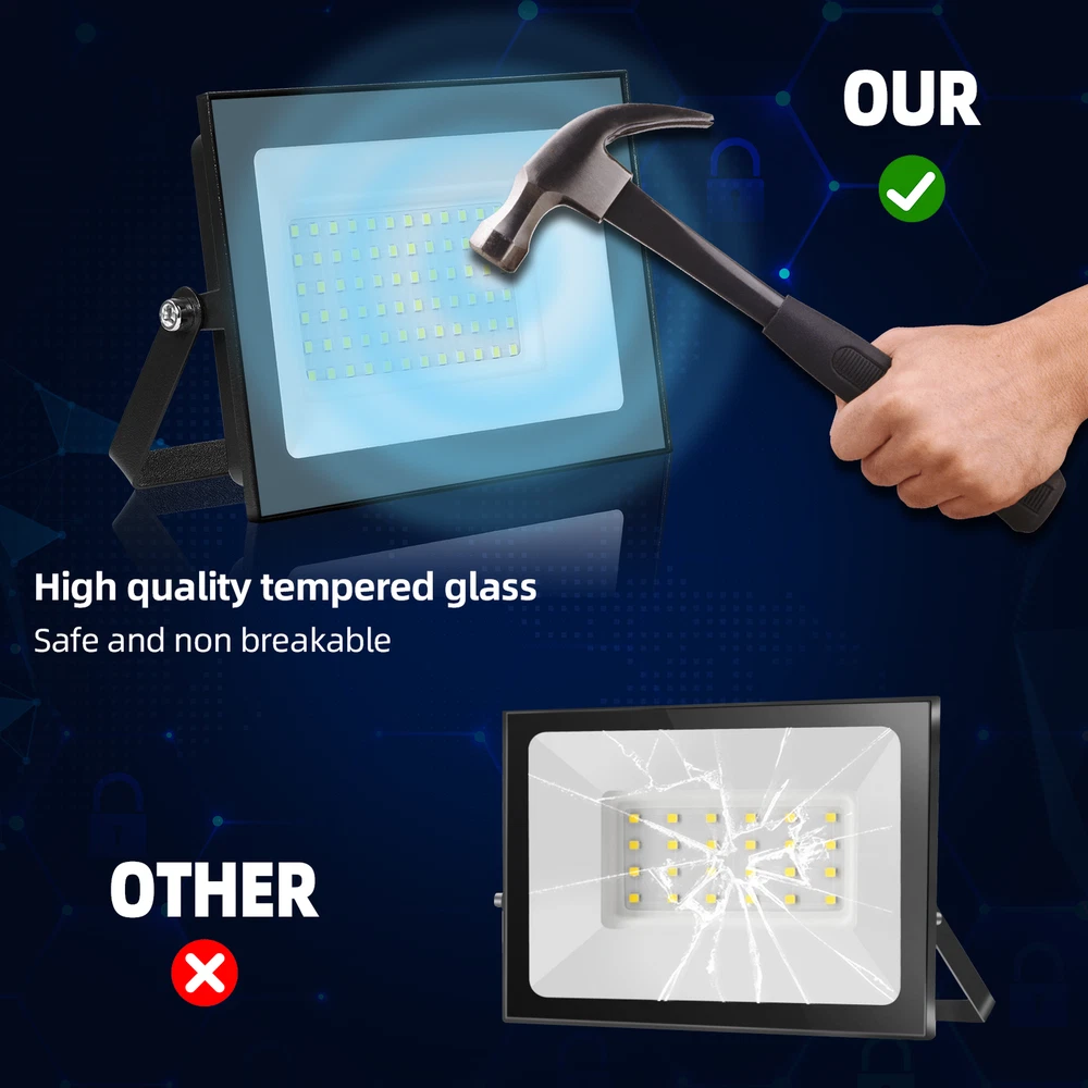 新建网页 2 新建网页 1 新建网页 1 Product Description 新建网页 2 新建网页 1 Features: 1. High lumens without radiation: LED lighting creates healthy life without radiation, flash frequency and flash. It is manufactured with high lumen LED chip, turn-on delay, instant sparkle, 100% brightness. 2. Good heat dissipation performance: The high-efficiency aluminum body is used, which is impact resistant and has good heat dissipation performance, and the new thermal circuit with convection design has good heat dissipation performance, which prolongs the service life of the bulb. 3.120° wider angle beam: LED floodlights provide super bright, shadow-free and wide beam distribution light for general outdoor outdoor floodlights. 4.IP66 waterproof: IP66 rating, which means you don't have to worry about water penetration to get the job done. Note that floodlights cannot be immersed in water. 5. Indoor and outdoor lighting: basketball/football field, garden, courtyard parking lot, hotel, square, landscape. Specification: Power: 50W Color Temperature: Cool White (6000K-6500K) lumens : 100lm/W Size (cm): 17x11.6x2.7cm/6.69*4.56*1.06in Voltage: AC85-265V Impact resistance: IK08 Reflective cup material: Nano refractive index of 95% LED Chip Code:2835SMD Material: Aluminum Waterproof grade: IP66 Beam angle: 120° Operating temperature: -20℃ to +55℃ Life: > 50,000 hours line length:50cm Dimmable: No =