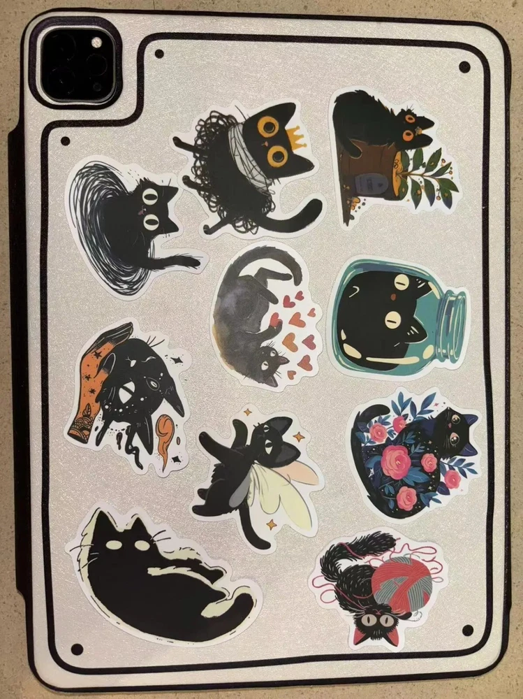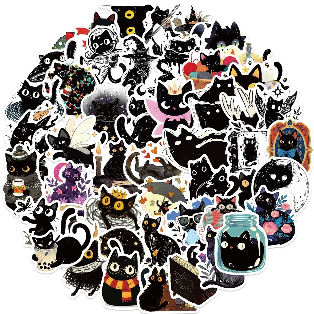 50pcs Cute Black Cat Stickers Aesthetic Scrapbooking Materials Diary Decorating For Keyboard Phone Planner Feat ures: Waterproof,These waterproof stickers resist moisture, ensuring your creations stay vibrant. Usage: Versatile,Ideal for personalizing laptops, phones, skateboards, and more with a touch of whimsy. Quantity: 50pcs,Enjoy a generous set of 50 cute black cat stickers to decorate all your items. Support: Emerging Artist,By purchasing these stickers, you support an emerging artist's passion for art. Material: Synthetic Paper,Crafted from premium synthetic paper, these stickers offer durability and a smooth finish.