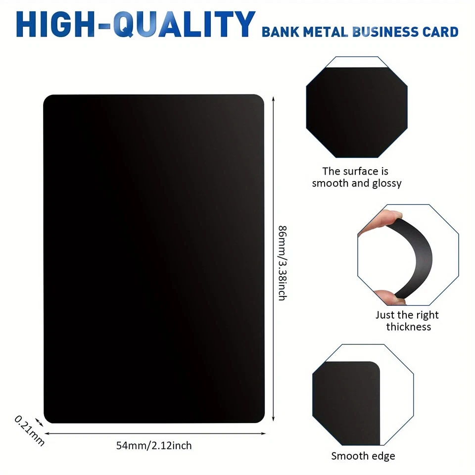Specification: Size: 3.38 x 2.12 inches (L x W) and 4.72 x 3.15 inches (L x W) size: 86*54mm and 120*80mm Thickness: 0.2mm, 0.3mm,0.45mm, 0.8mm Material: aluminium alloy Package Includes: 50 pcs business cards blanks/case/one color Warm Notice: 1. Please allow slight size errors due to manual measurement. 2. Because of lighting and screen settings, please note there might be slight color difference between the pictures and the actual product.