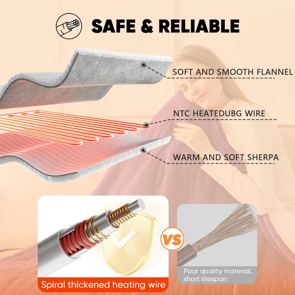 $ 45.1Queen Electric Blanket with Dual Control, Fast Heating & 10 Adjustable Heat Settings