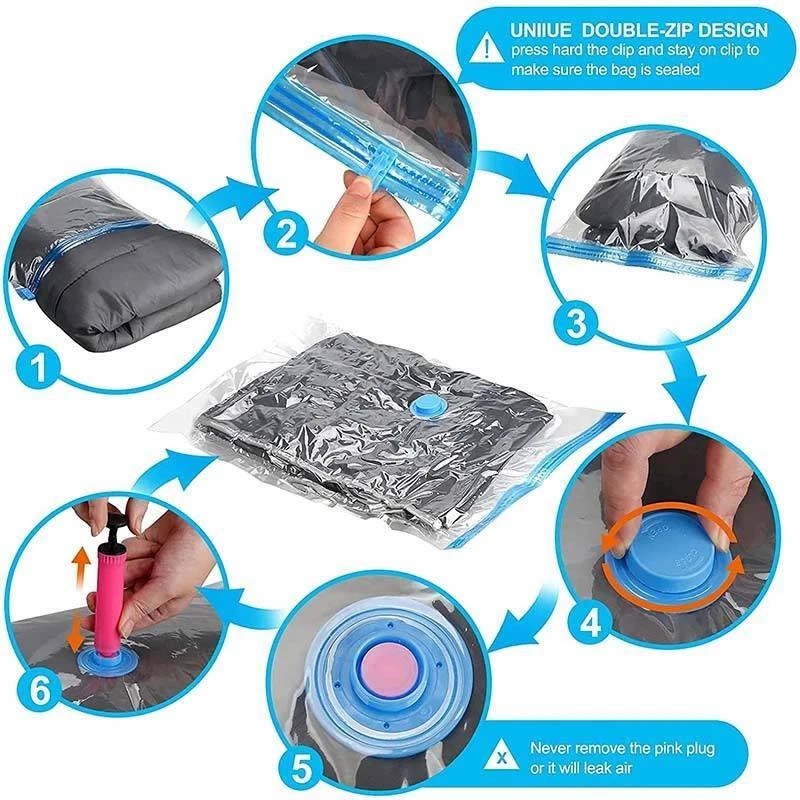 5/10 Pcs Vacuum Storage Bags Travel Space Saver Garment Seal Clothes Hand Pump