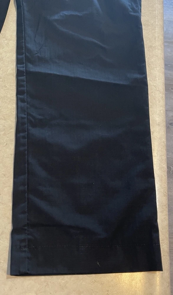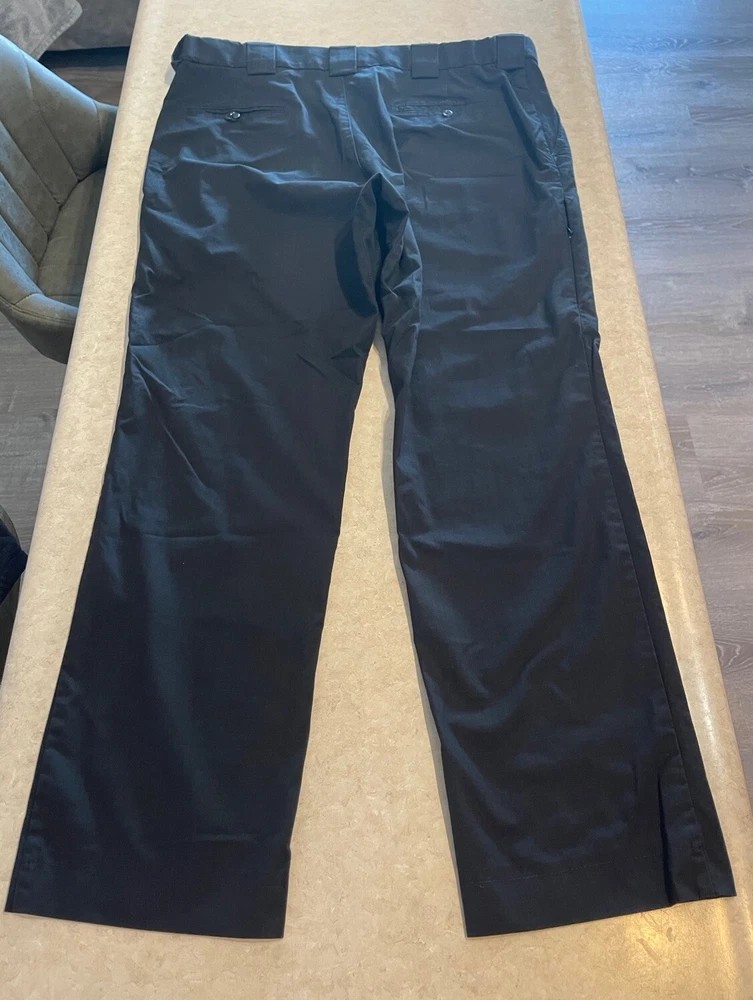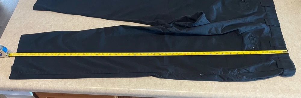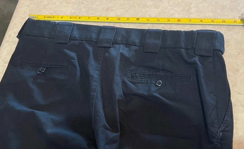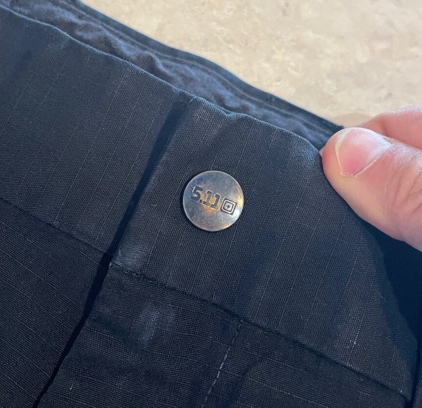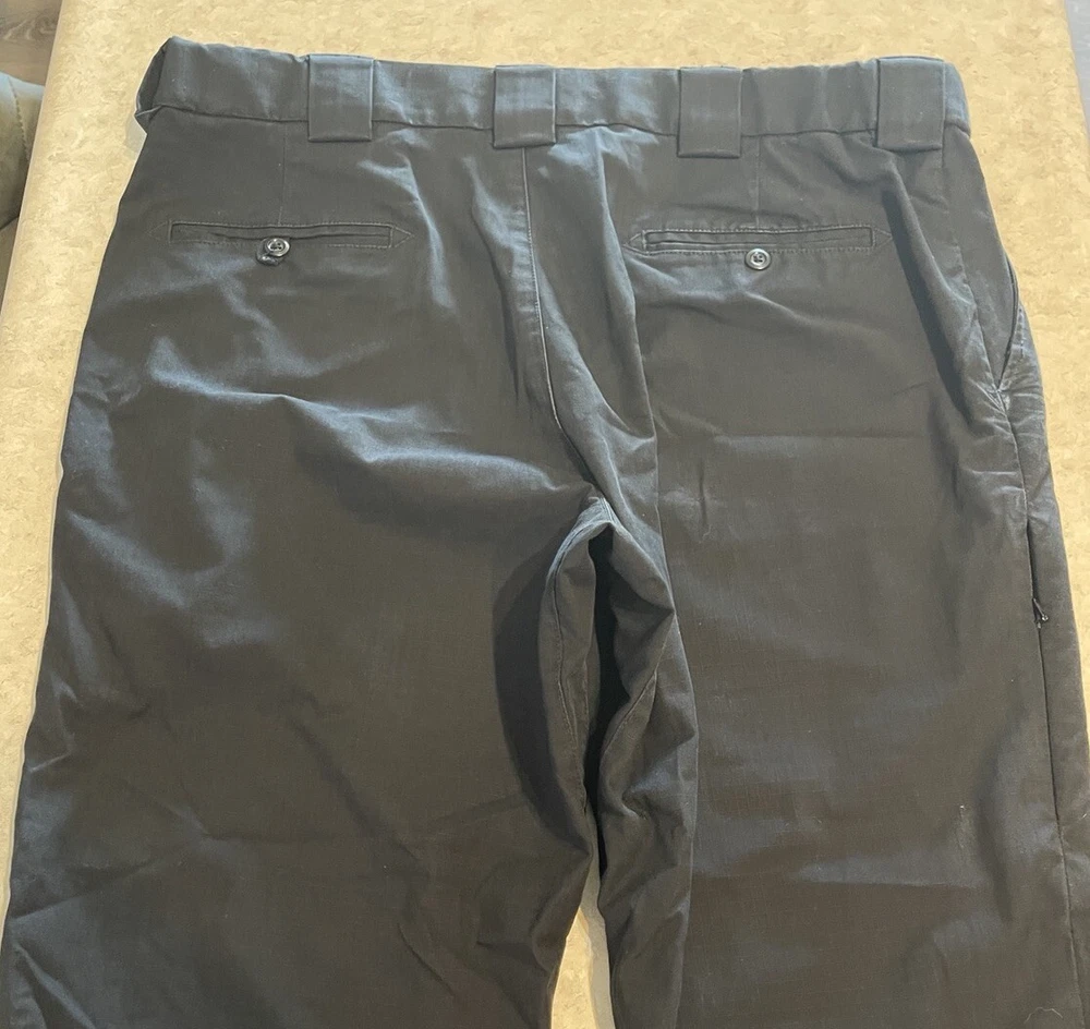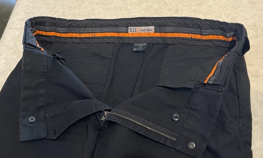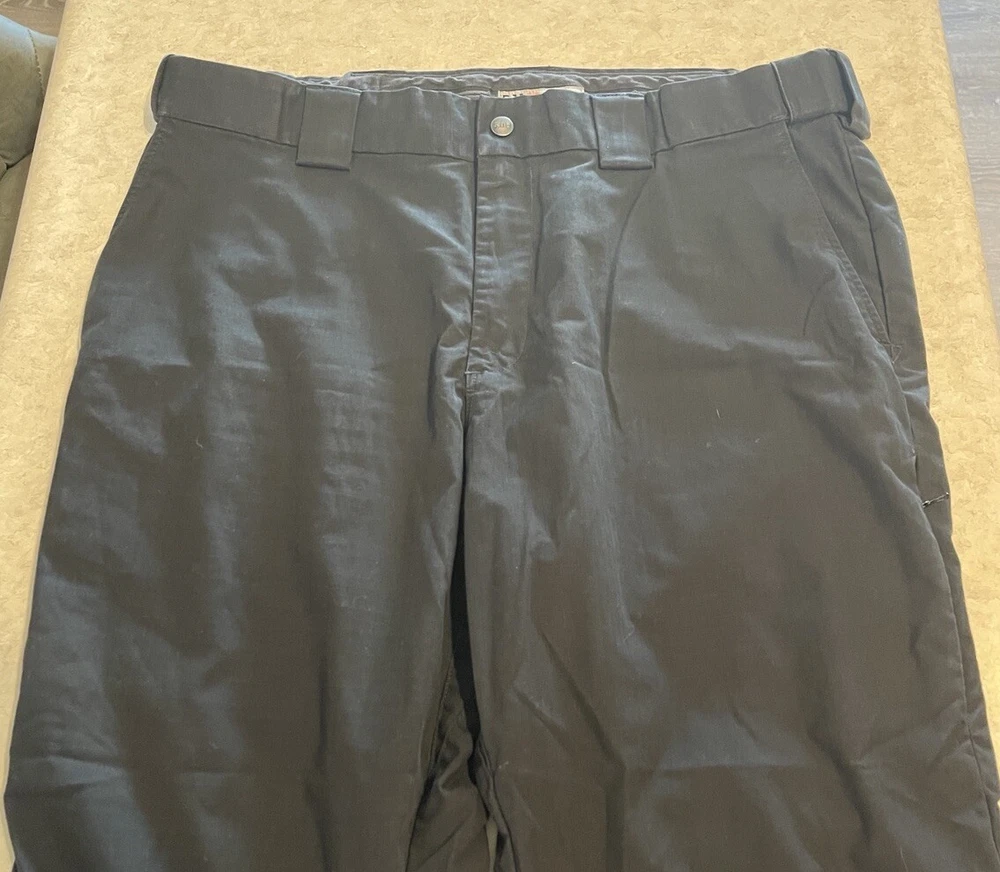 These 5.11 Tactical Pants are designed for men in a size 40 with a relaxed fit. Made of durable canvas fabric in black, they feature a chino style with a straight leg and a 5-pocket design for storage. The pants have a flat front with belt loops and a zipper closure. Ideal for security work or outdoor activities, they are suitable for all seasons and can be machine washed for easy care. Personalization is not available for this item. These pants are in good preowned condition, with little sign of wear. Please see ALL photos for a better idea on condition, any measurements, or details to the pants.