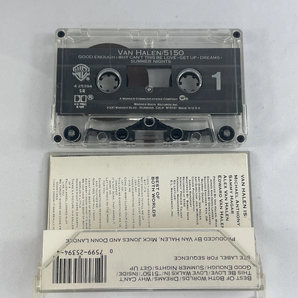 This cassette features the iconic rock band Van Halen's 1986 album "5150", with hit songs like "Jump", "Hot for Teacher", and "Panama". The cassette is in the standard jewel case format and has been well-maintained, with the case and inlay conditions being very good plus (VG+). The run time of the album is 43 minutes and it was released under the Warner Bros. record label. The cassette is a great addition to any rock or hard rock music collection and is sure to bring back memories of the 1980s era.