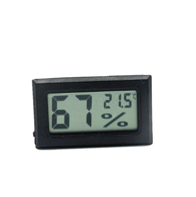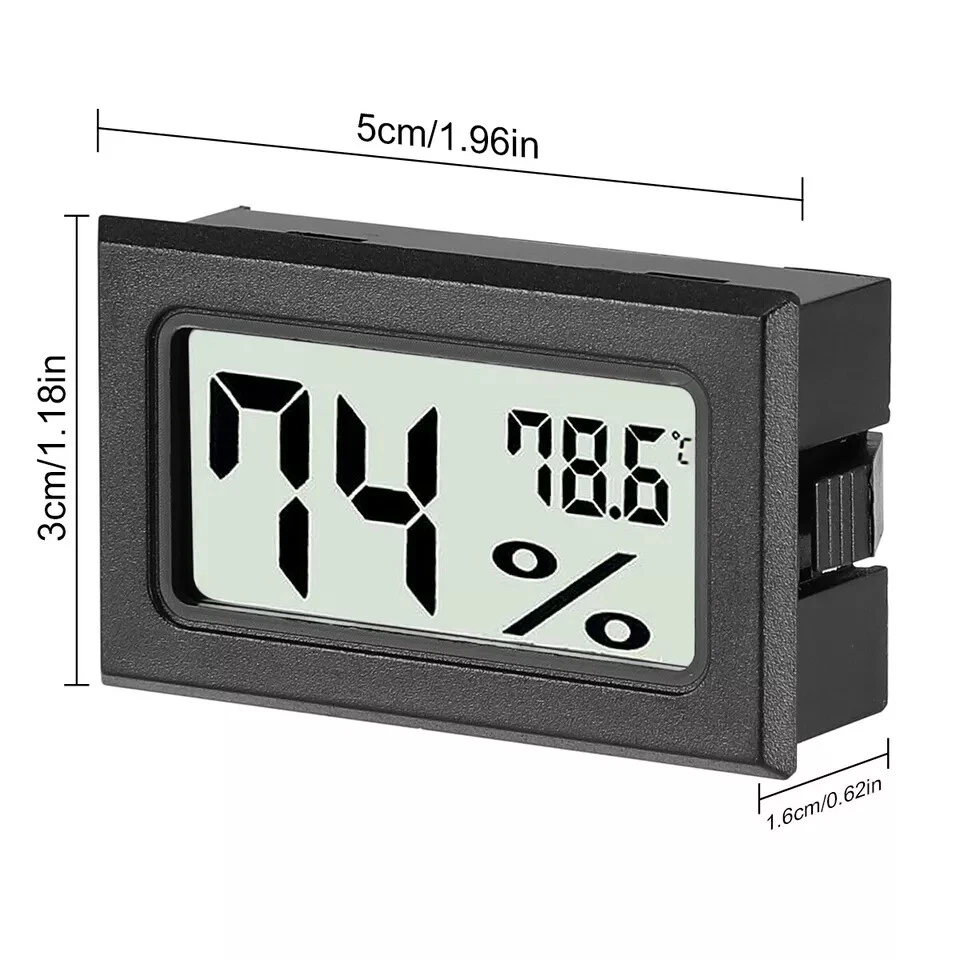 Features: Note:This product is a Celsius thermometer and cannot be converted to Fahrenheit. Mini Digital Humidity Thermometer allows you to easily know the temperature and humidity around you 2in1 meter with built-in probe; digital electronic thermometer and hygrometer for measuring temperature and humidity for indoor use Centigrade(°C) display, this thermometer displays temperature in Centigrade Temperature measuring range: -58°C-158°C ; Humidity measuring range: 10%-99%RH (Measures conditions every 10 seconds) Temperature measurement accuracy: ±1°C; Humidity measurement accuracy: ±5%RH Specification: Brand New Color:Black The indoor temperature and humidity display Default Centigrade temperature Type: Digital Thermometer Hygrometer Material: ABS Screen: LCD display Temperature measurement accuracy: ± 1.0 °C Temperature sampling cycle: 10 seconds Relative Humidity Test range: 10% -99% Humidity Resolution: 1% Humidity measurement accuracy: ± 5 (at room temperature 25 ℃)% Size: 48 × 28.6 × 15 (mm)/1.9*1.1*0.6 inch Display resolution: 0.1 °C Display: LCD (three and a half) Power: 0.15 mW under working conditions Battery: 2 1.5V of LR44 button batteries Temperature measurement accuracy: ± 1 °C Packet contents: 5-20pcs Digital Thermometer Hygrometer(Centigrade )