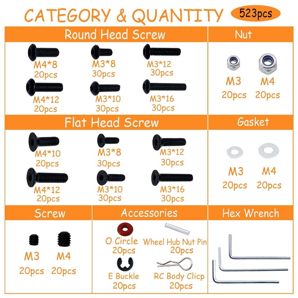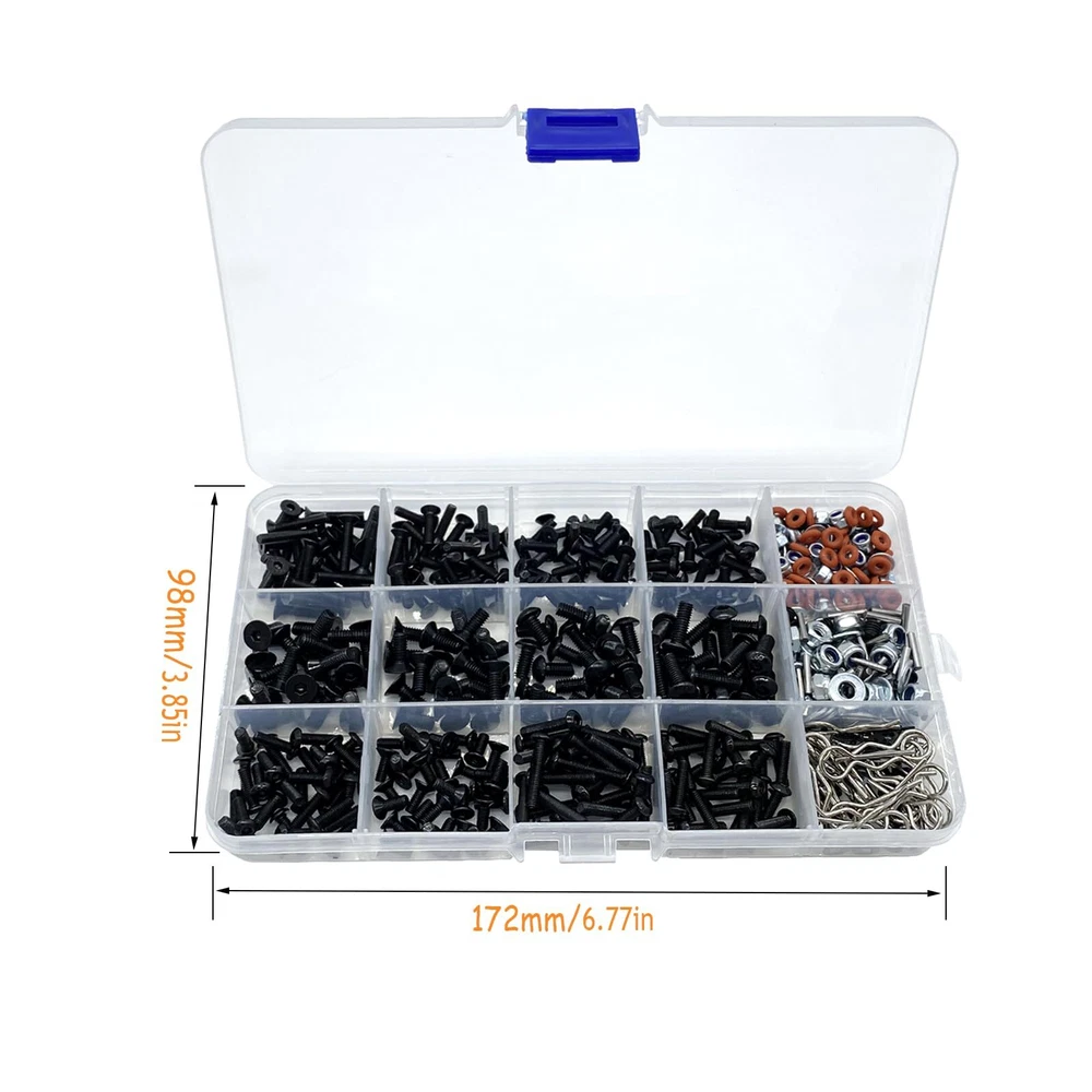 RC screws compatible with Traxxas / Axial / Arrma / Redcat / RC4WD / HSP / Exceed RC / Losi / HPI / Himoto / Tamiya, for mostly brands 1/8 1/10 1/12 1/16 Scale RC Crawler Car Truck Buggy Accessories. RC hardware kit are available in 15 sizes(Approx 6.77in*3.85in), you can choose different sizes of screws according to various occasions, sorted in plastic boxes and stored in different grids to prevent screws from mixing. RC screw kits is made of metal, High strength, good corrosion resistance in harsh environments, excellent rust and oxidation resistance, which can ensure your long time using. RC repair kit adopts precision cutting technology, the thread is very precise and clean, and it is not easy to deform and slide during rolling and installation, meeting all your needs for remote control car maintenance. RC accessories included: 1 x 520pcs RC Screws, M3 & M4 Screws (flat head & round head), M3 & M4 flat washers, M3 & M4 lock nuts, O-circle, pins, R clips, E-clips. 520pcs rc screw kit & tweezers *lucky*vorobey* Kindly note: If you would like to order more quantity than shown is available, you are welcome to place one order fox maximum available quantity and place one more order again because we always have more, than shows in available items. Best wishes TRANSLATE with x English Arabic Hebrew Polish Bulgarian Hindi Portuguese Catalan Hmong Daw Romanian Chinese Simplified Hungarian Russian Chinese Traditional Indonesian Slovak Czech Italian Slovenian Danish Japanese Spanish Dutch Klingon Swedish English Korean Thai Estonian Latvian Turkish Finnish Lithuanian Ukrainian French Malay Urdu German Maltese Vietnamese Greek Norwegian Welsh Haitian Creole Persian